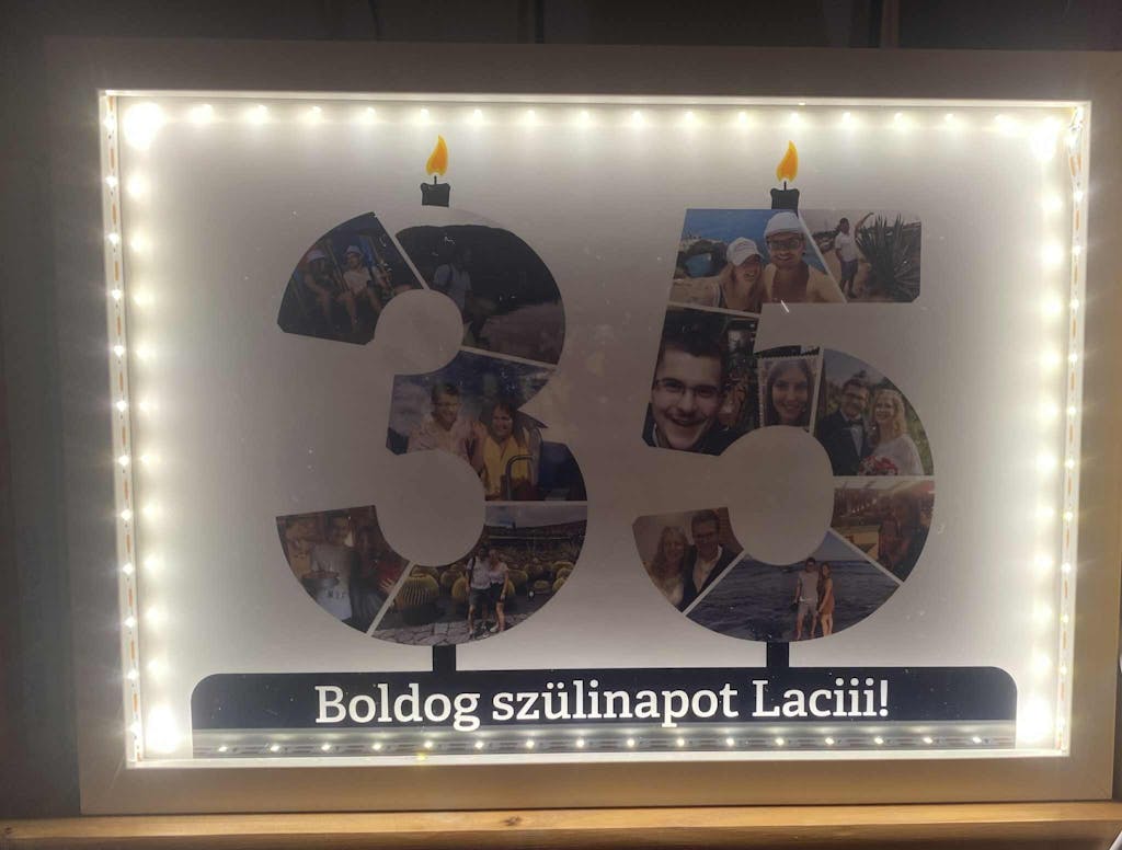 Az ünnepelt 75. születésnapjára kapta a fotó kollázst, a meglepetés és az öröm nem maradt el, nagy sikert aratott az ajándék!