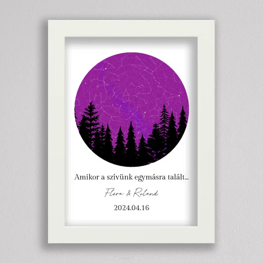 Csillagtérkép éjszakai erdő sziluettel - többszínű