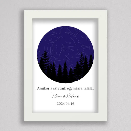 Csillagtérkép éjszakai erdő sziluettel - többszínű