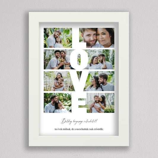 Szerelmes pillanatok LOVE feliratú fotó kollázs