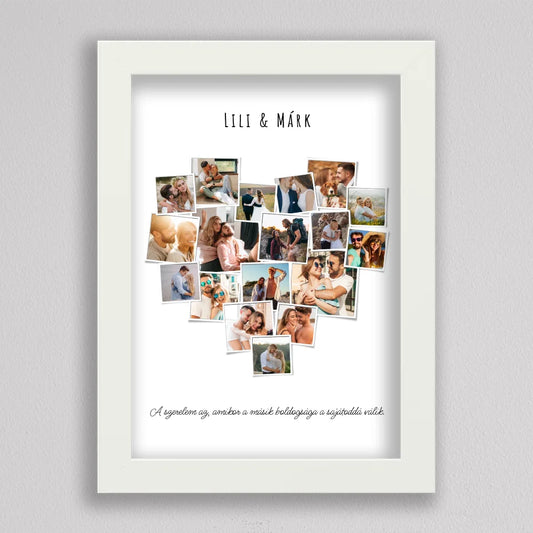 Polaroid képes szív alakú fotó kollázs
