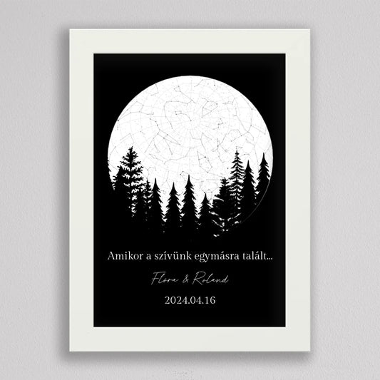 Csillagtérkép éjszakai erdő sziluettel - többszínű