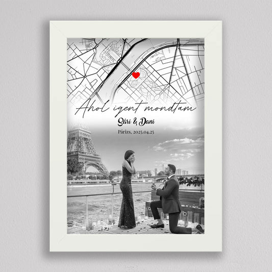 Eljegyzésünk története – Személyre Szabható Térképes Poszter