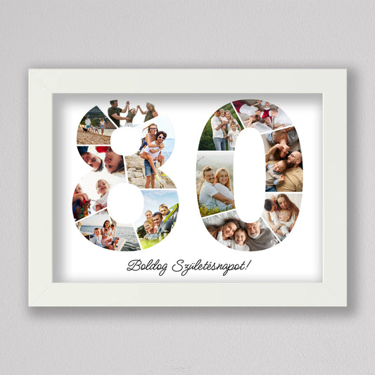 Egyedi számos fotó kollázs 80. születésnapra, évfordulóra