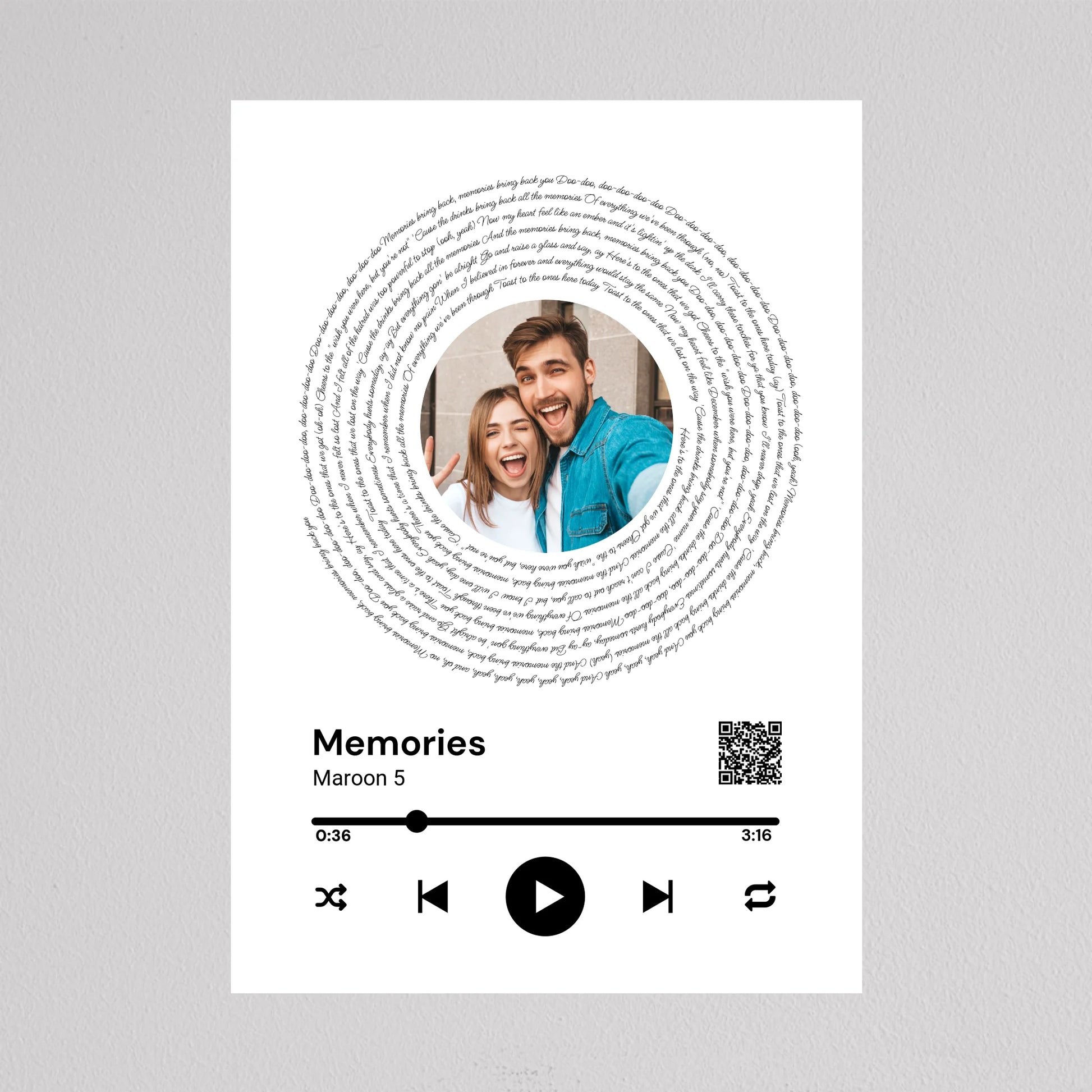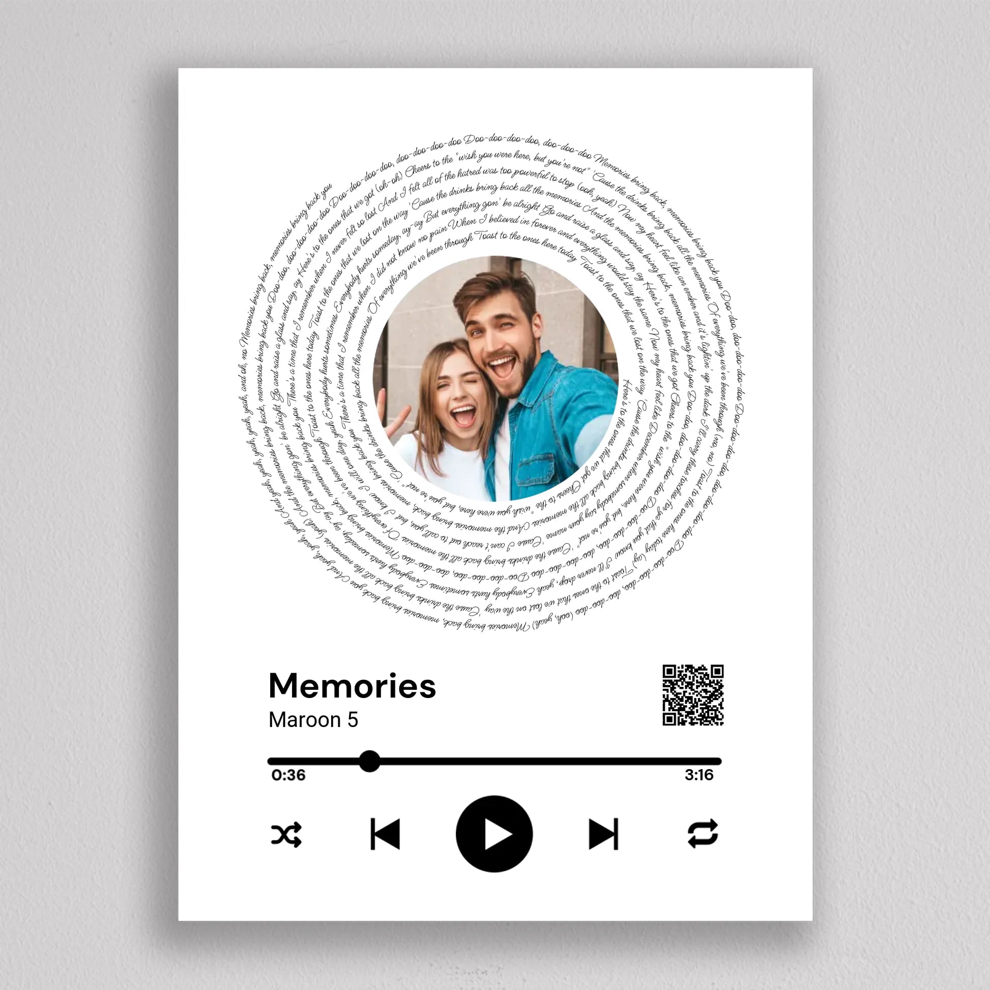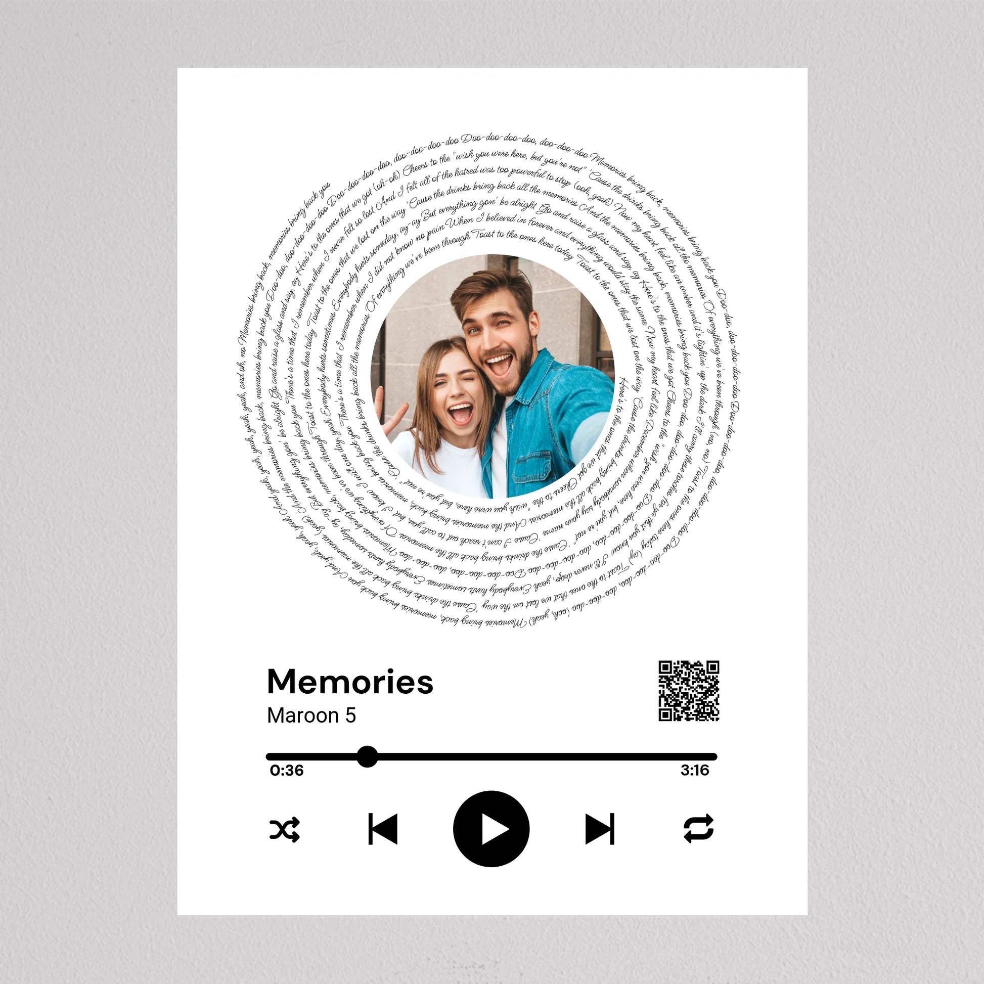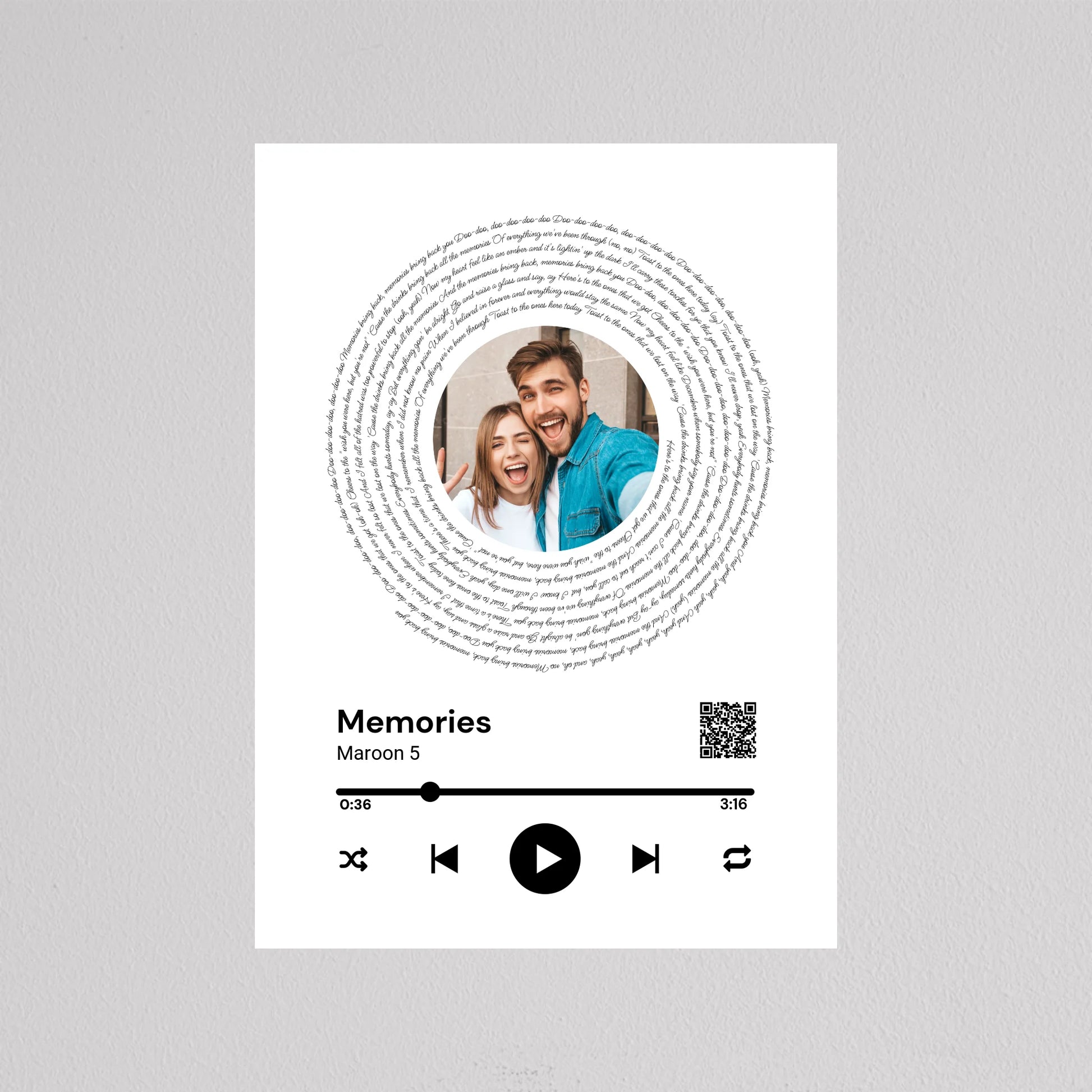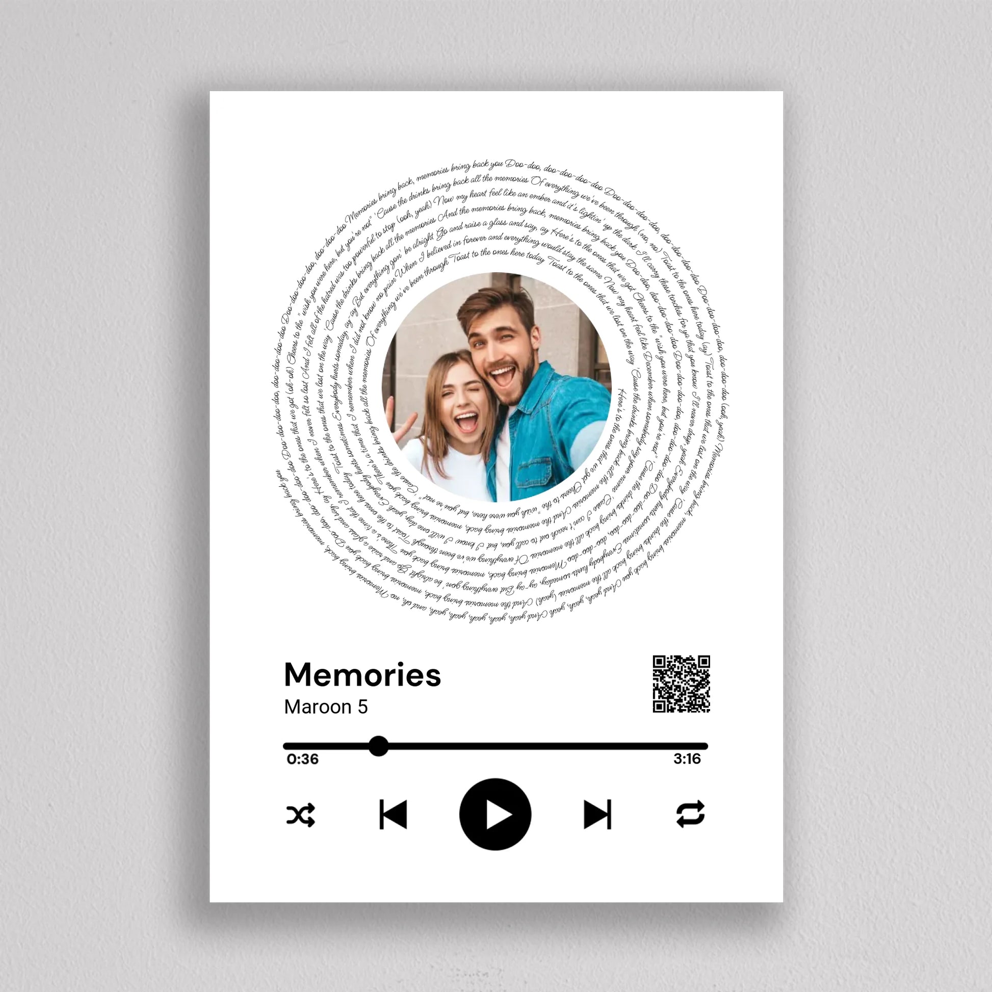 A Spotify stílusú bakelit fotó kollázs tökéletes választás mindazoknak, akik szeretnék megőrizni a közös dalok emlékét egy különleges, dekoratív formában. A spirálisan elrendezett dalszöveg egyedi keretet ad a középen elhelyezett fényképednek, miközben az alsó rész a zenelejátszó ikonikus megjelenését idézi QR-kóddal és lejátszósávval. Személyre szabható kedvenc dalod, előadó, dátum, fénykép és szöveg alapján – így válik igazán személyes és érzelmi ajándékká. A modern zene-rajongók és szerelmespárok kedvence, legyen szó évfordulóról, születésnapról vagy “csak úgy” meglepetésről. Az esztétikus dizájn bármely otthonban stílusos emlékként tündököl. A falikép önmagában NEM rendelkezik hangszóróval és NEM zenél! QR kóddal és/vagy interaktív NFC-vel telefonról lehet lejátszani a választott dalt!