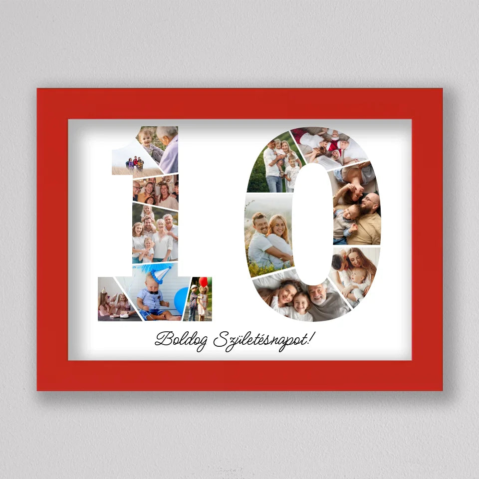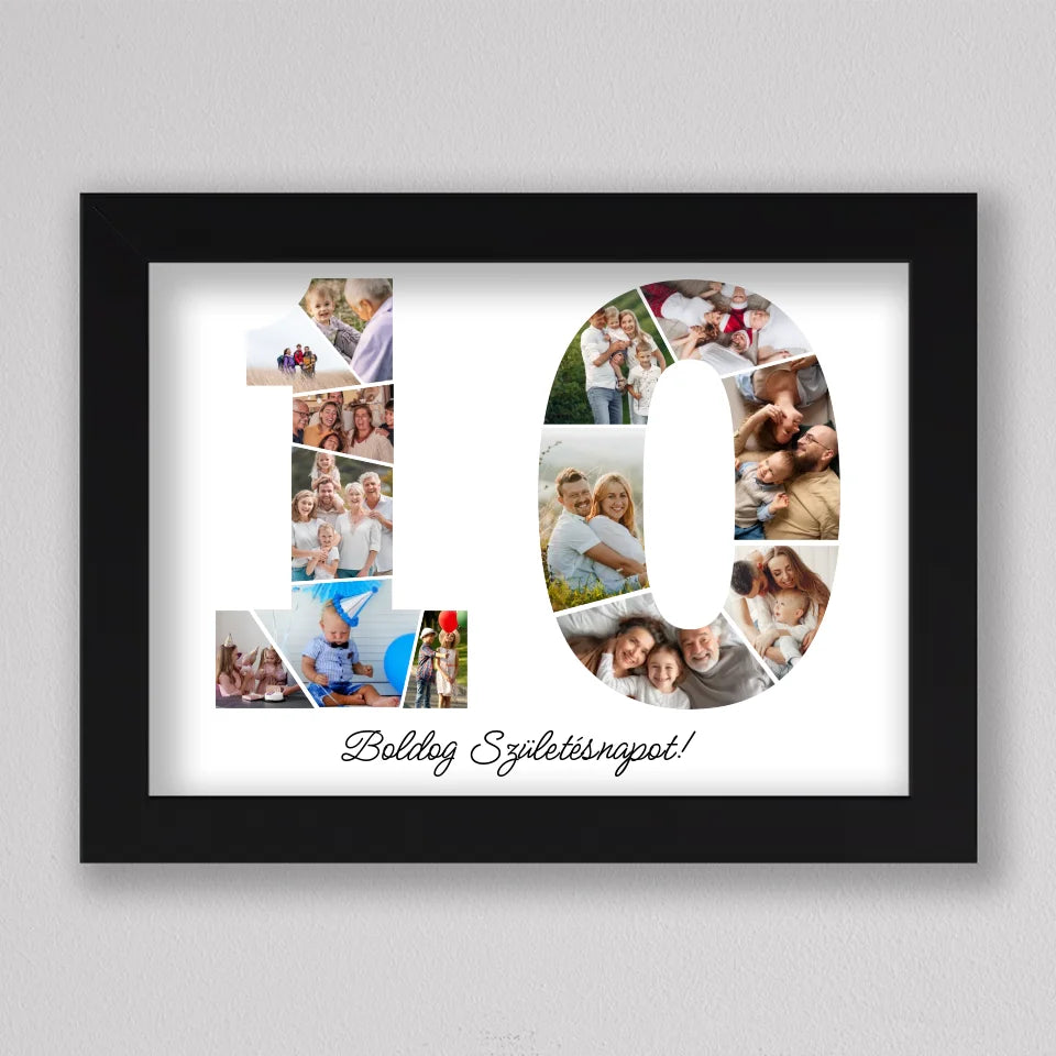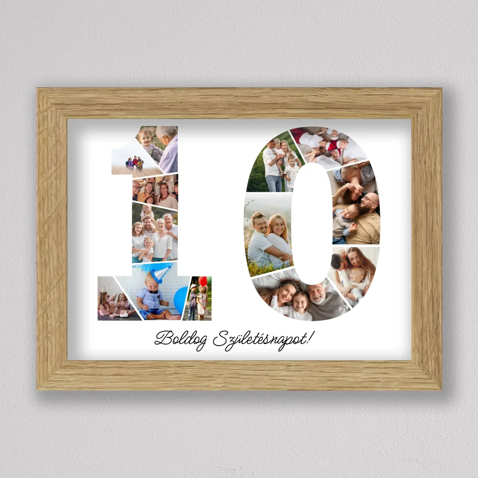 Az Egyedi számos fotókollázs 10. évfordulóra vagy születésnapra egy különleges, személyre szabható ajándék, amely egyedi módon örökíti meg a legszebb emlékeket. A “10” szám formájában elrendezett fotók kollázzsá alakulnak, amely bármilyen különleges alkalomra, legyen az születésnap, évforduló vagy más jubileumi esemény, tökéletes választás. Az igényes megjelenés, valamint a testre szabhatóság lehetővé teszi, hogy a kollázs igazán egyedi ajándékká váljon. Válaszd ezt a kreatív megoldást, ha igazán maradandó élményt szeretnél ajándékozni szeretteidnek.