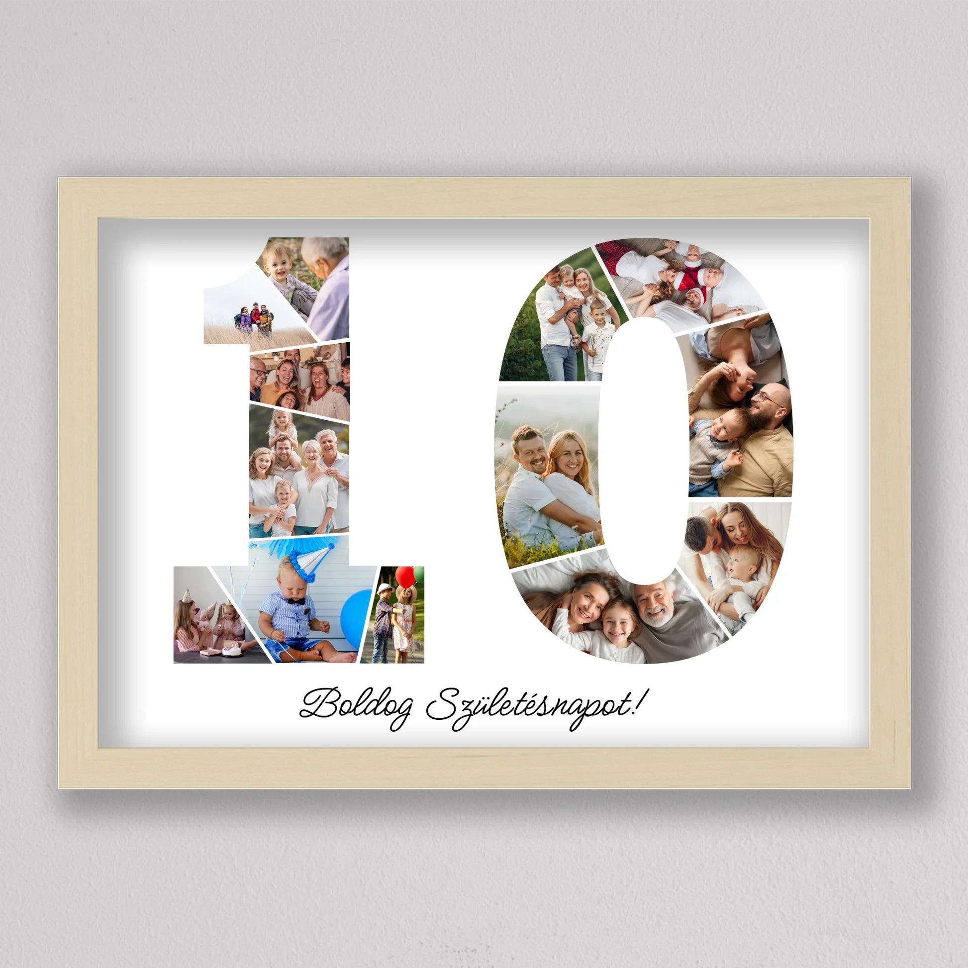 Egyedi számos fotó kollázs 10. évfordulóra, születésnapra