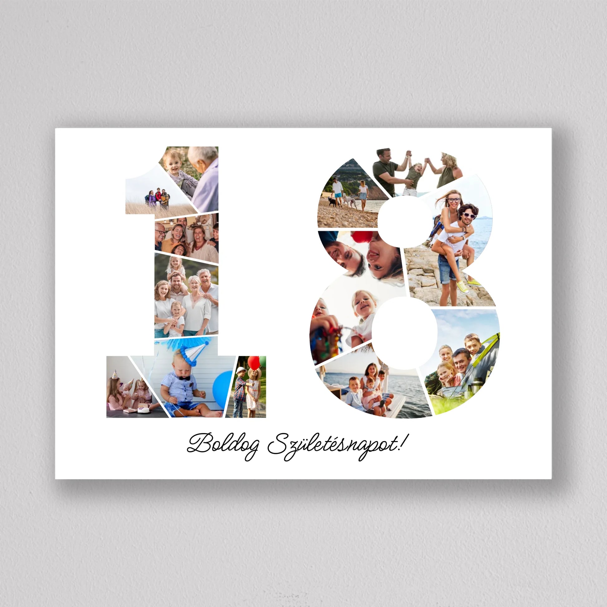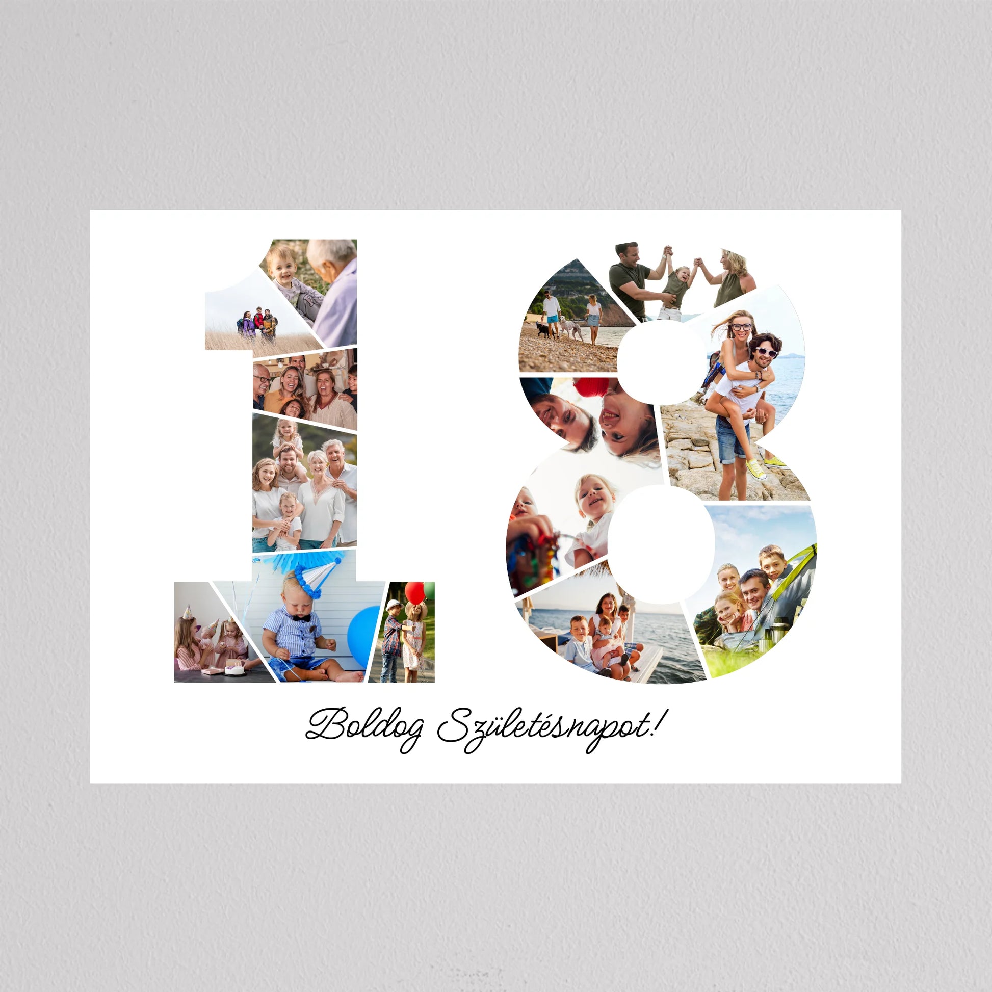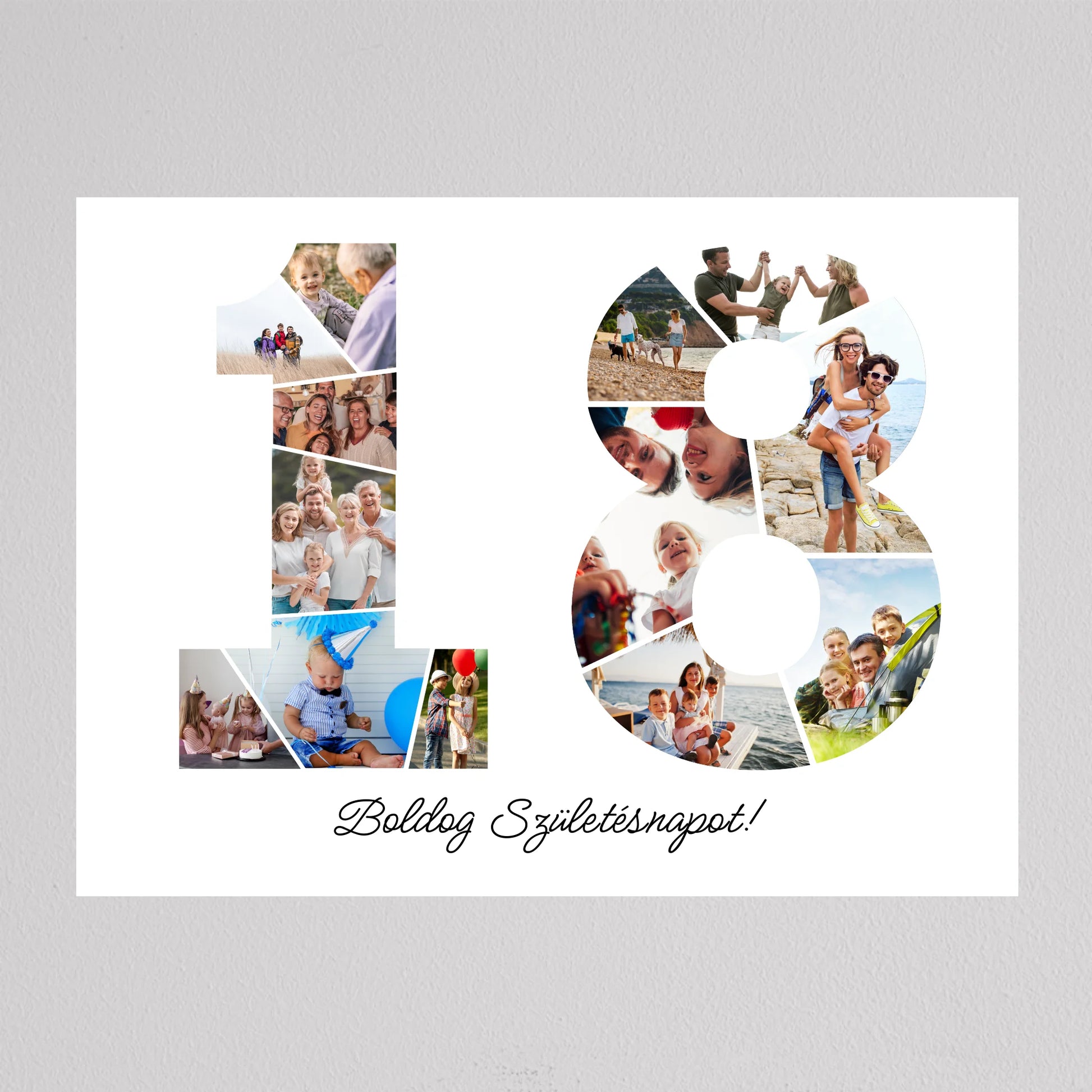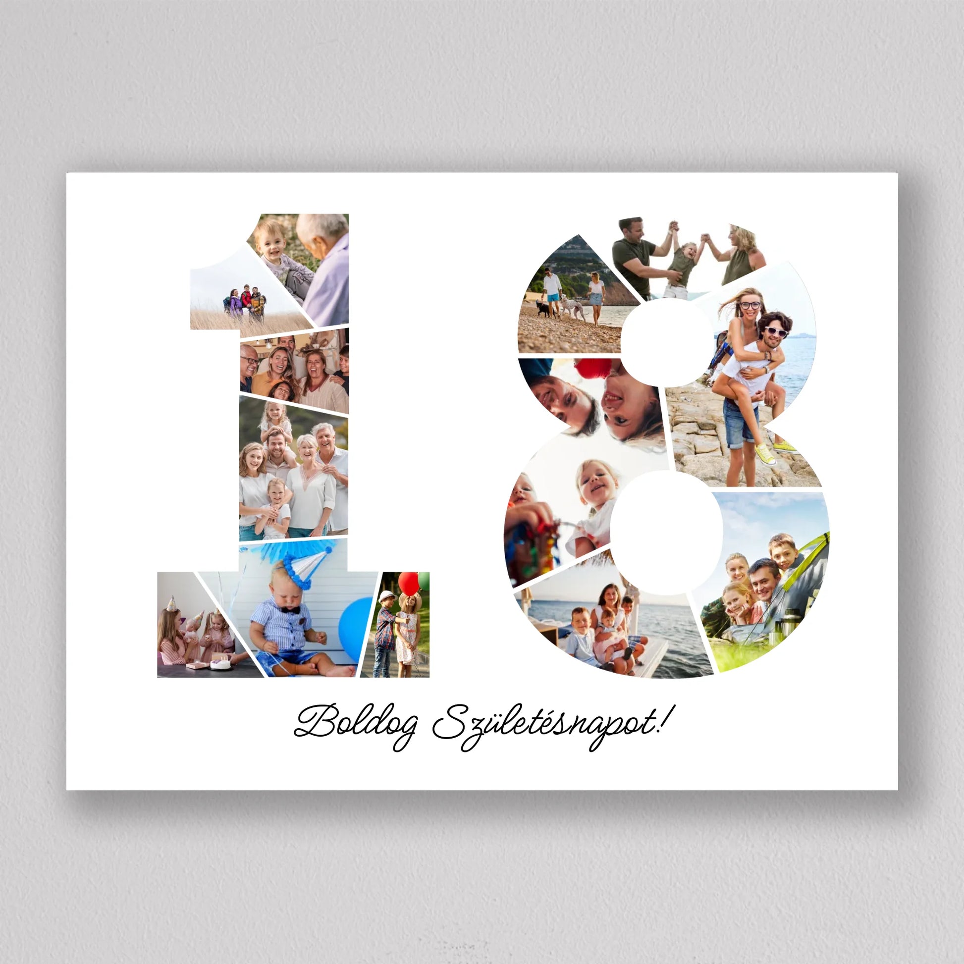 Egyedi számos fotó kollázs 18. születésnapra, évfordulóra