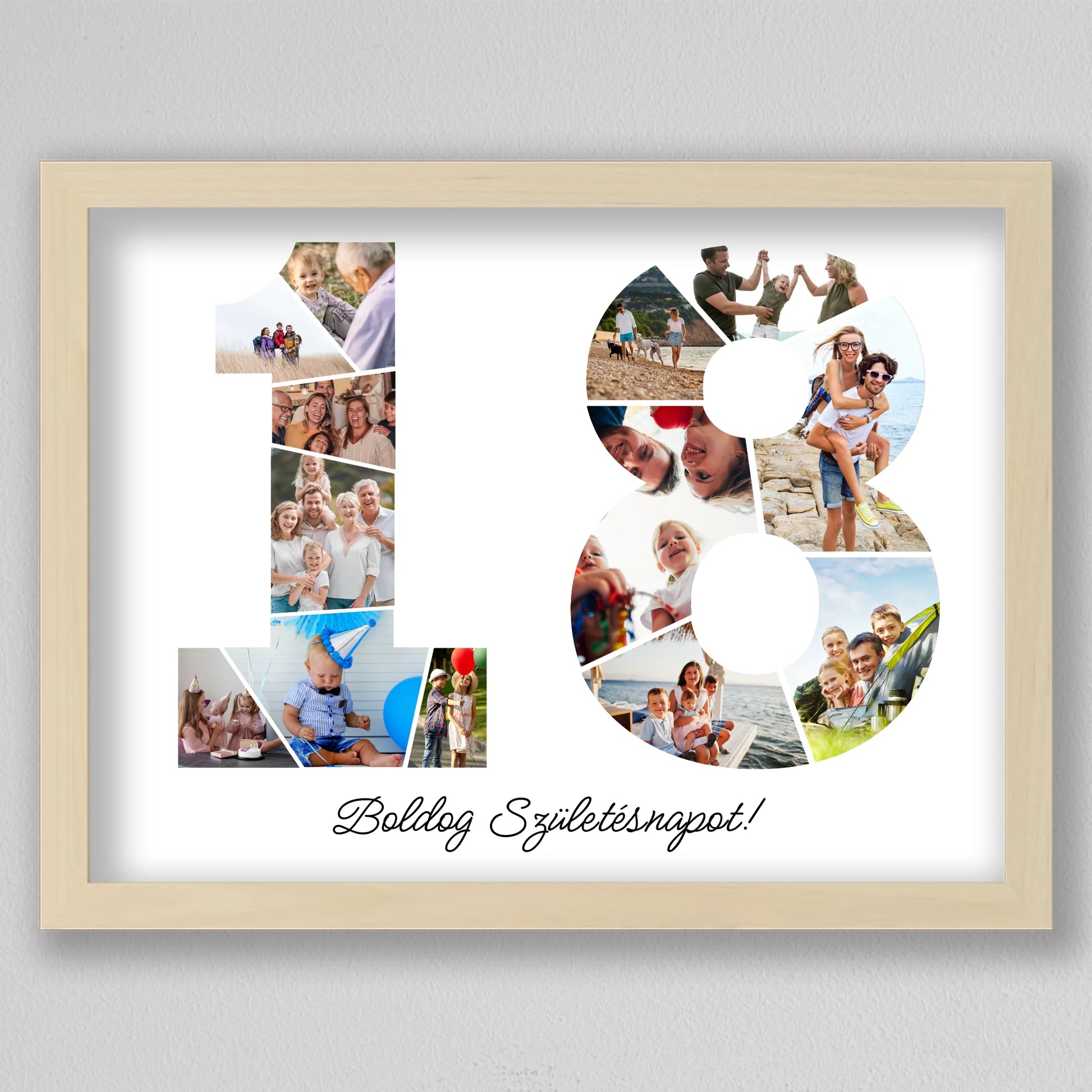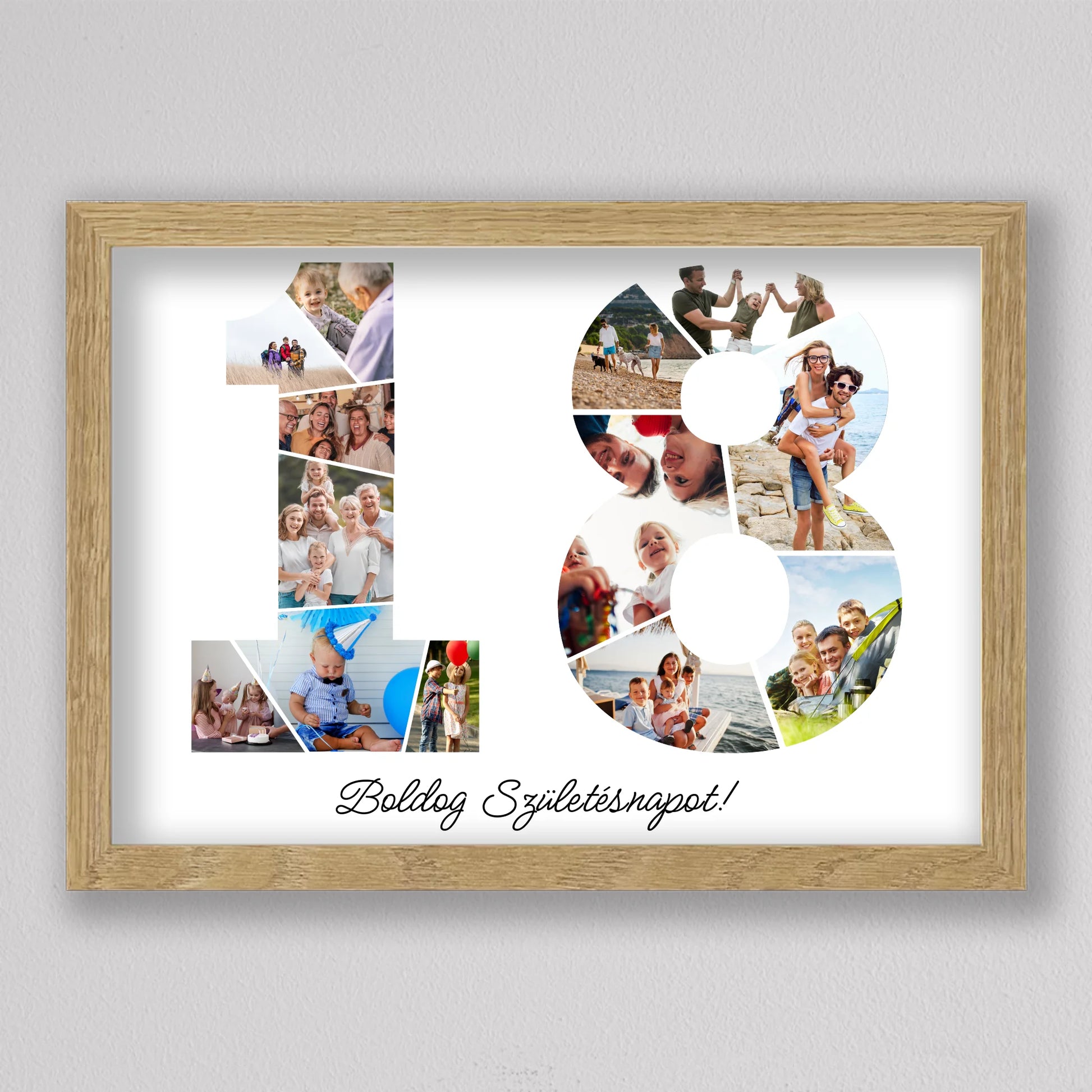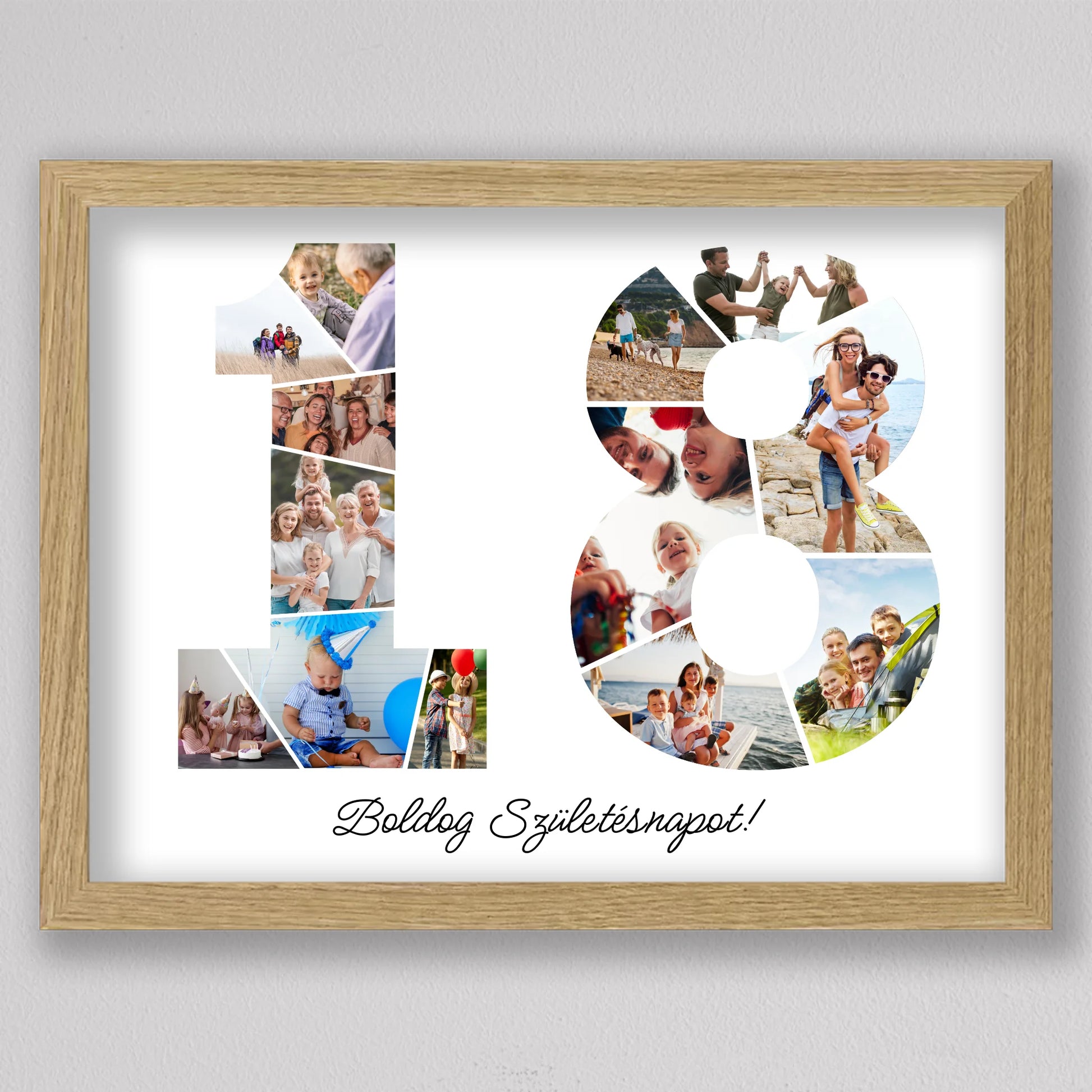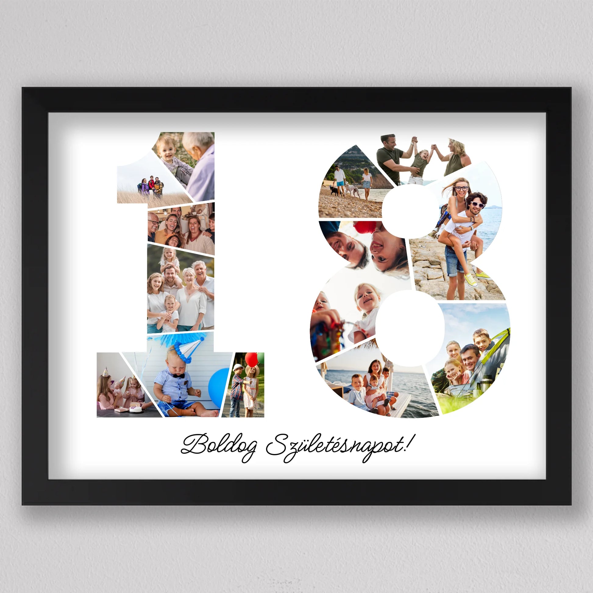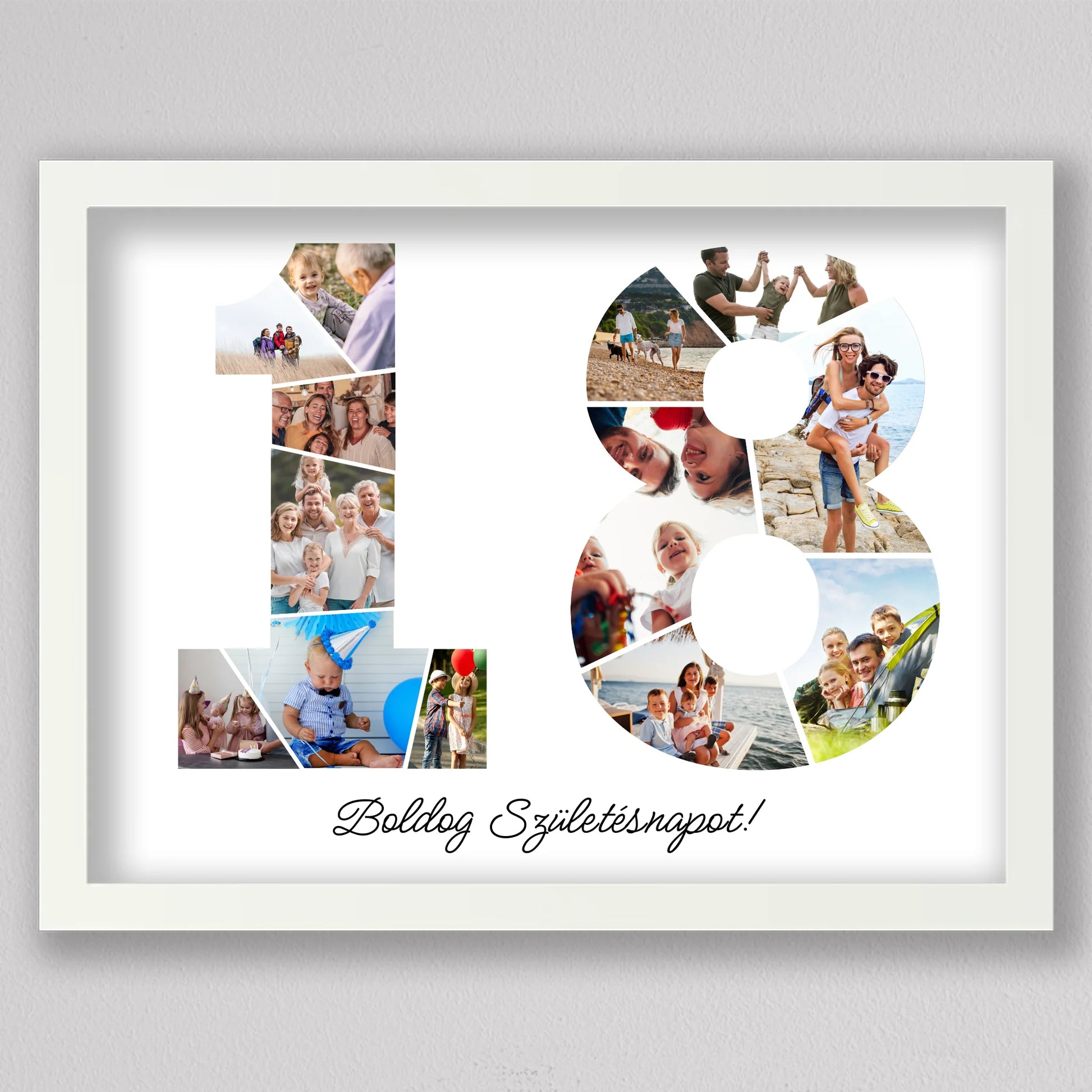 Egyedi számos fotó kollázs 18. születésnapra, évfordulóra