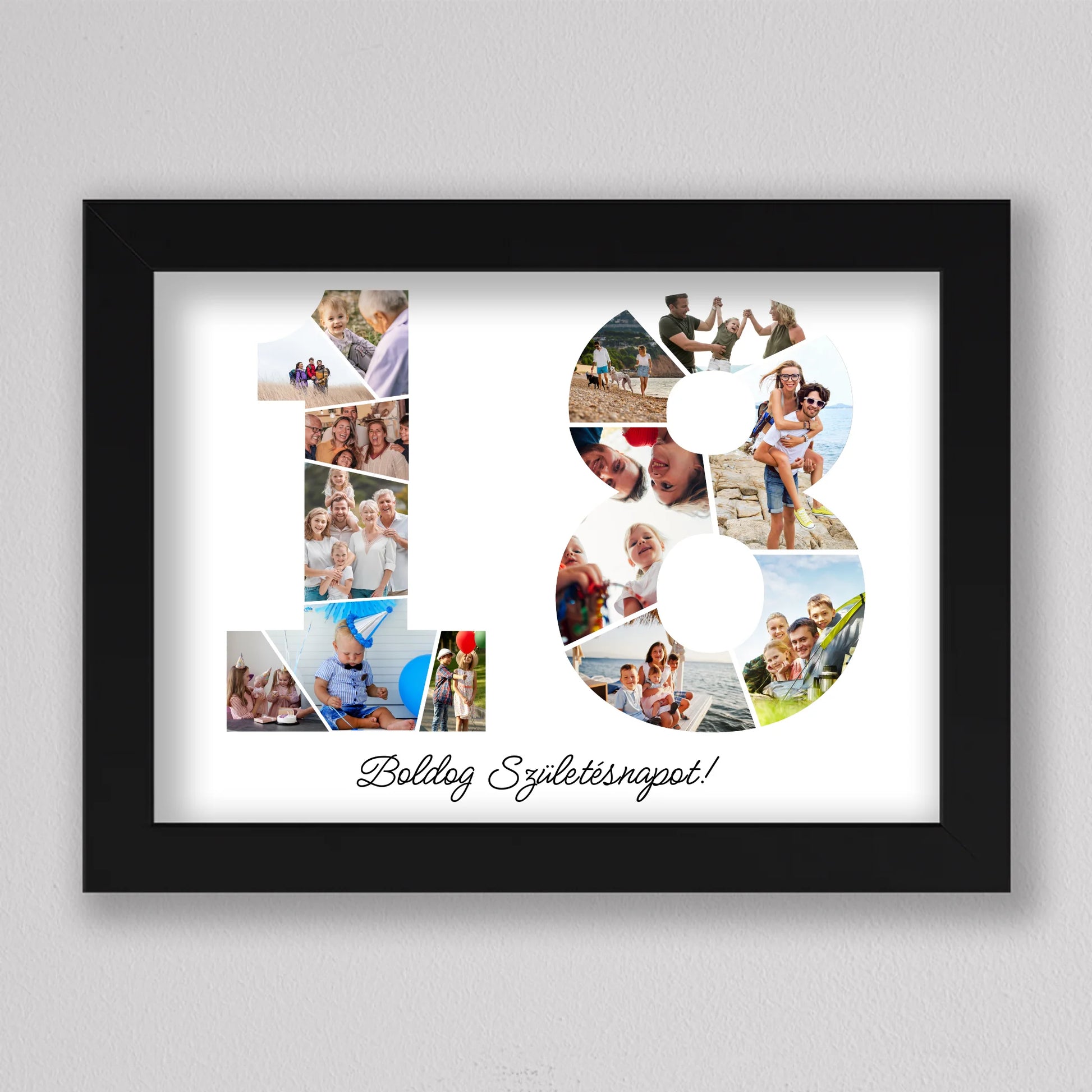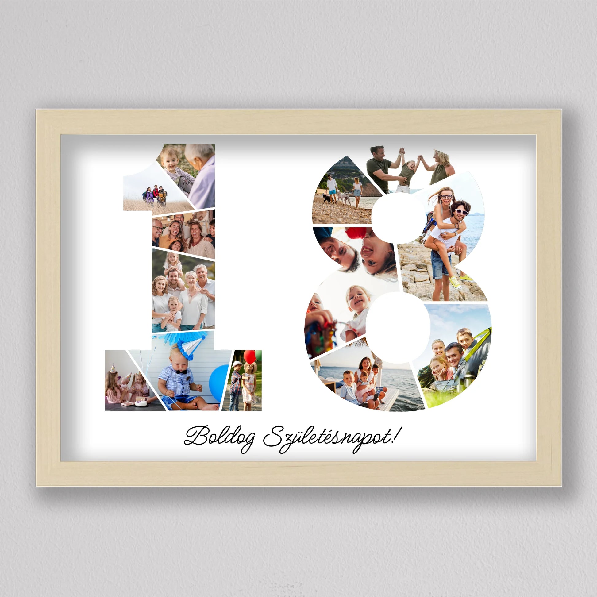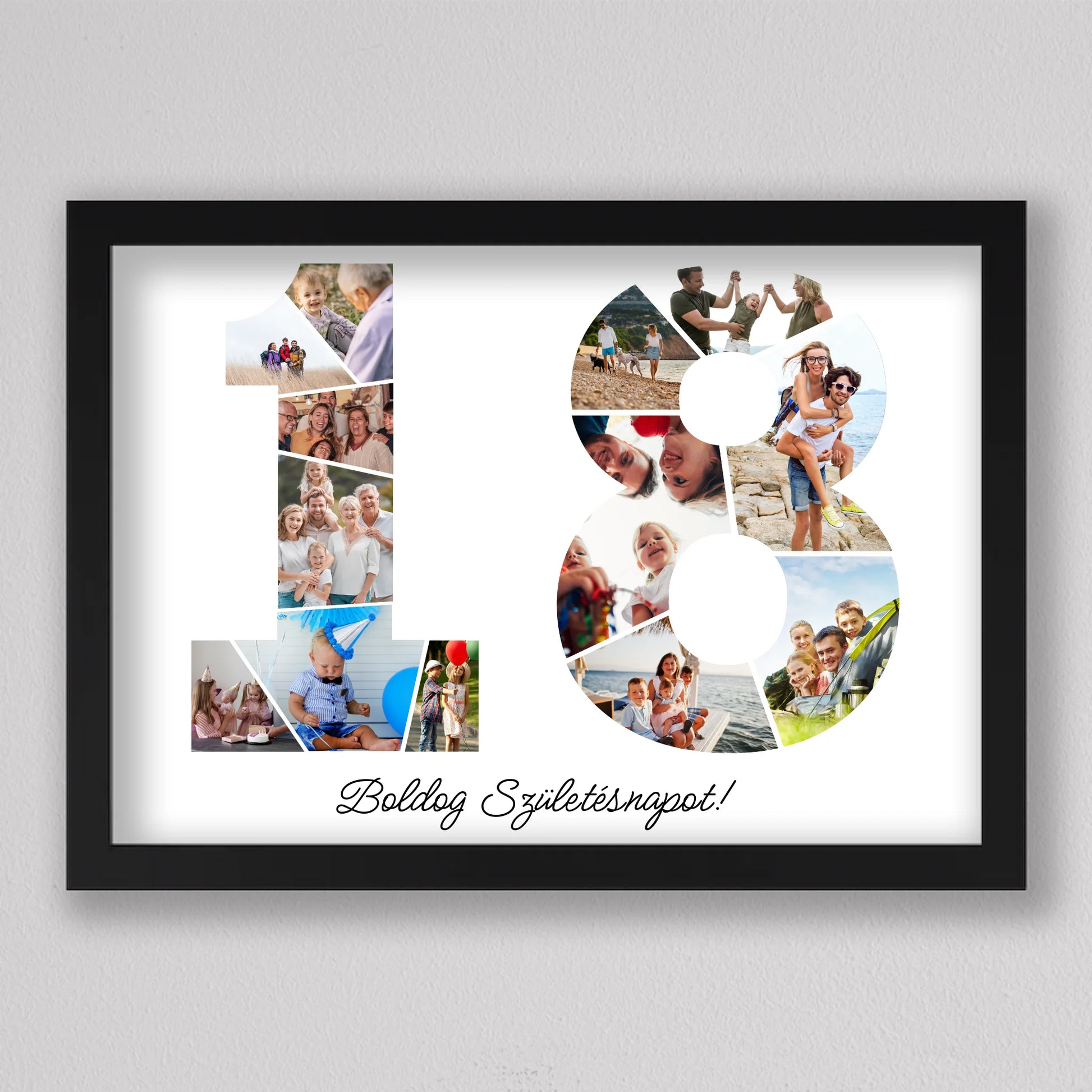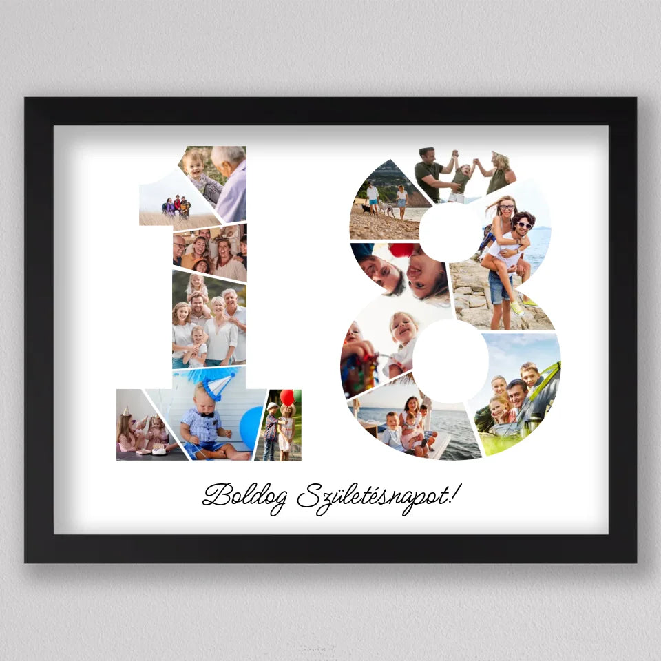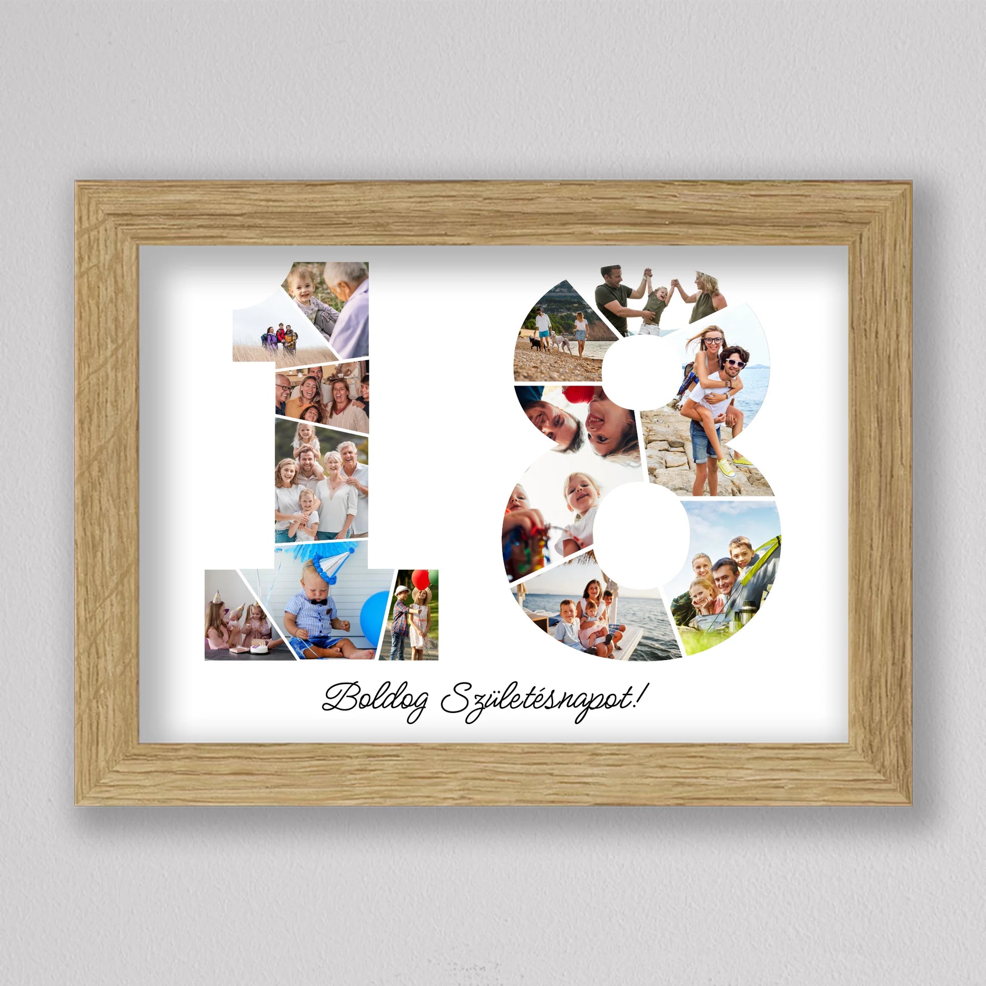 Egyedi számos fotó kollázs 18. születésnapra, évfordulóra