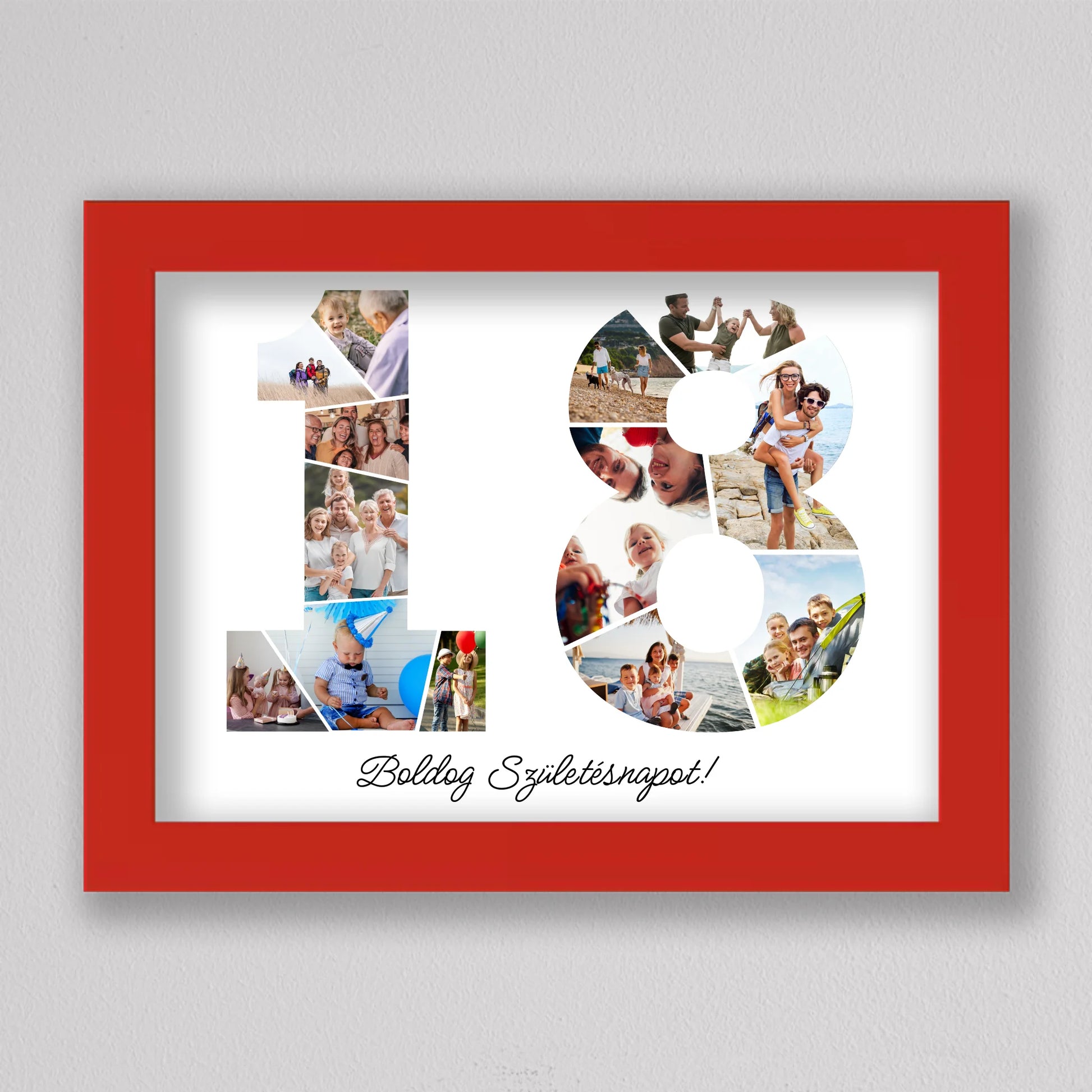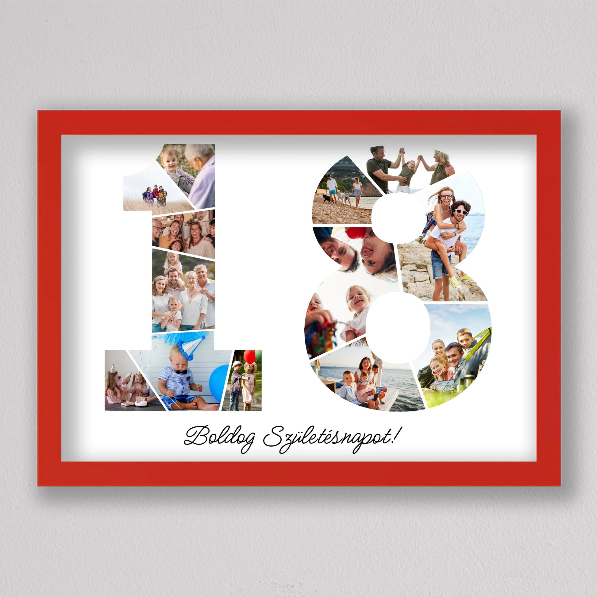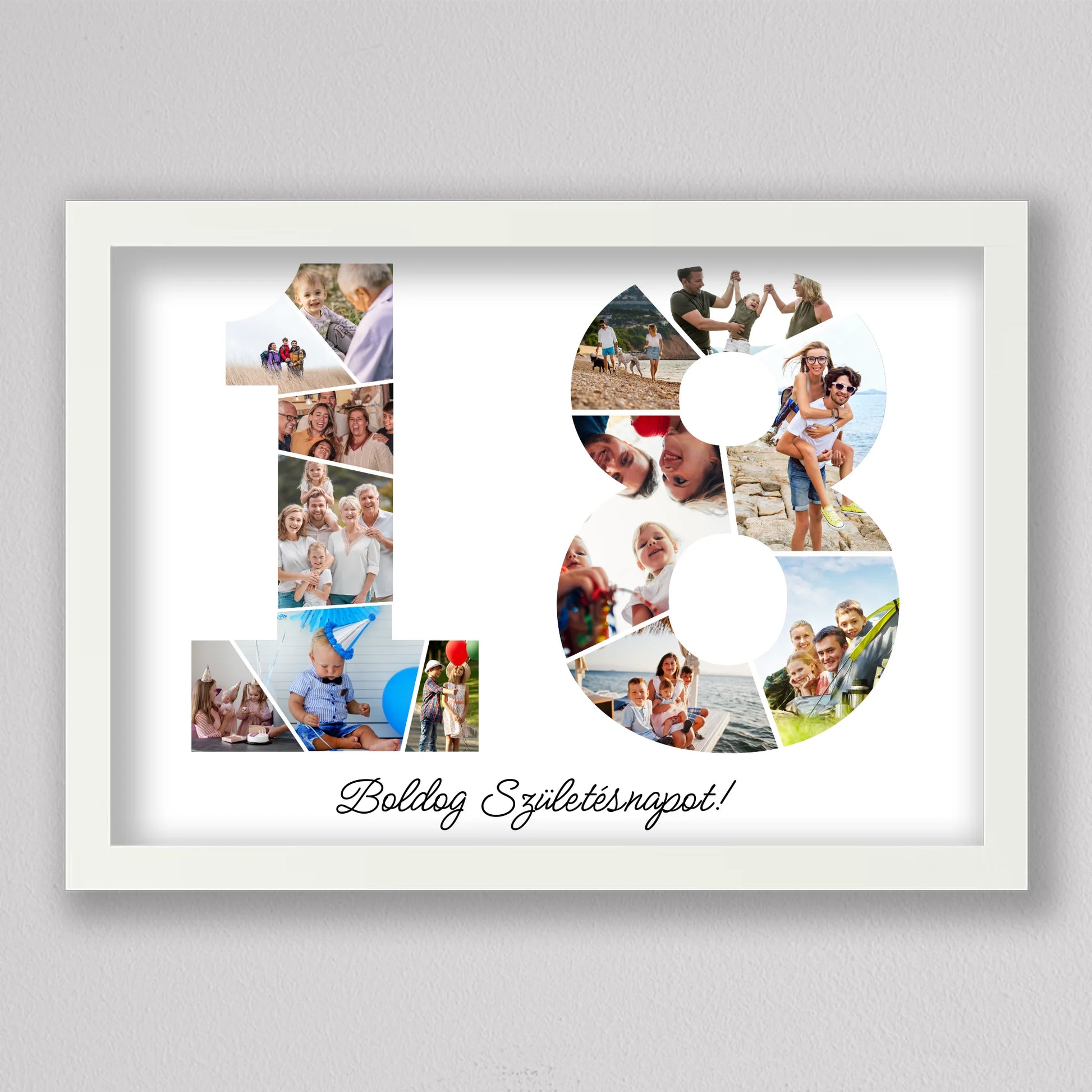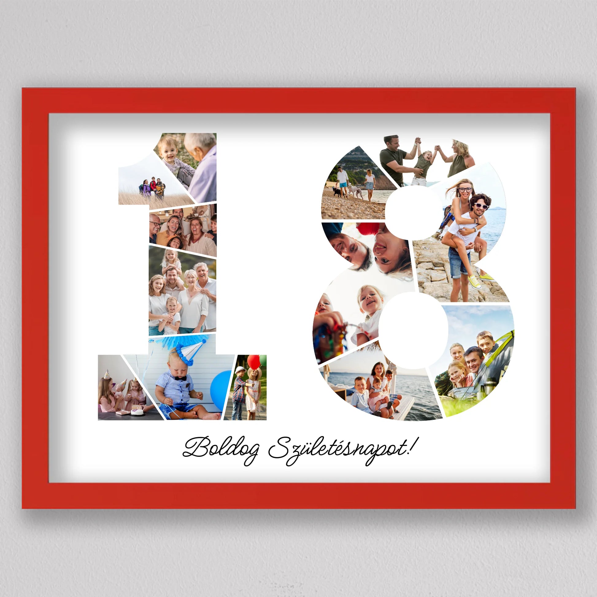 Egyedi számos fotó kollázs 18. születésnapra, évfordulóra