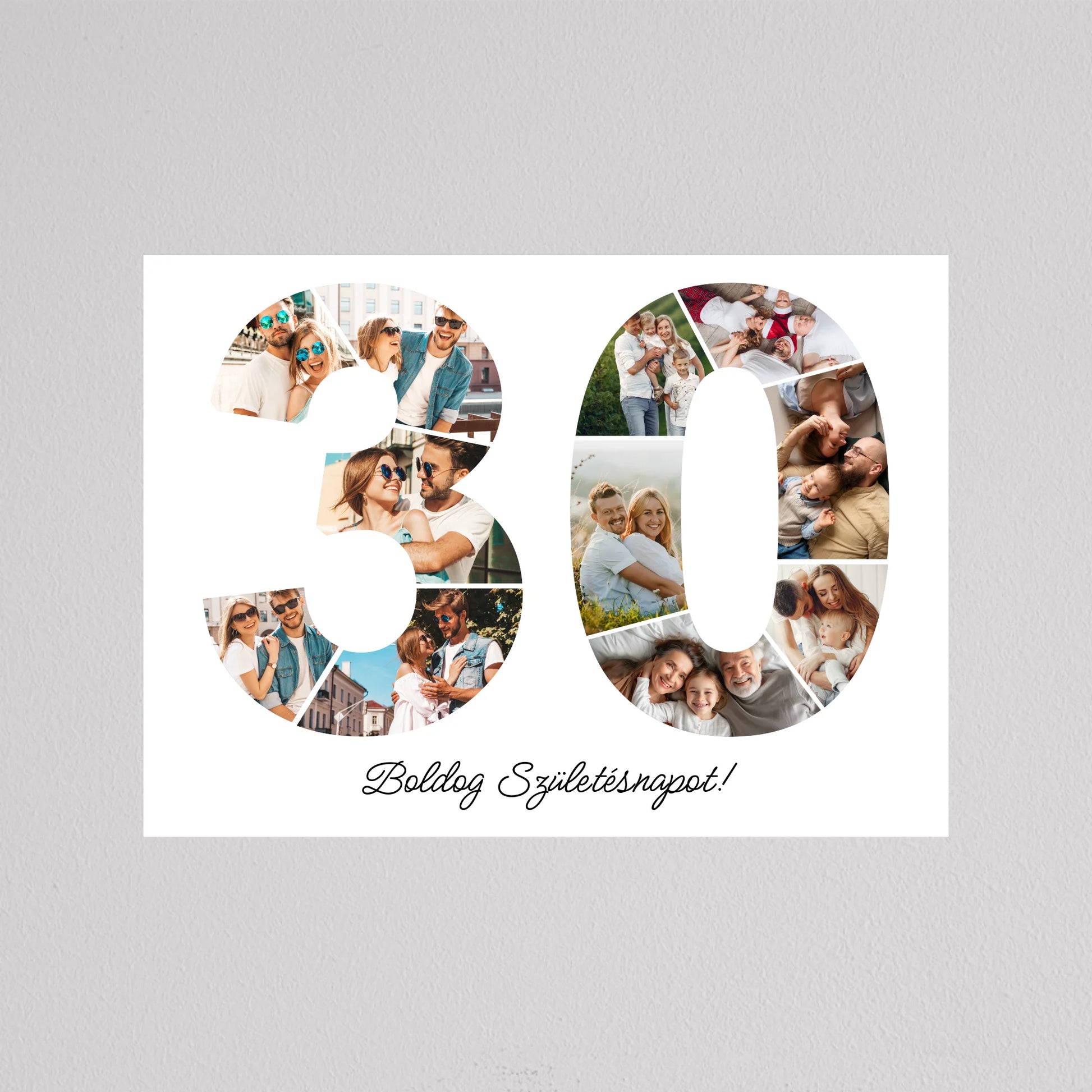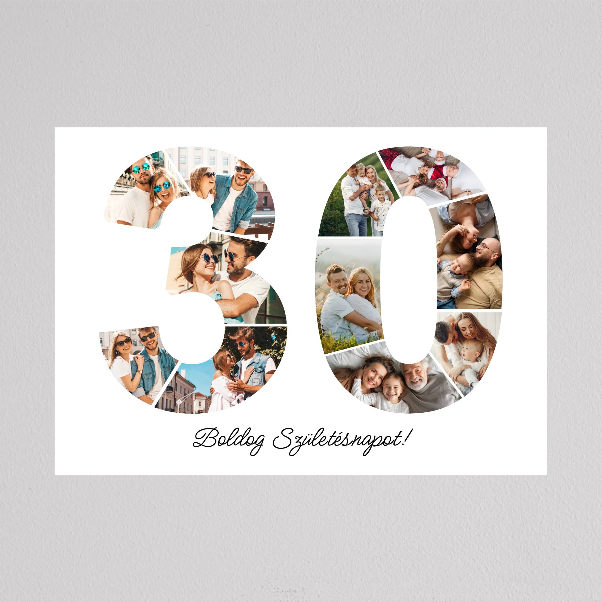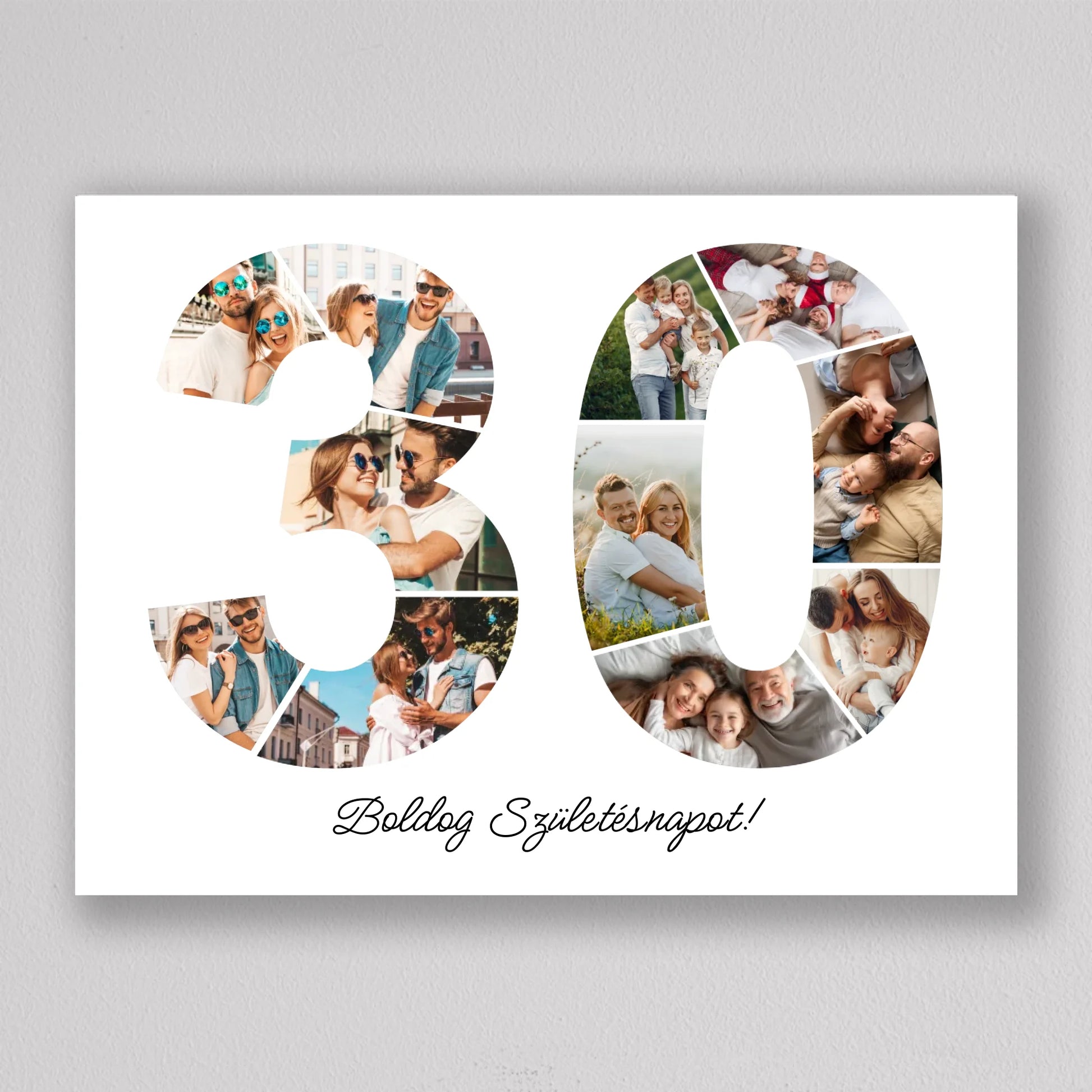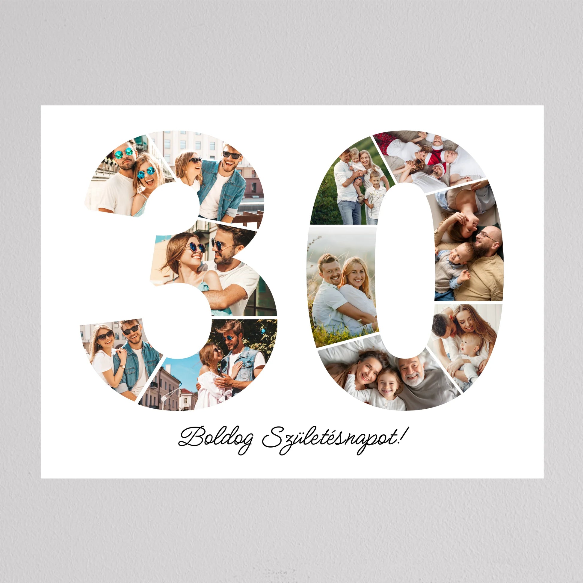 Egyedi számos fotó kollázs 30. születésnapra, évfordulóra