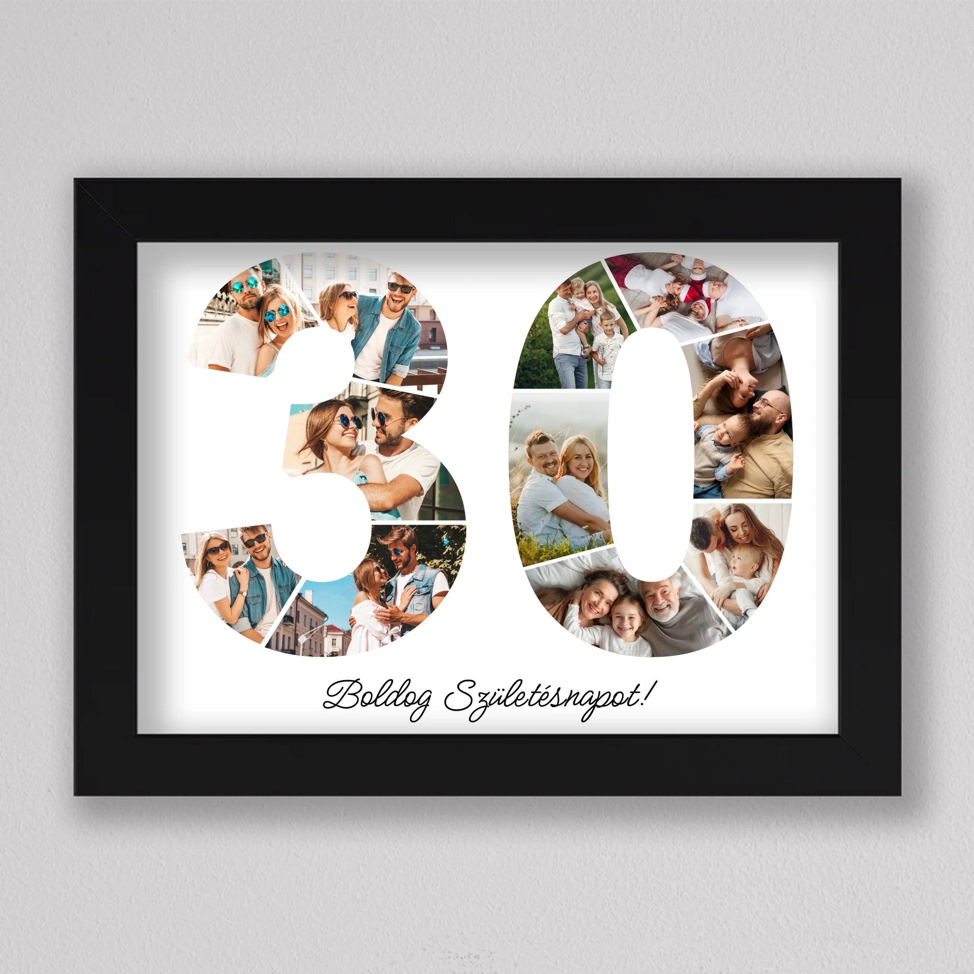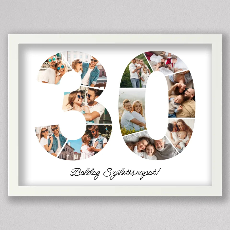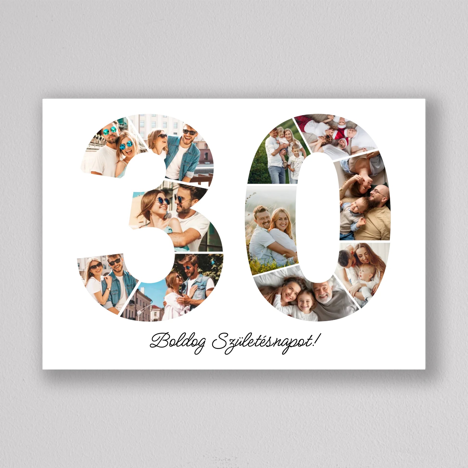 Egyedi számos fotó kollázs 30. születésnapra, évfordulóra