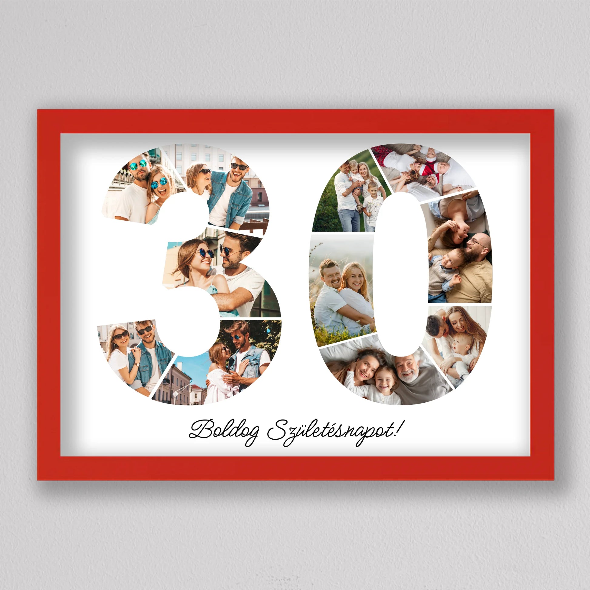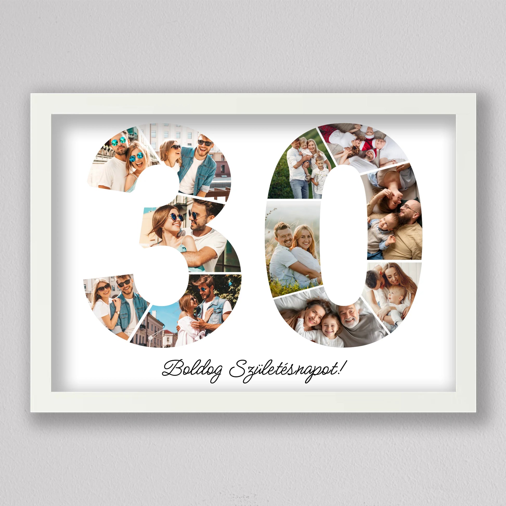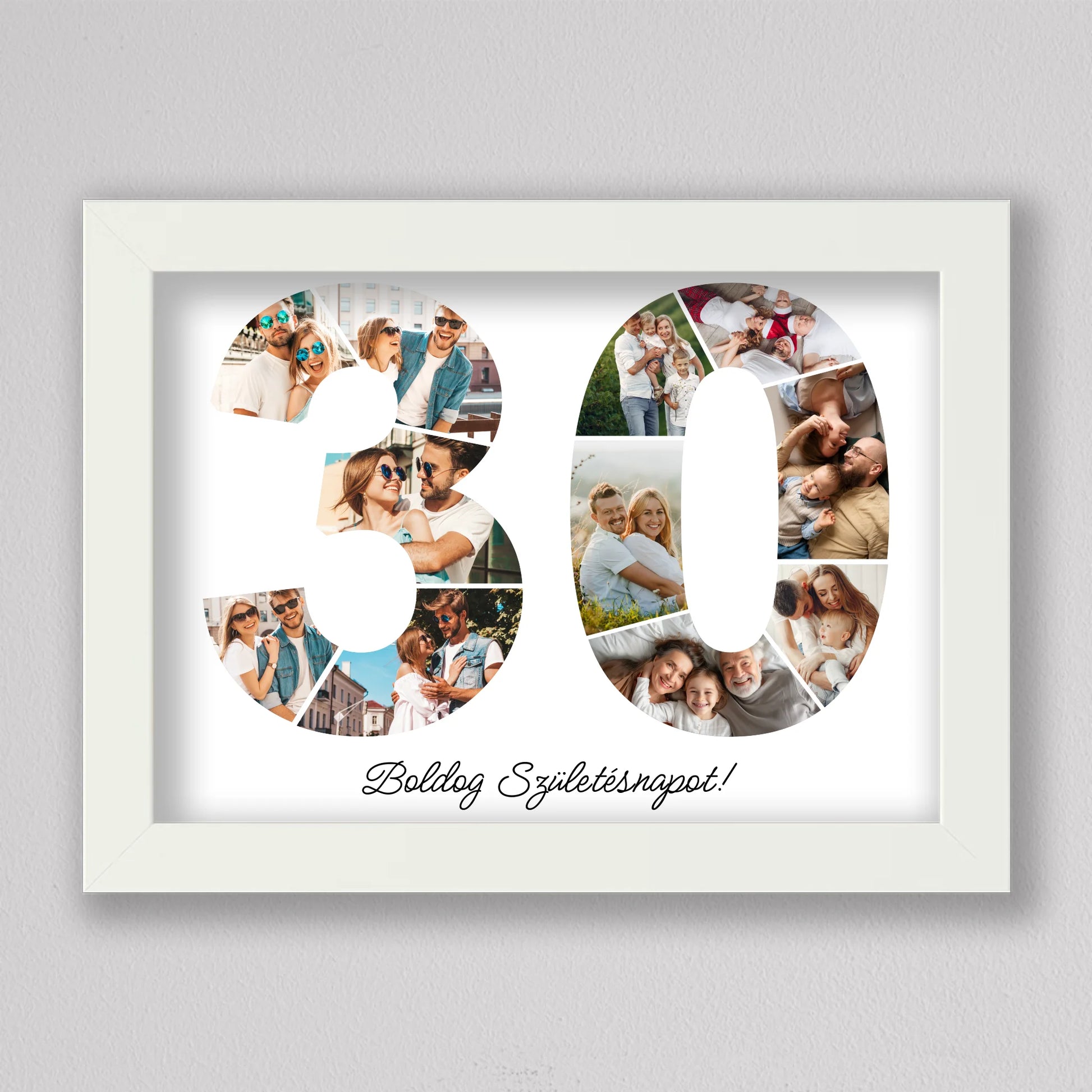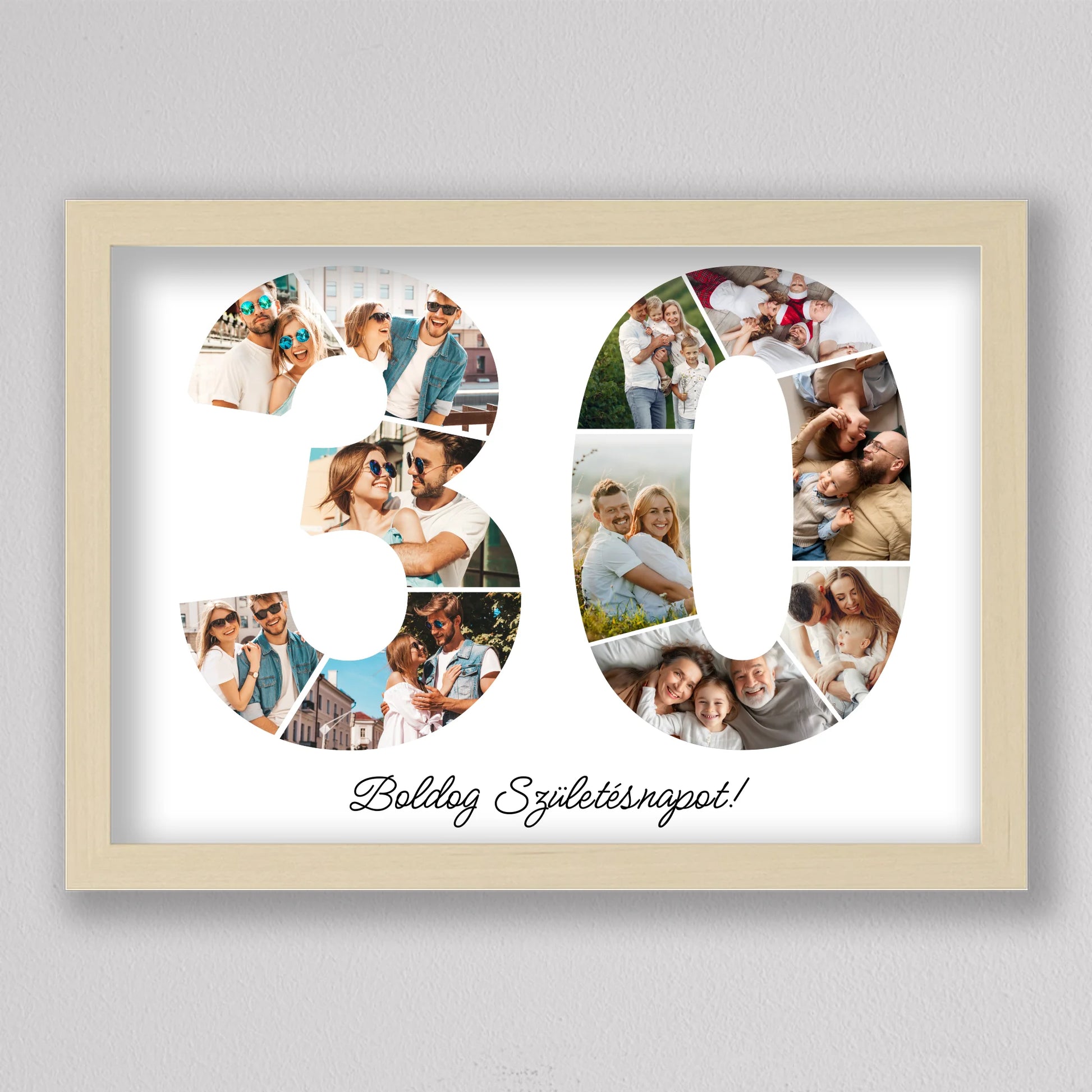 Egyedi számos fotó kollázs 30. születésnapra, évfordulóra