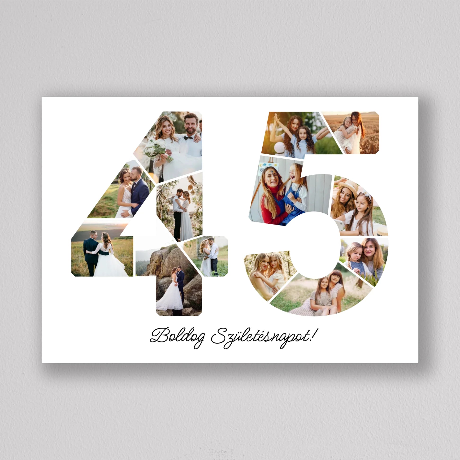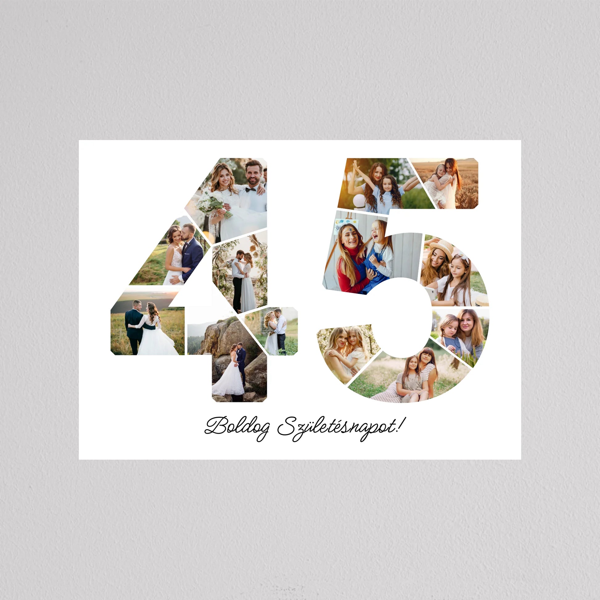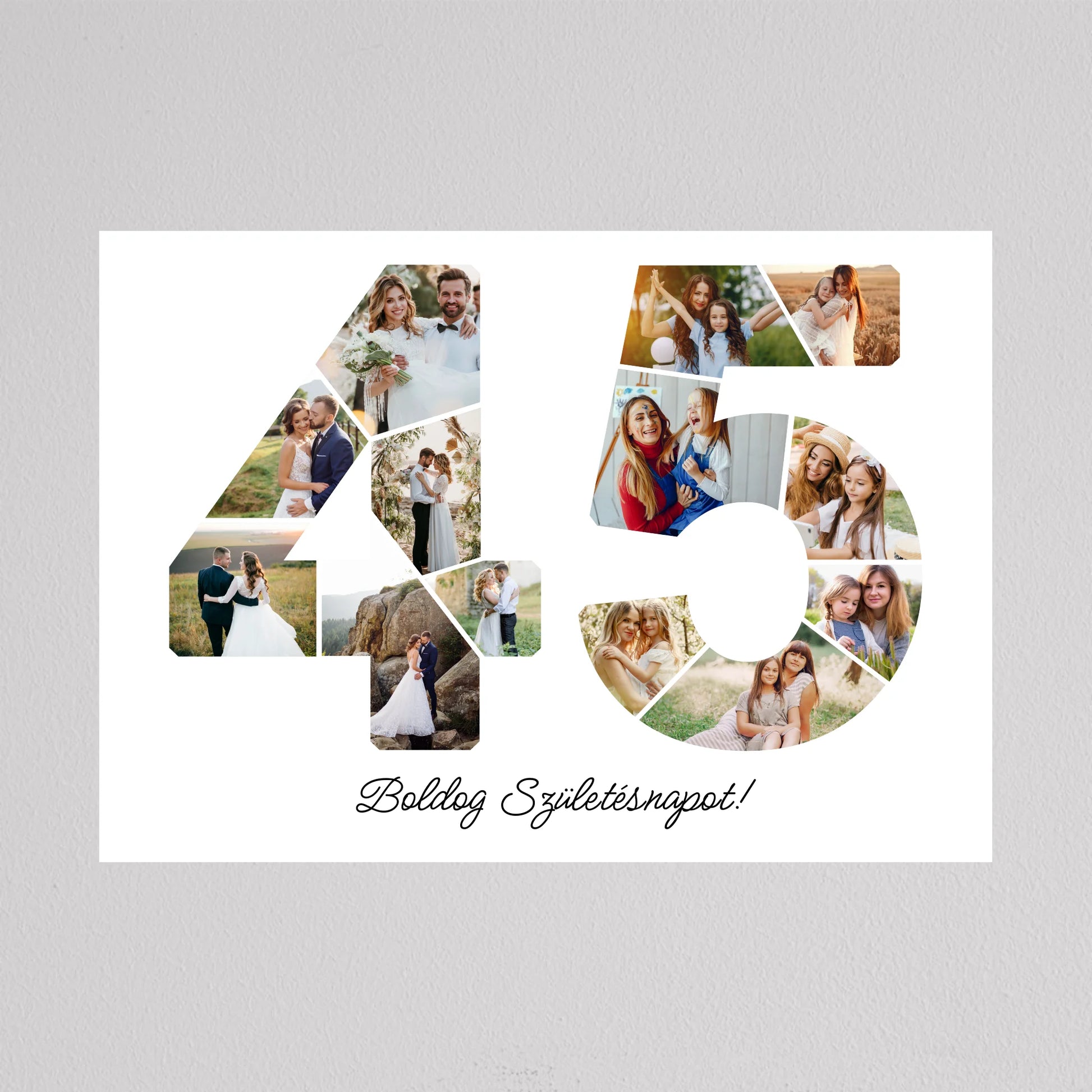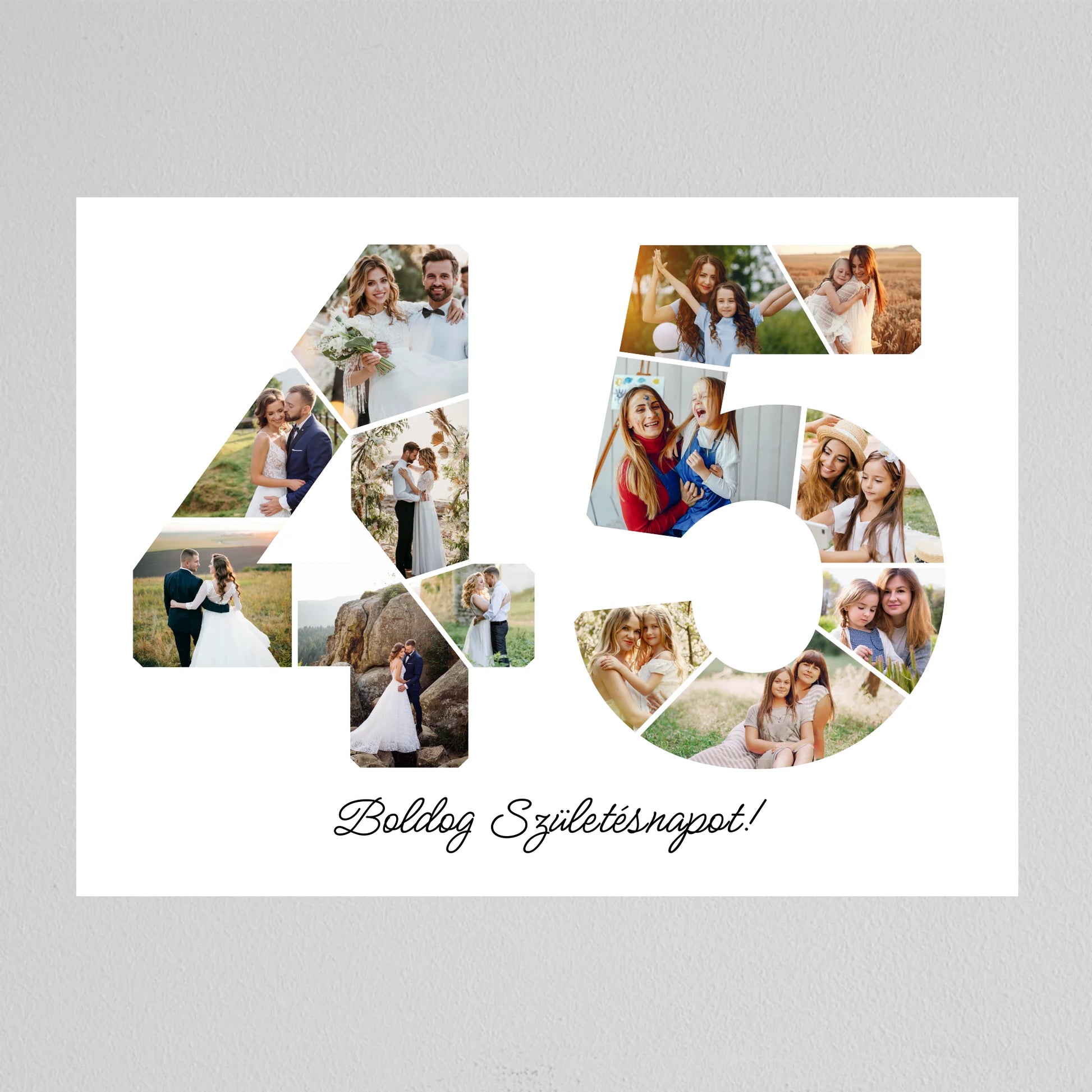 Egyedi számos fotó kollázs 45. születésnapra, évfordulóra