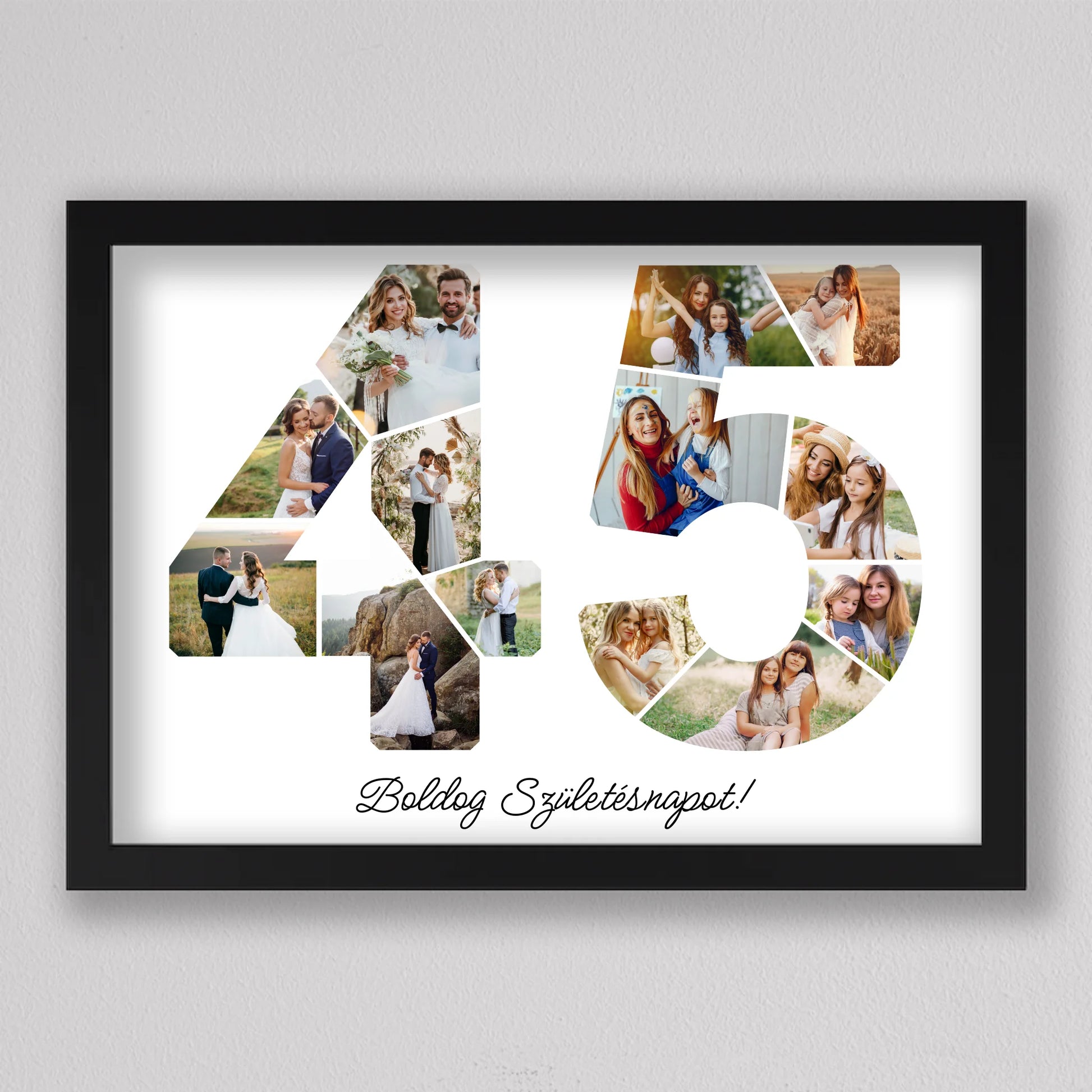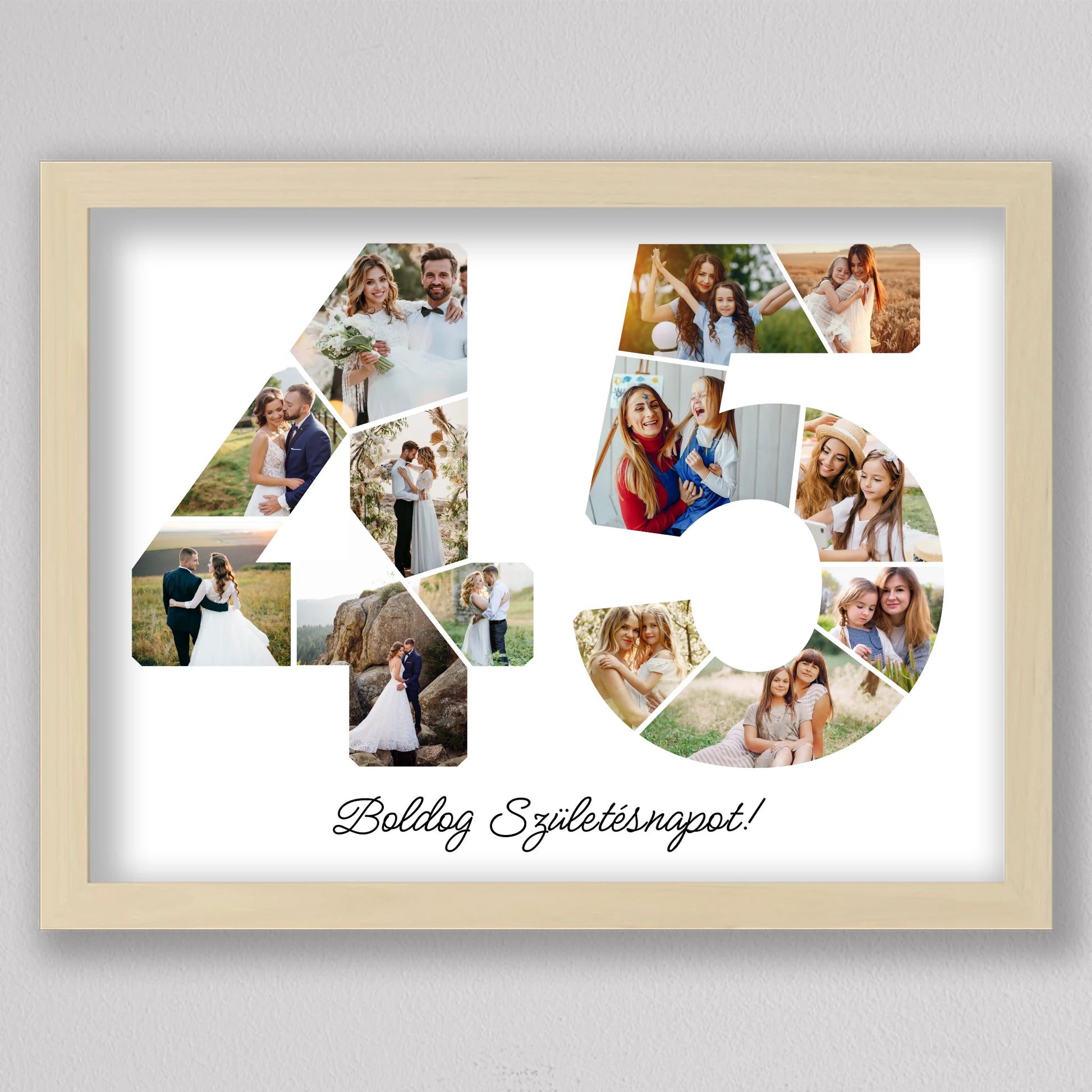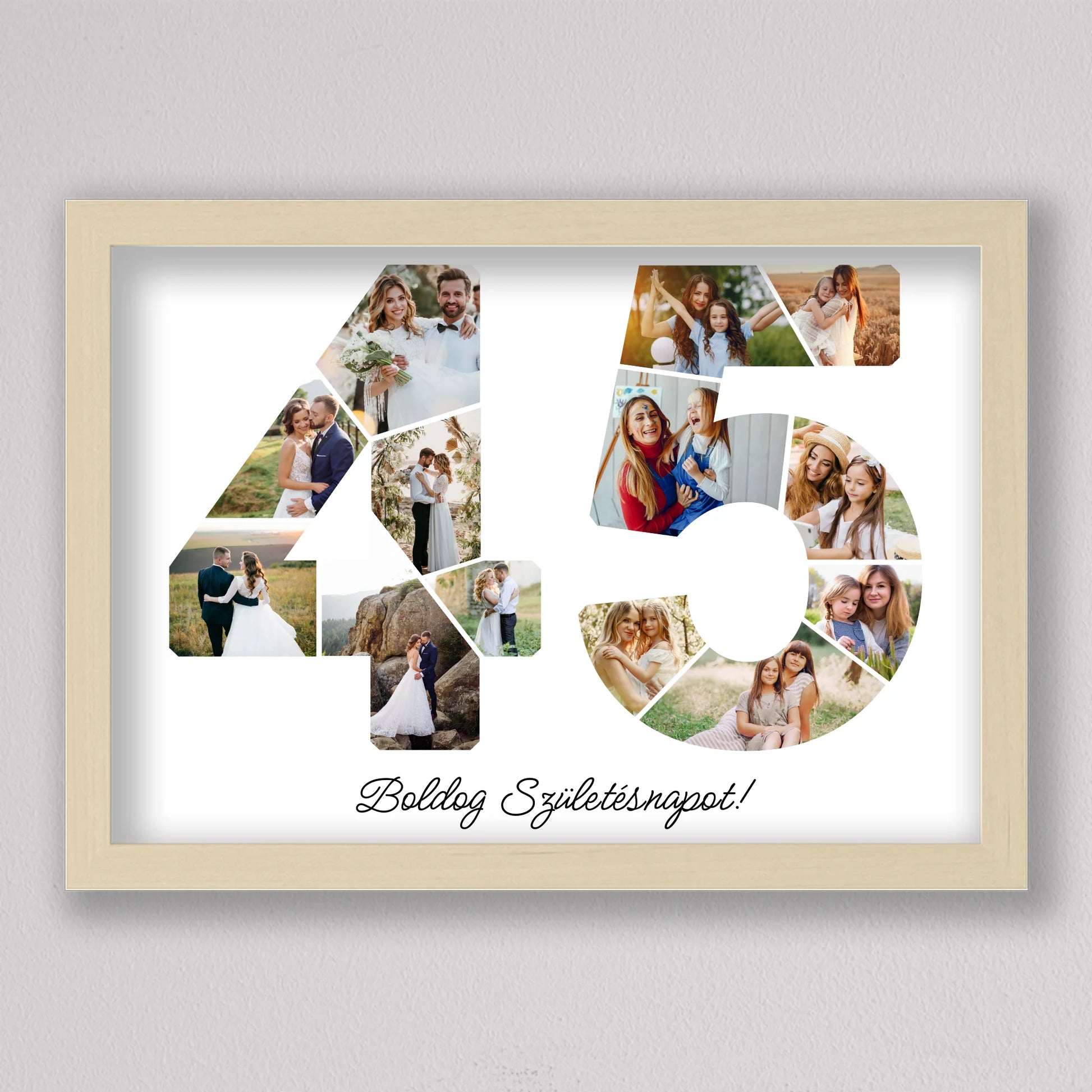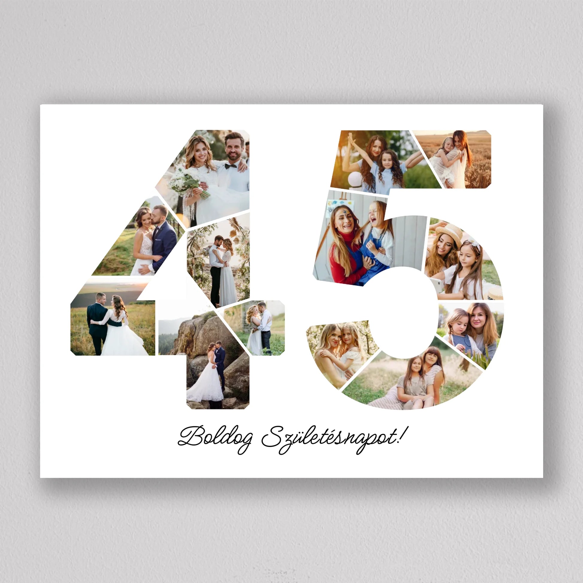 Egyedi számos fotó kollázs 45. születésnapra, évfordulóra