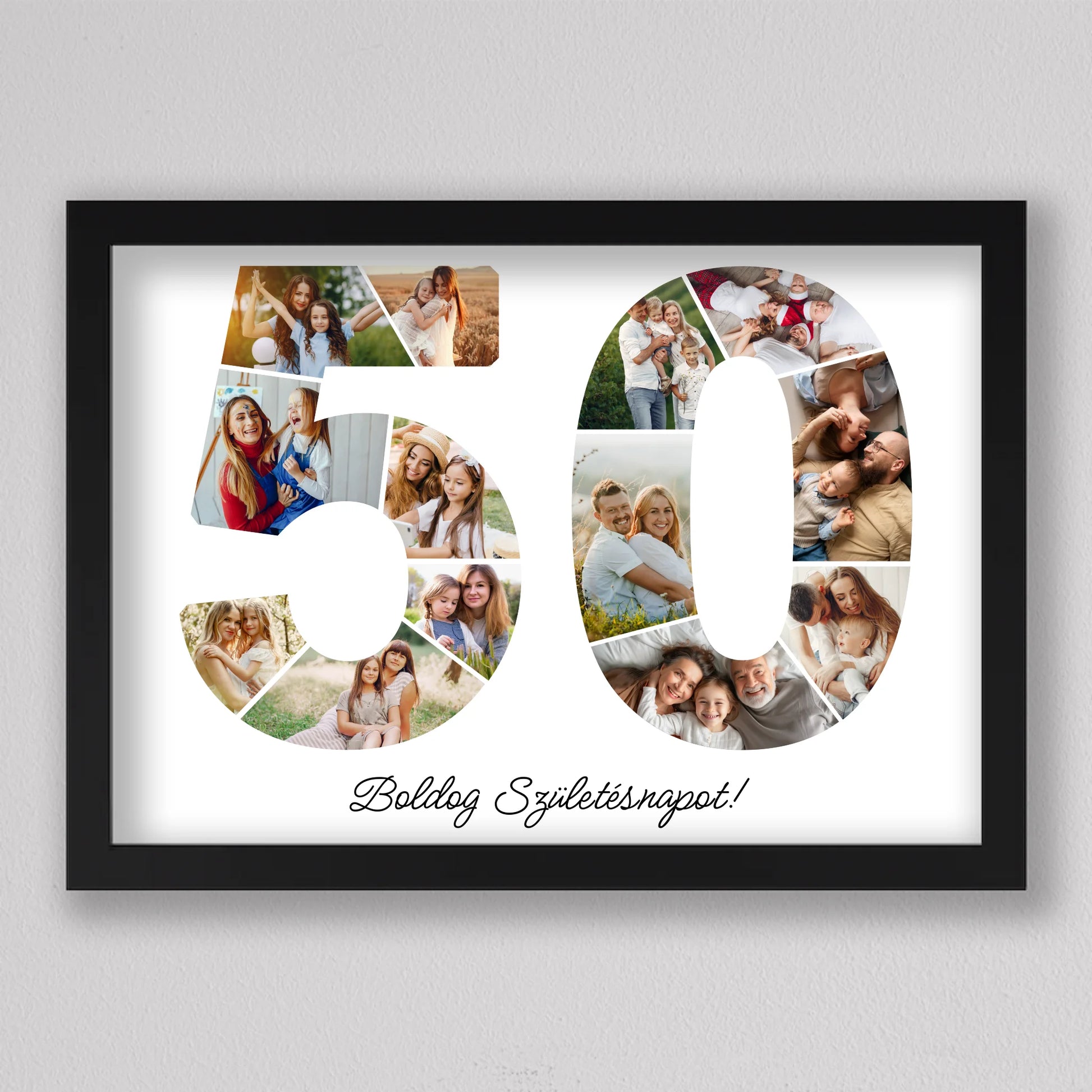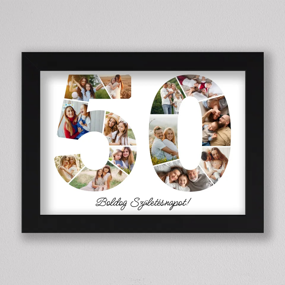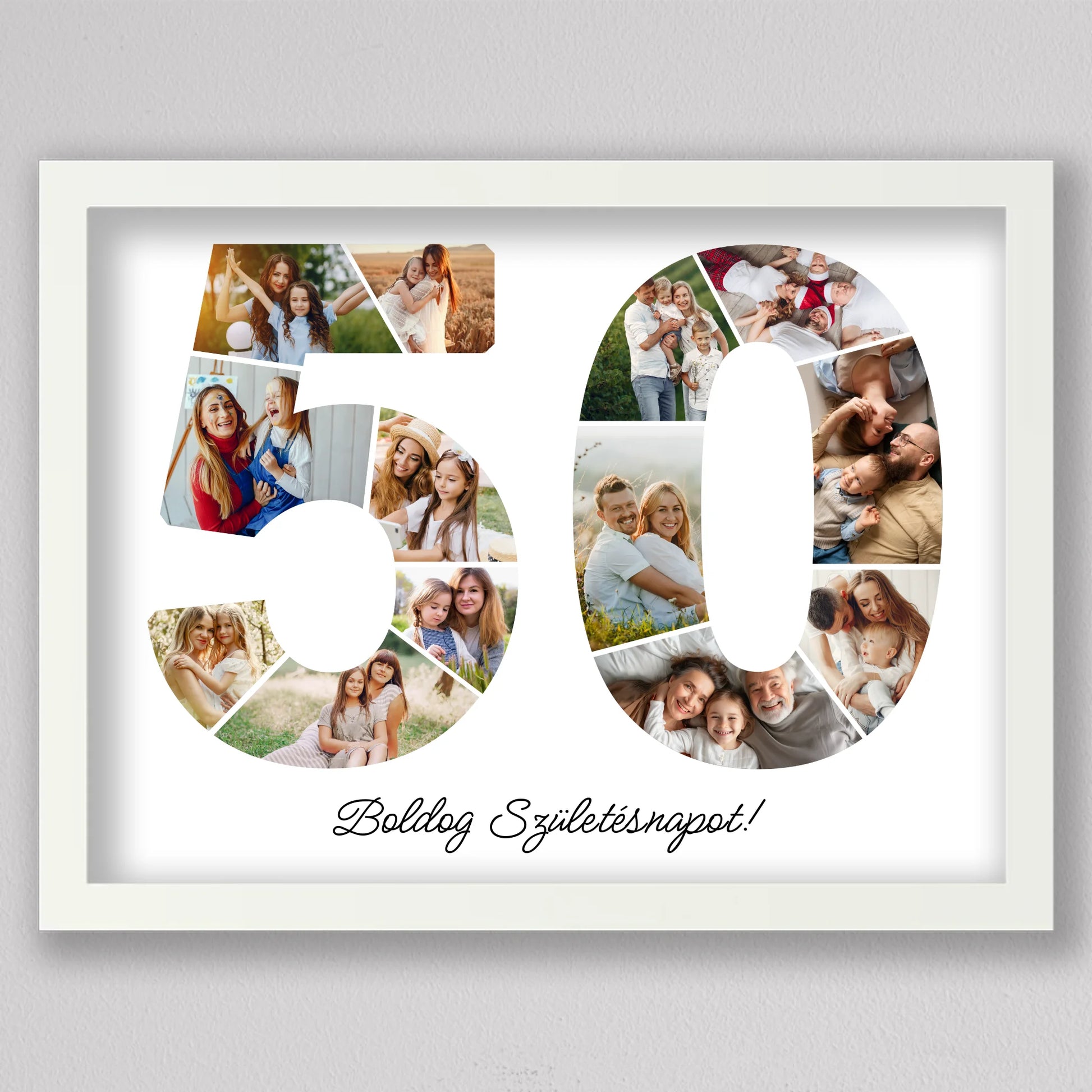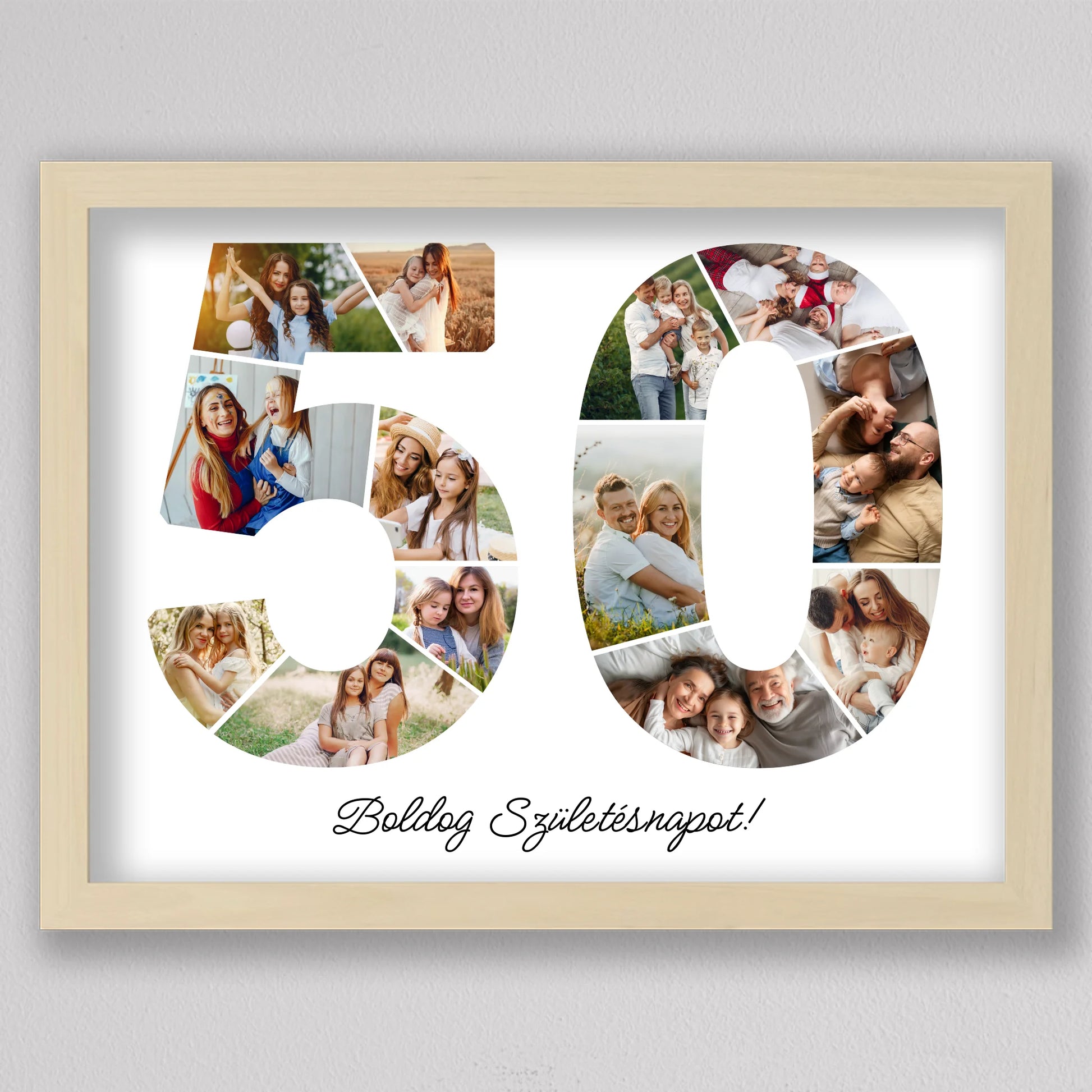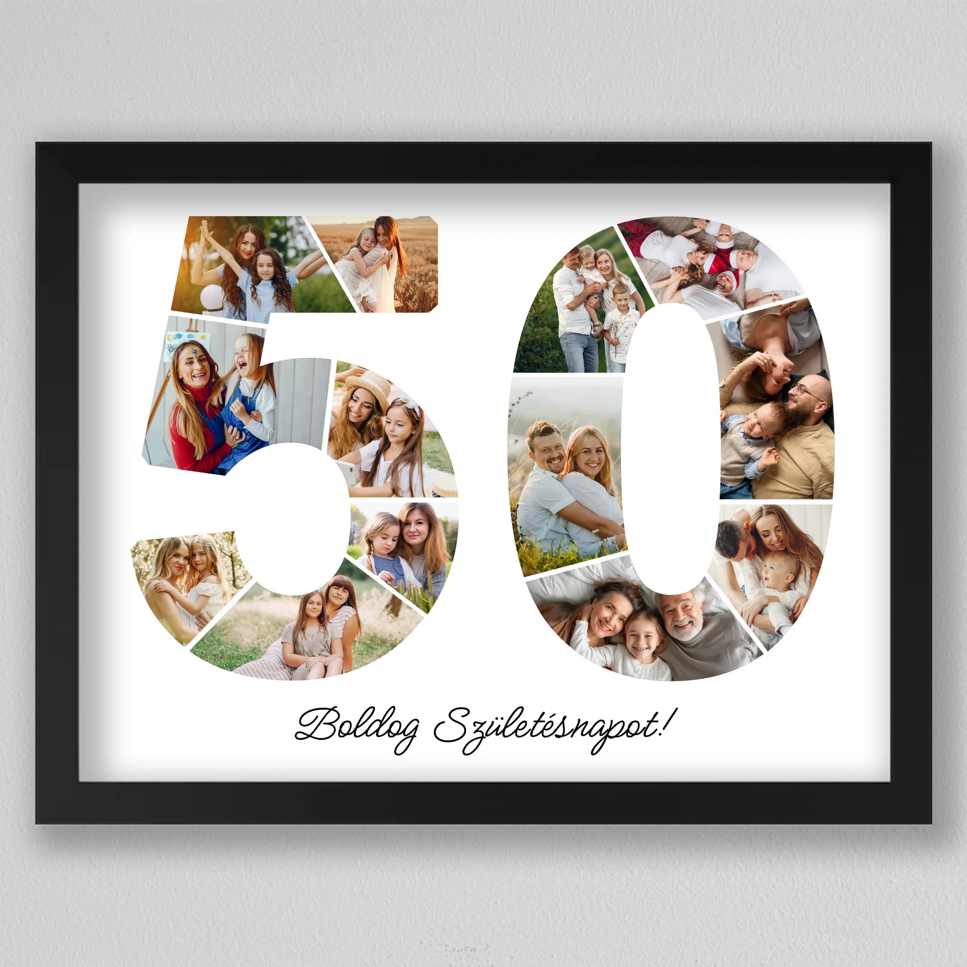 Egyedi számos fotó kollázs 50. születésnapra, évfordulóra