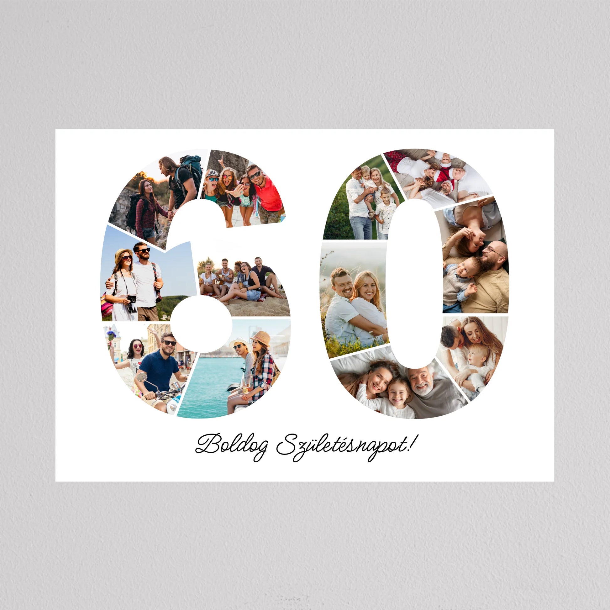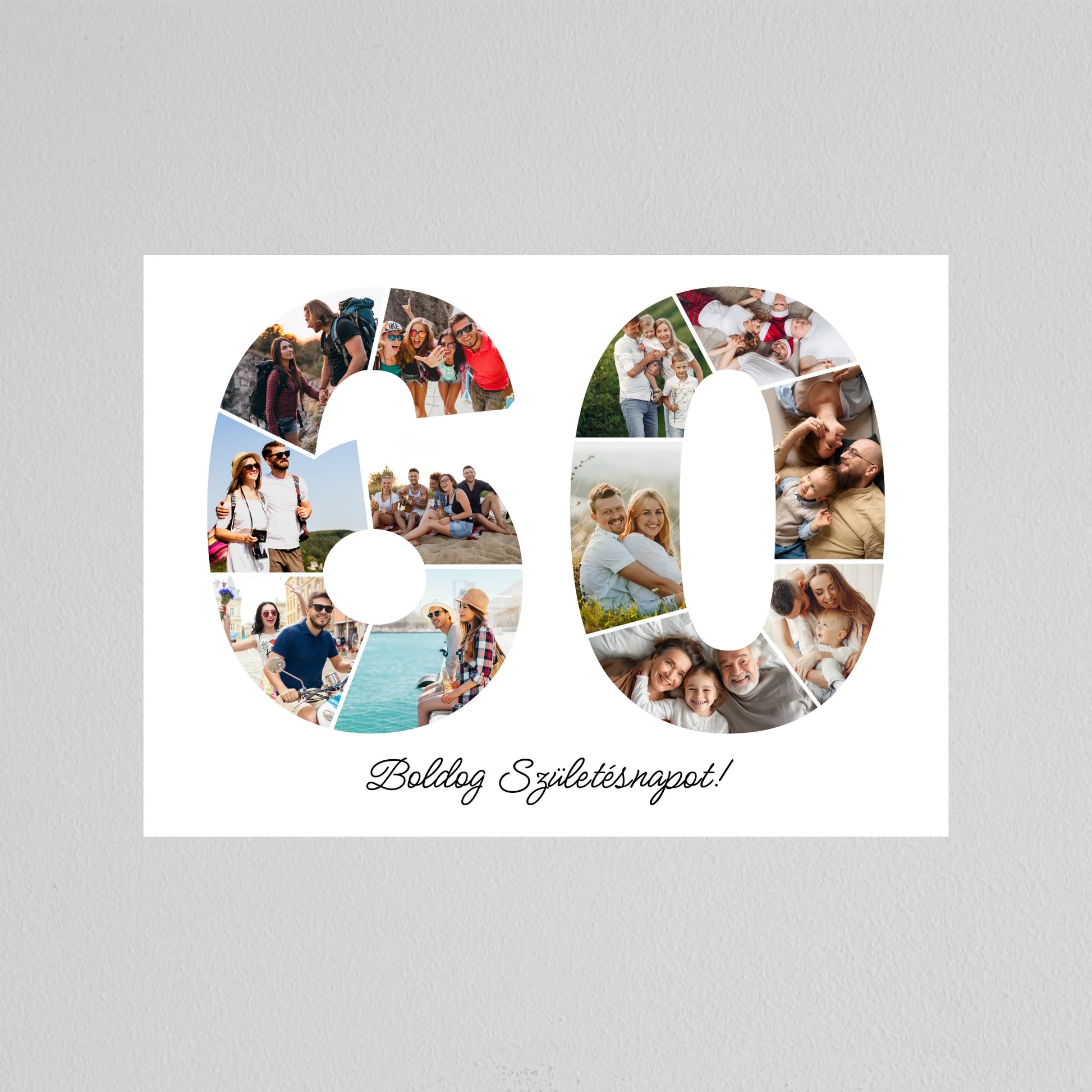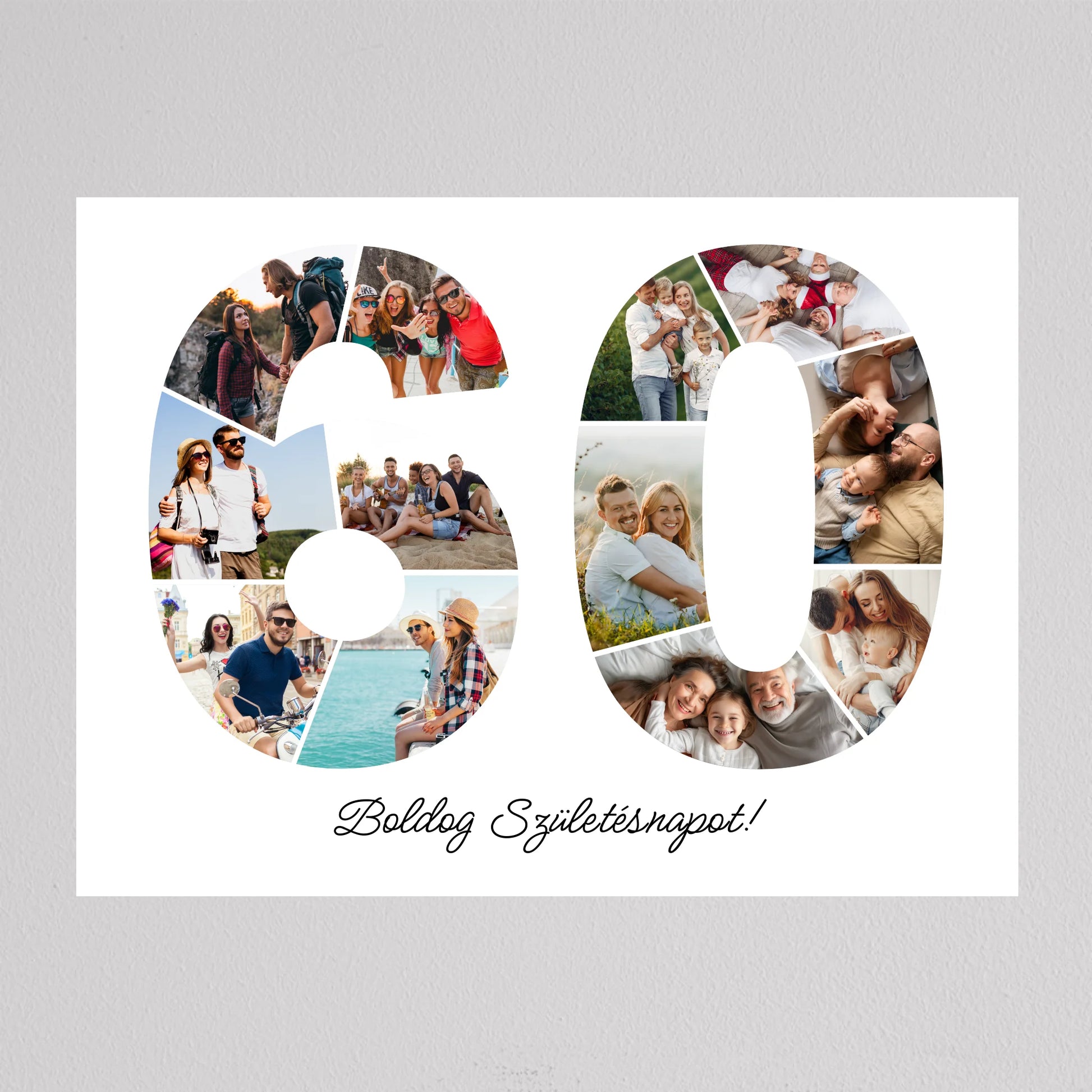 Egyedi számos fotó kollázs 60. születésnapra, évfordulóra