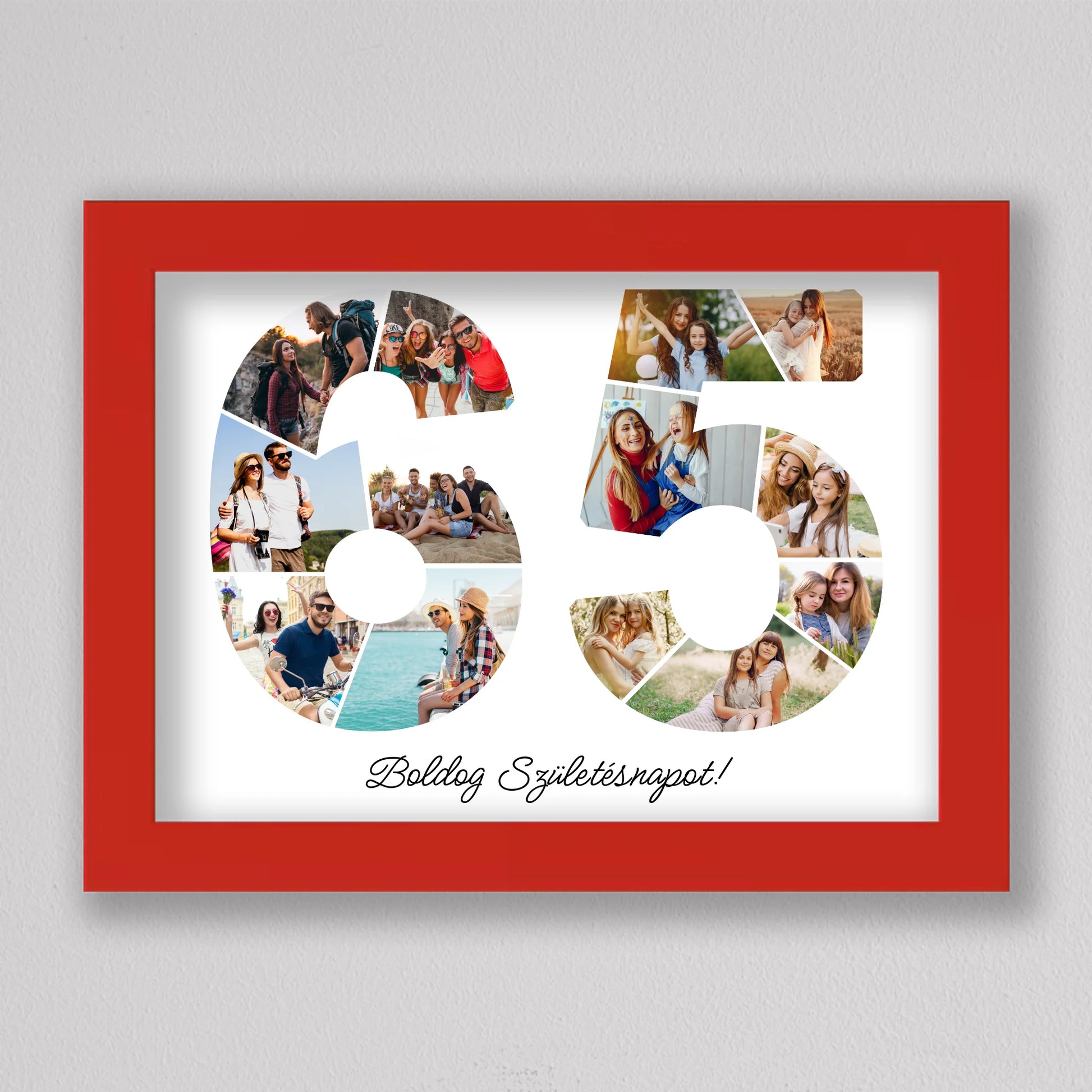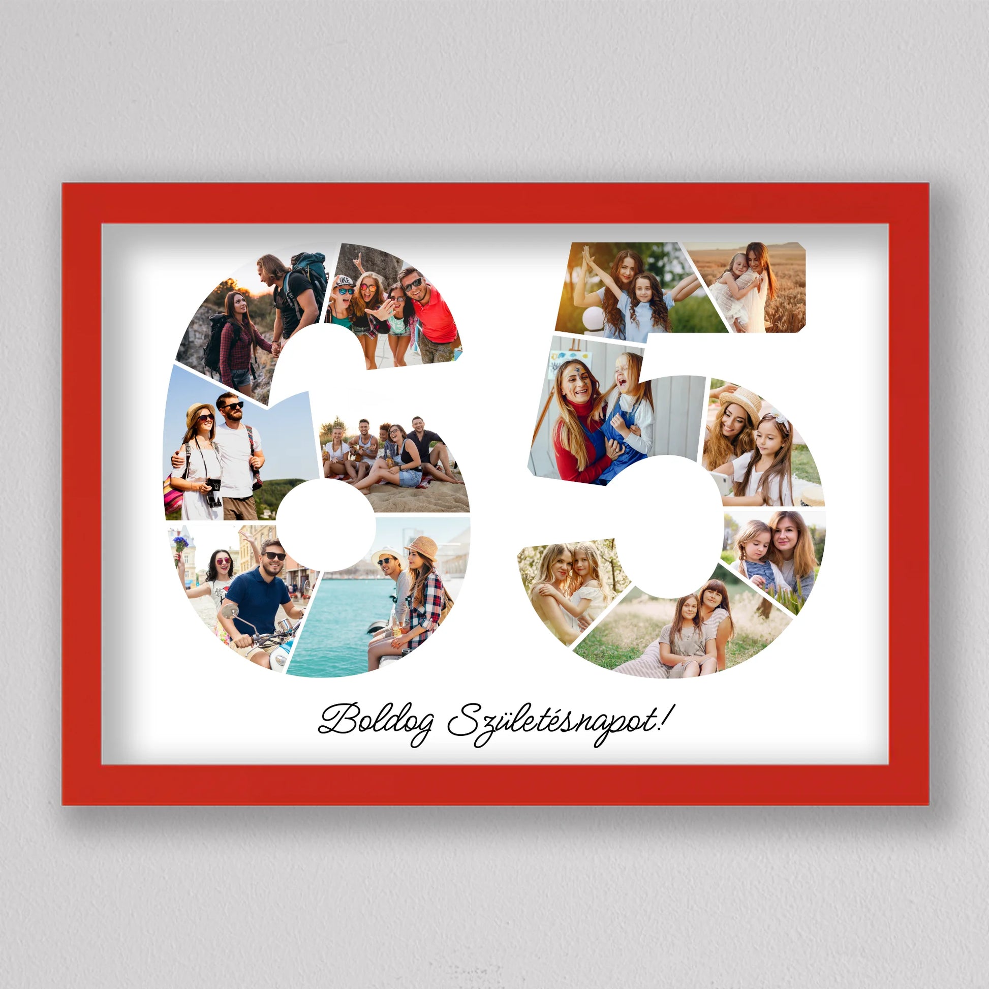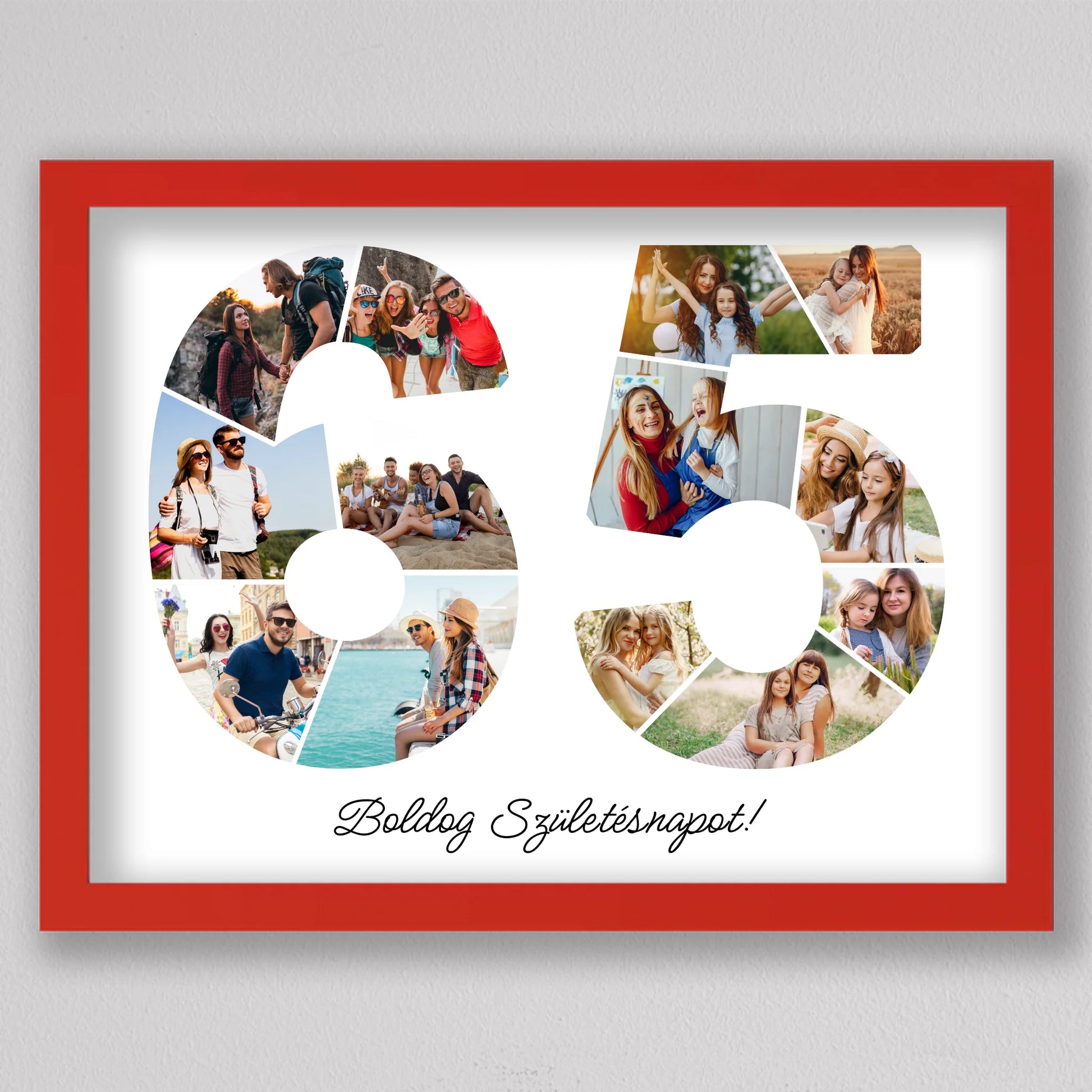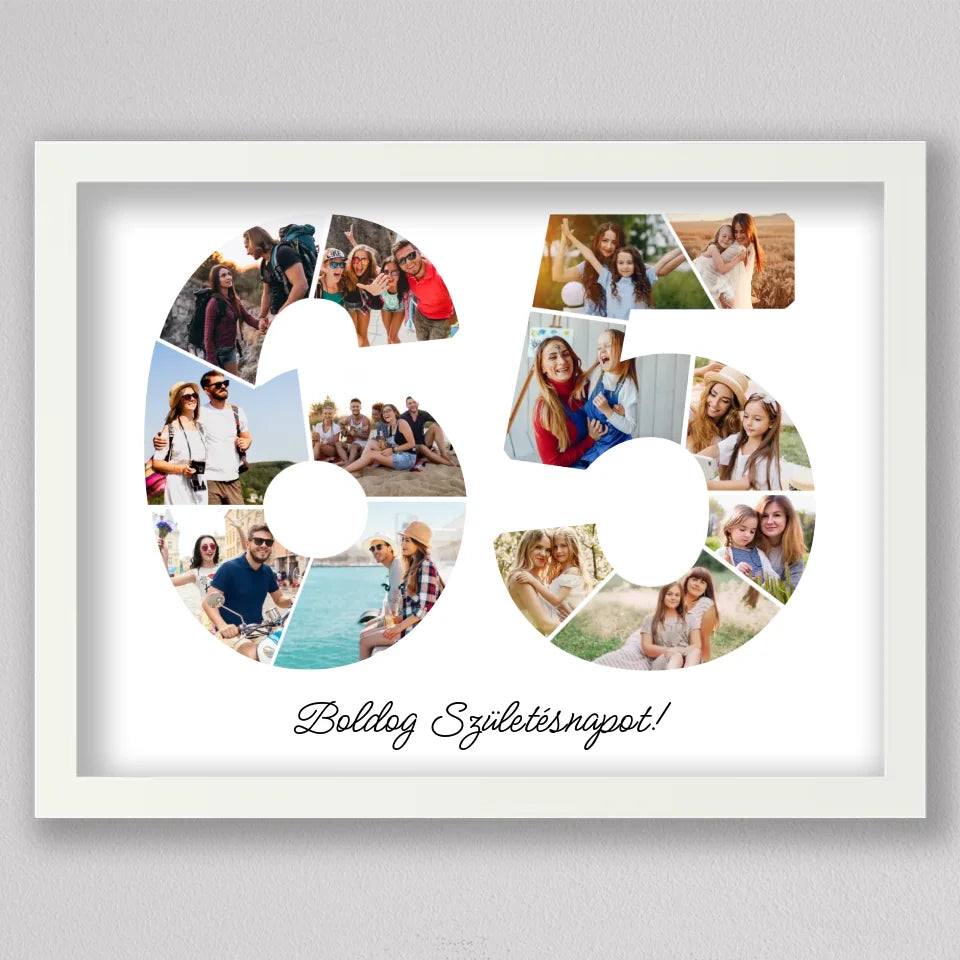 Az Egyedi számos fotókollázs 65. születésnapra vagy évfordulóra egy tökéletes és személyre szabott ajándék, amely igazán különlegessé teszi az ünnepet. A kollázs minden része testre szabható, az egyéni fotókból összeállított szám formátum segítségével megörökíthetők a legkedvesebb emlékek. Legyen szó családi eseményekről, baráti pillanatokról vagy egy egész élet emlékeiről, ez az egyedi ajándék érzelmi töltetet visz a falra. Különleges üzenet hozzáadásával még személyesebbé tehető, így az ajándék maradandó élmény marad. Tökéletes választás mindazoknak, akik különleges és érzelmes ajándékot keresnek.