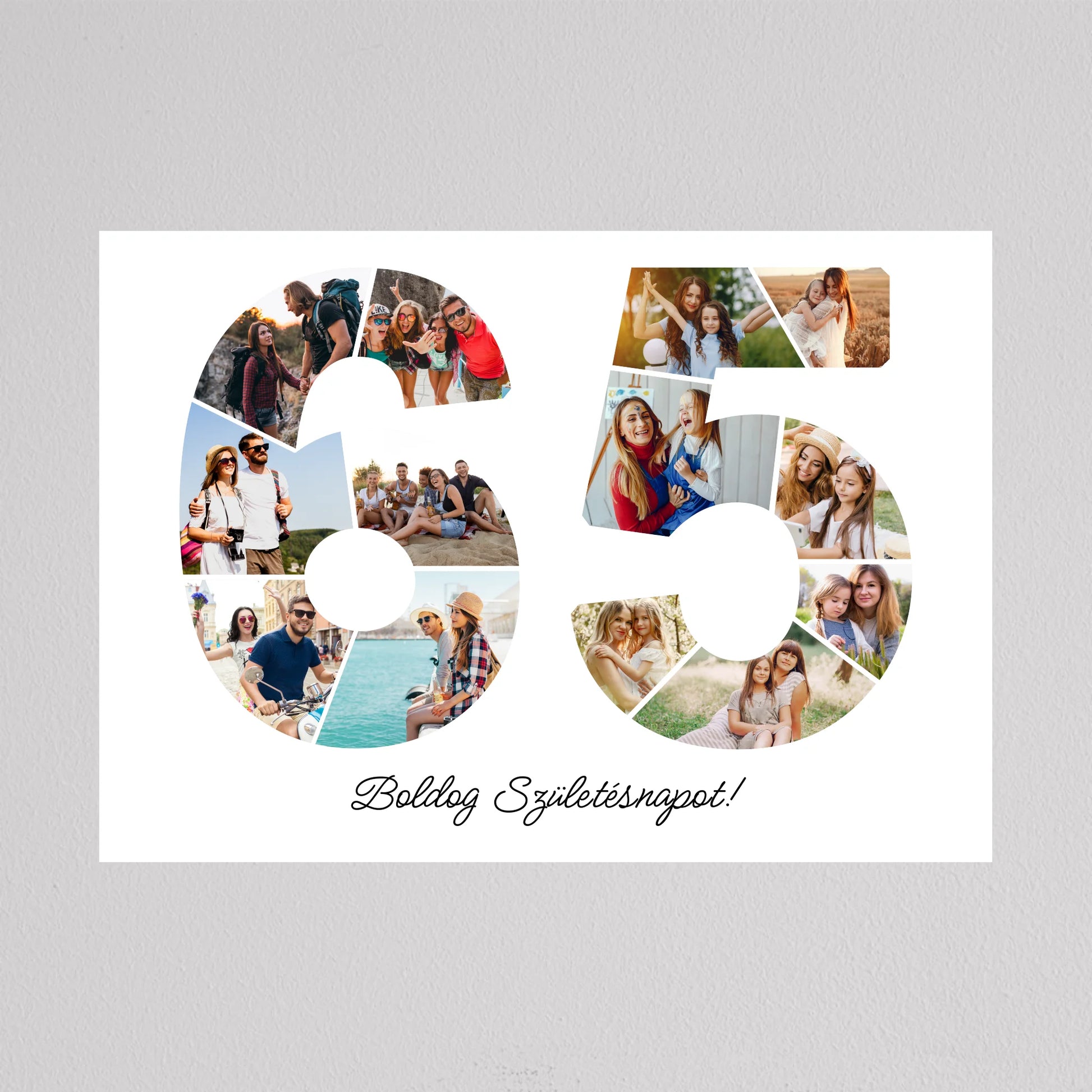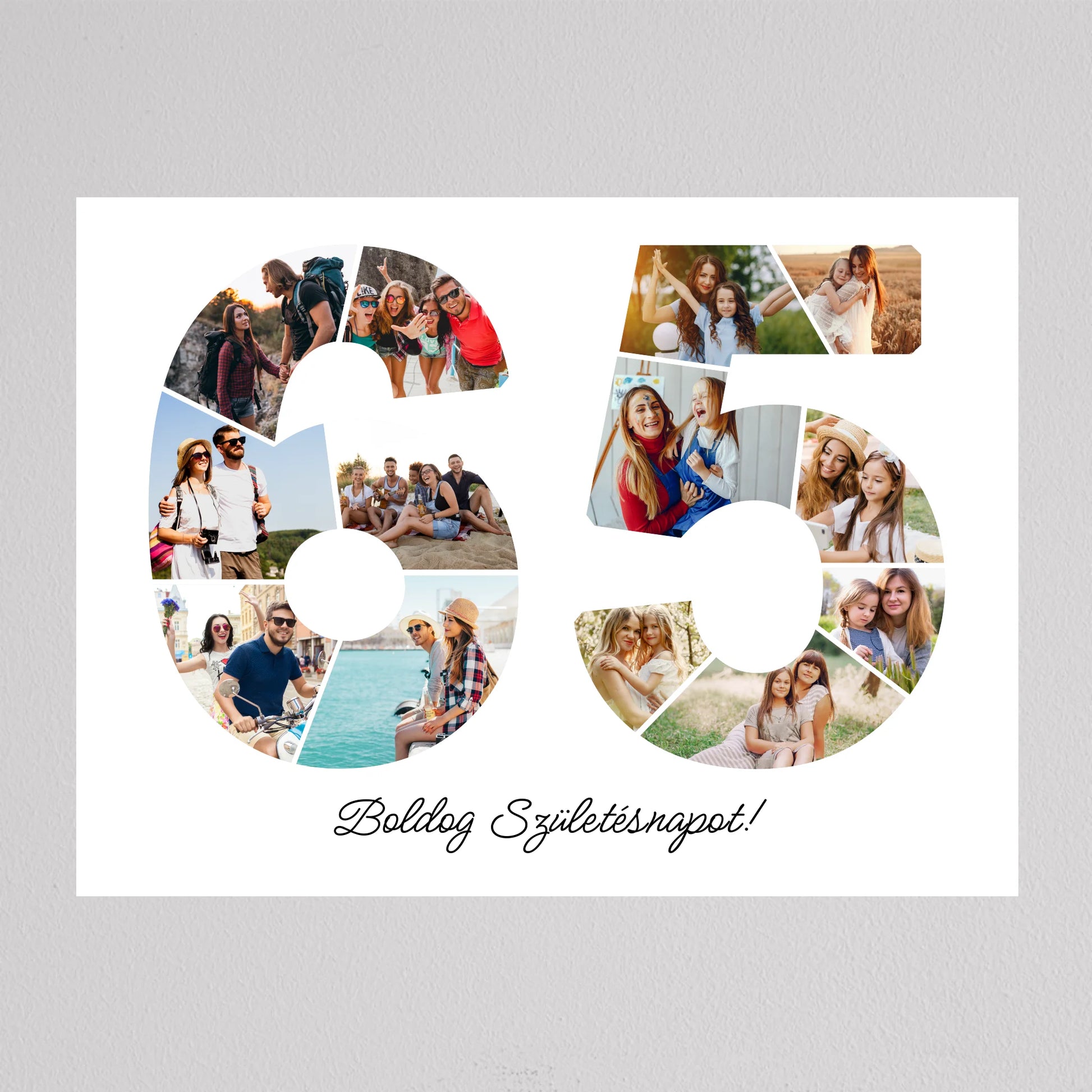 Egyedi számos fotó kollázs 65. születésnapra, évfordulóra