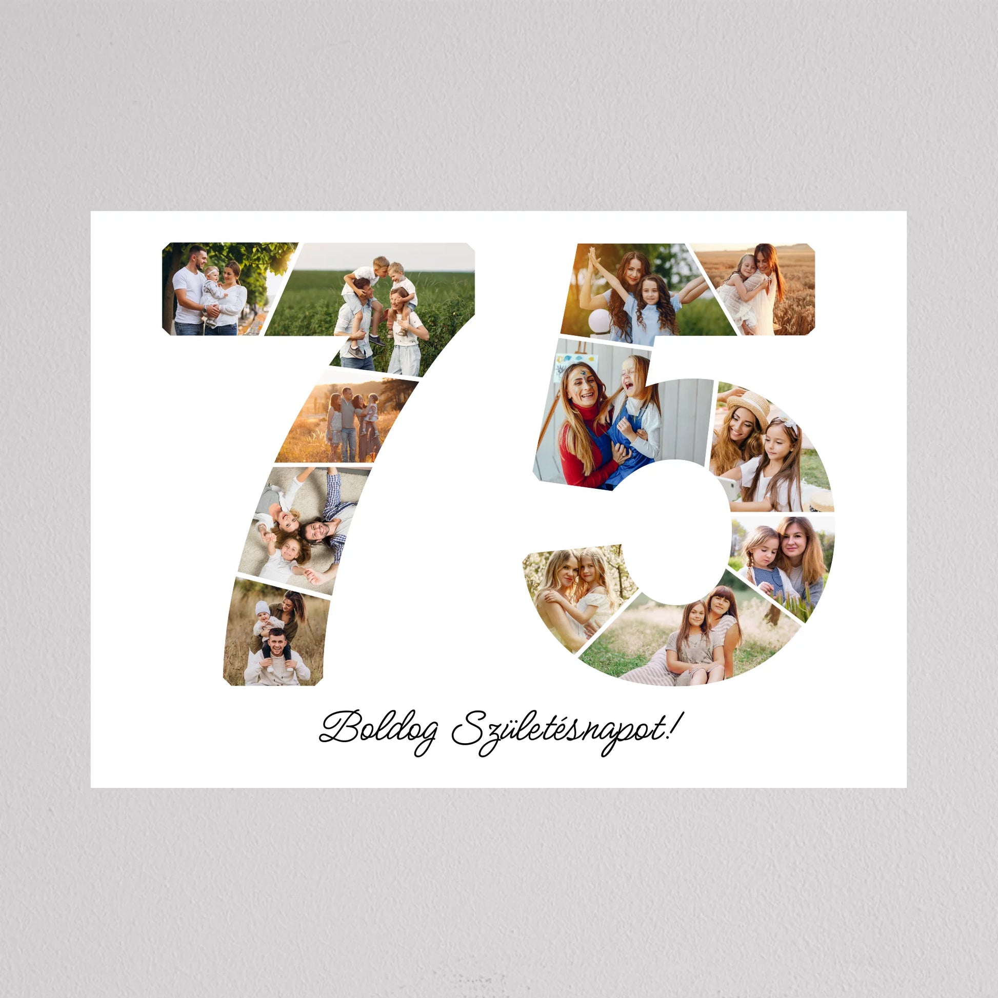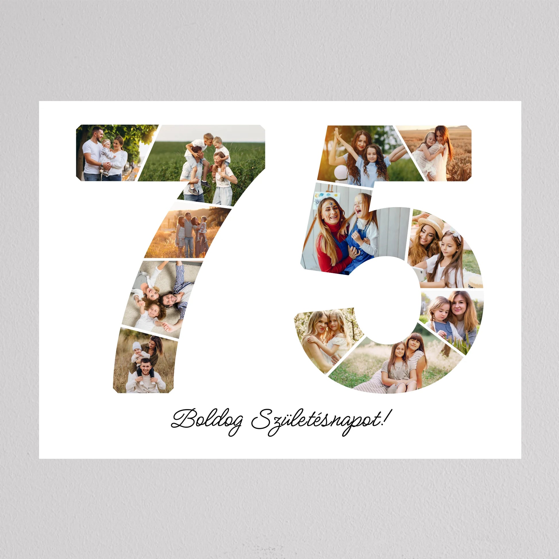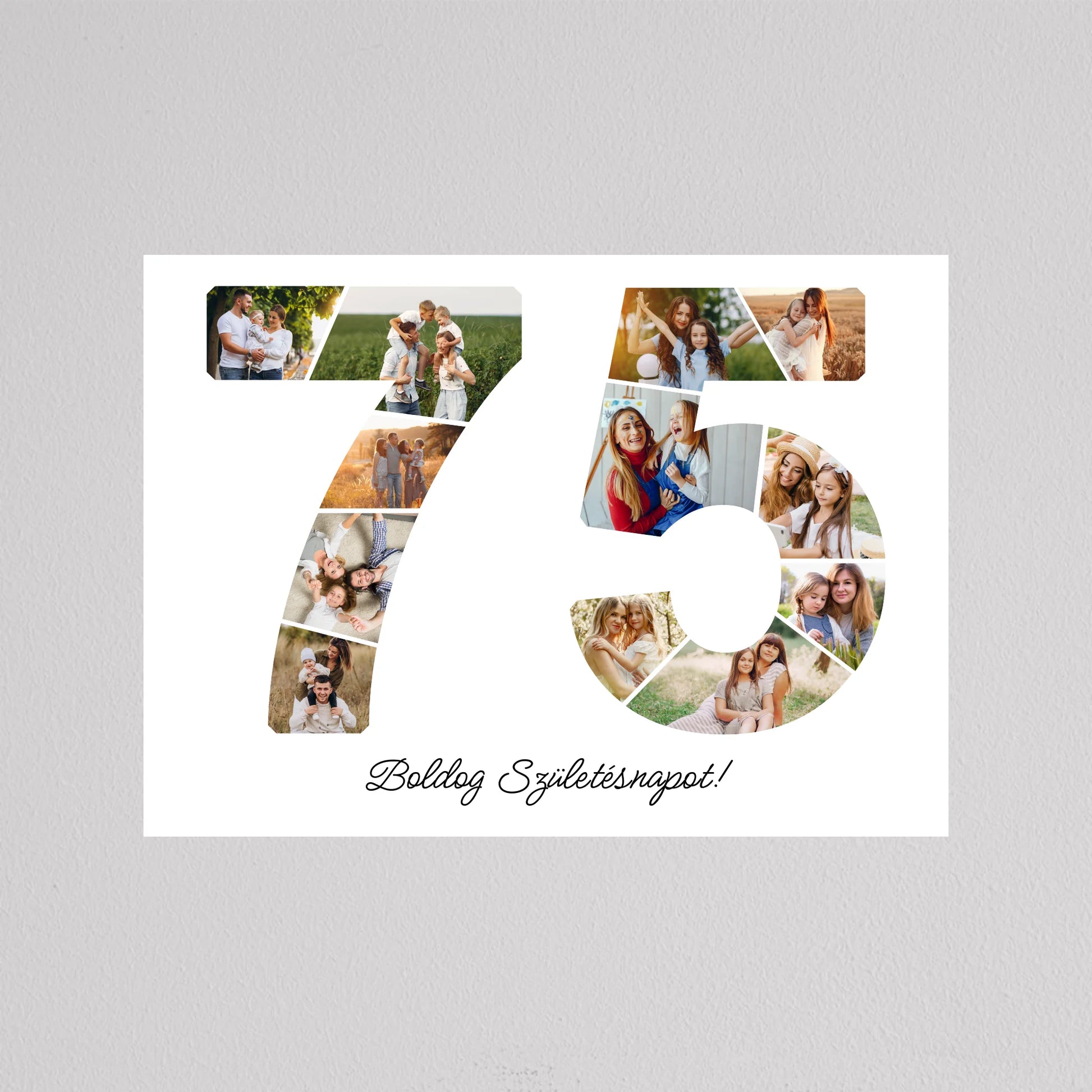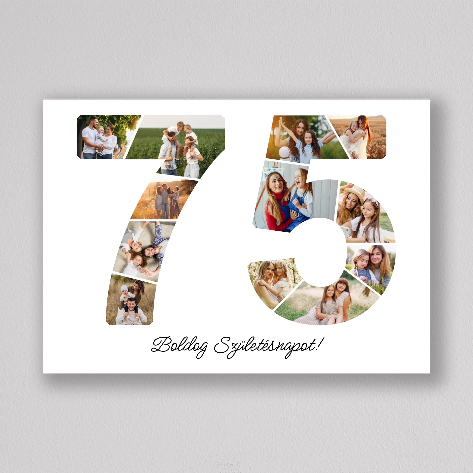 Egyedi számos fotó kollázs 75. születésnapra, évfordulóra