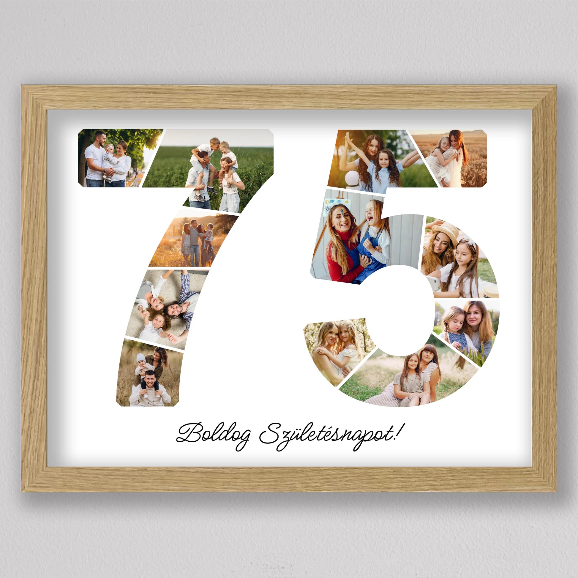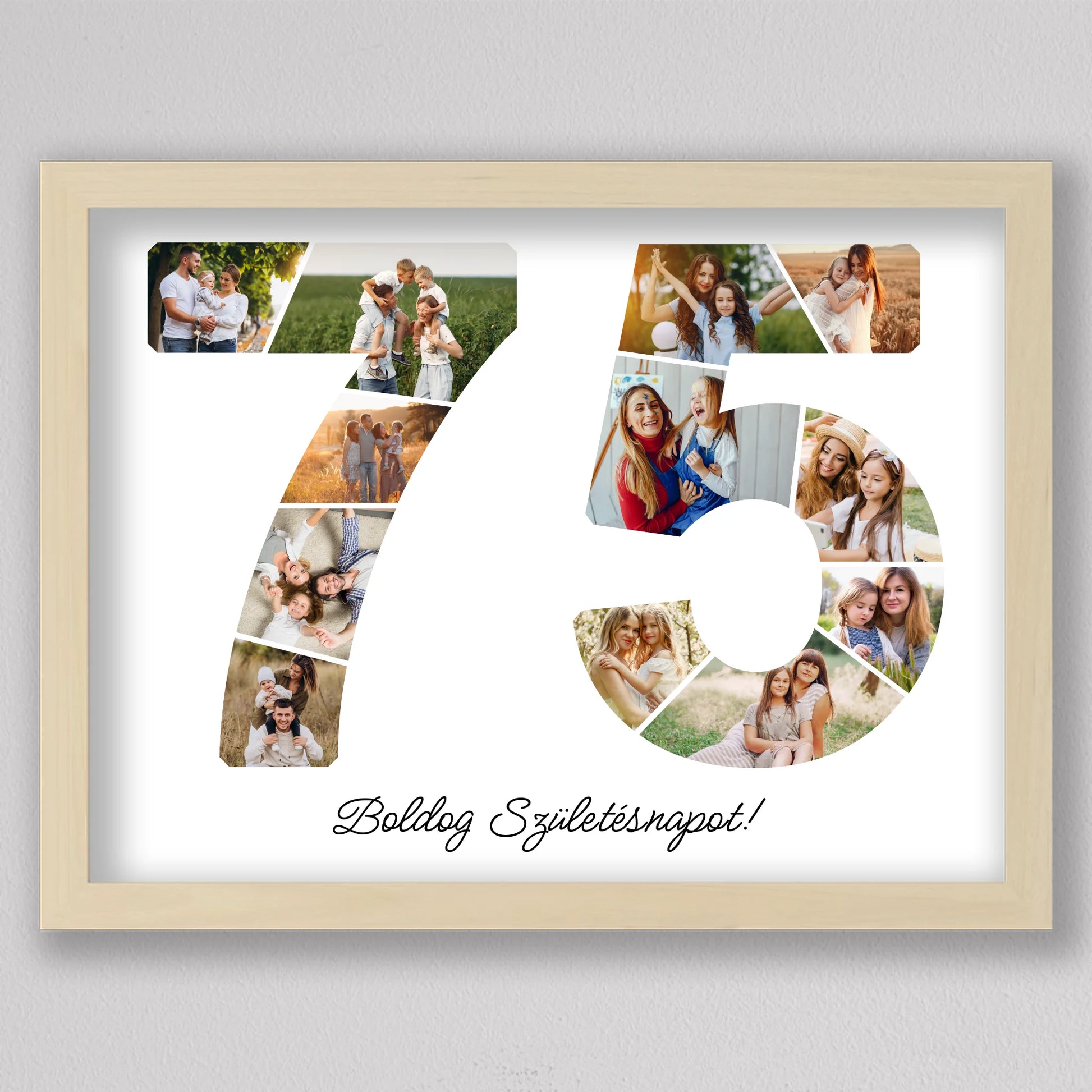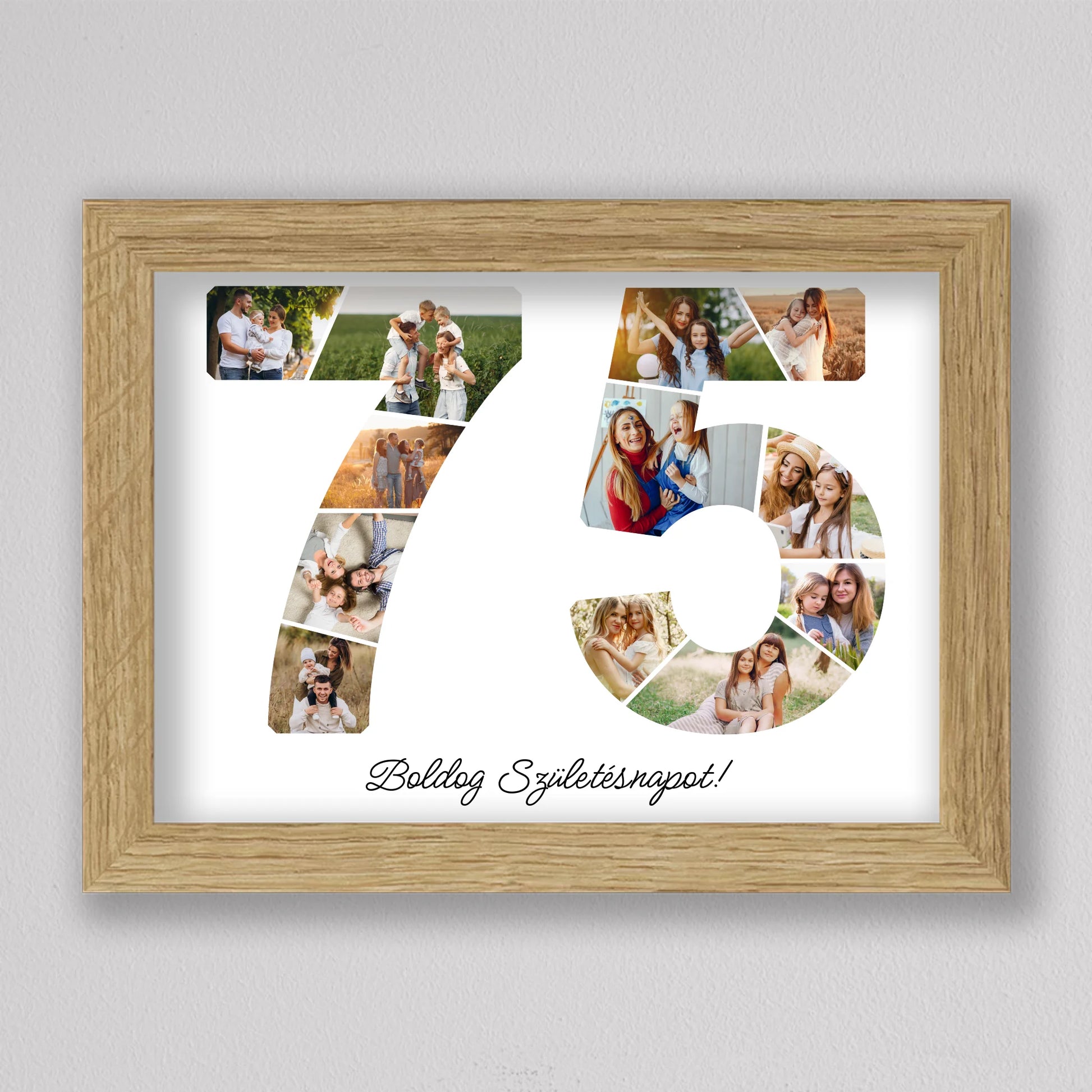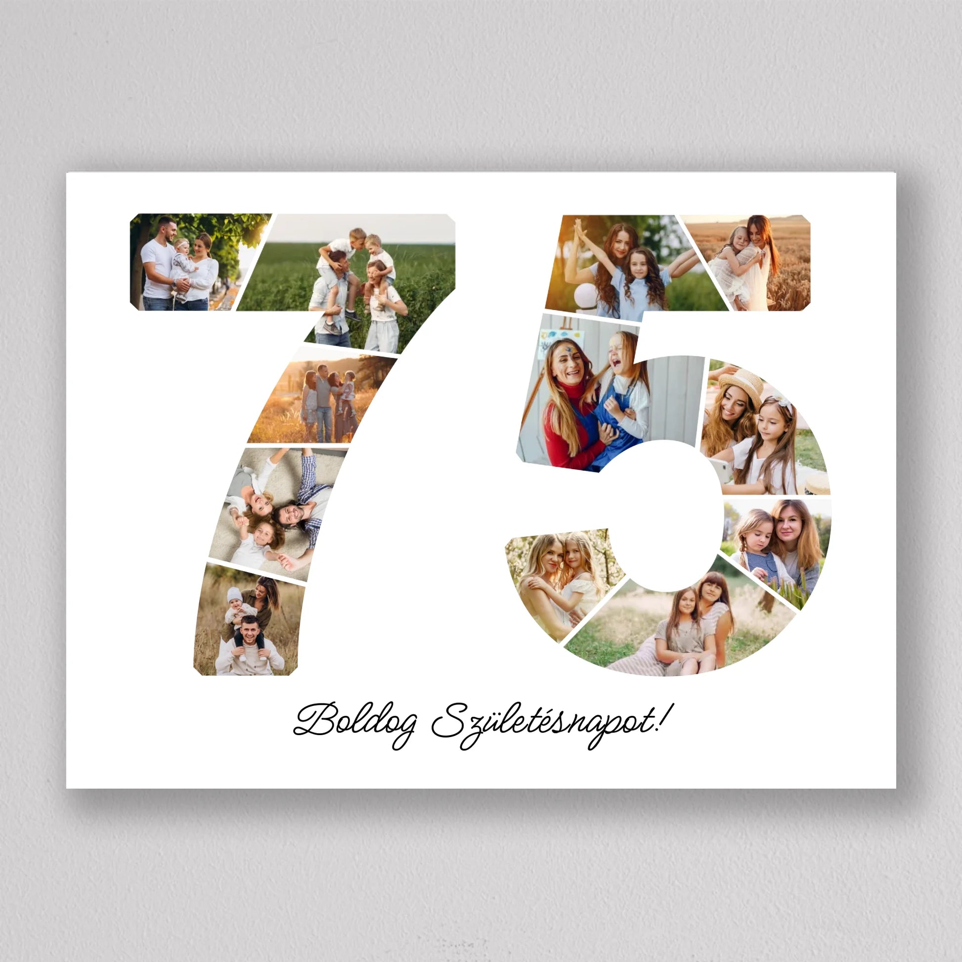 Egyedi számos fotó kollázs 75. születésnapra, évfordulóra