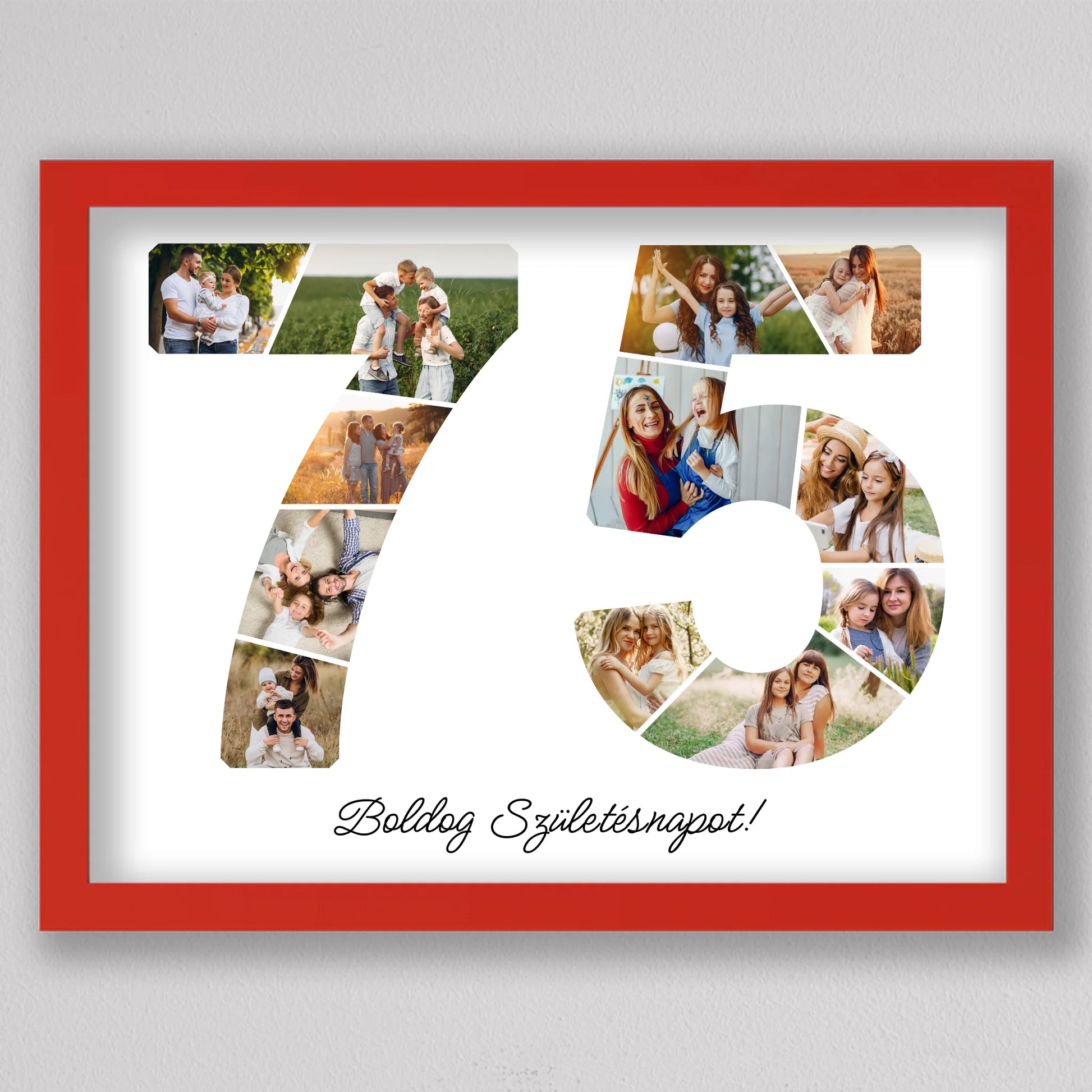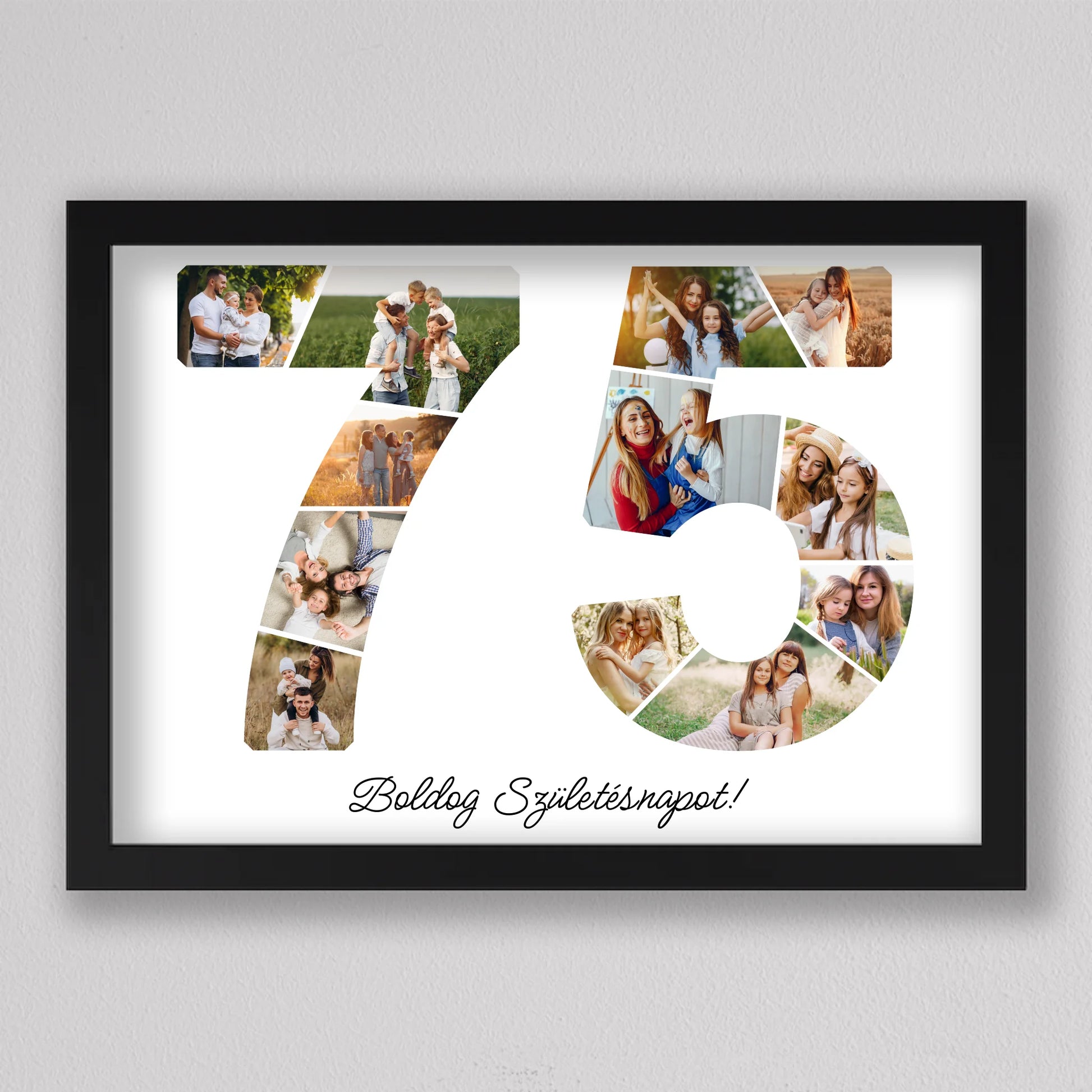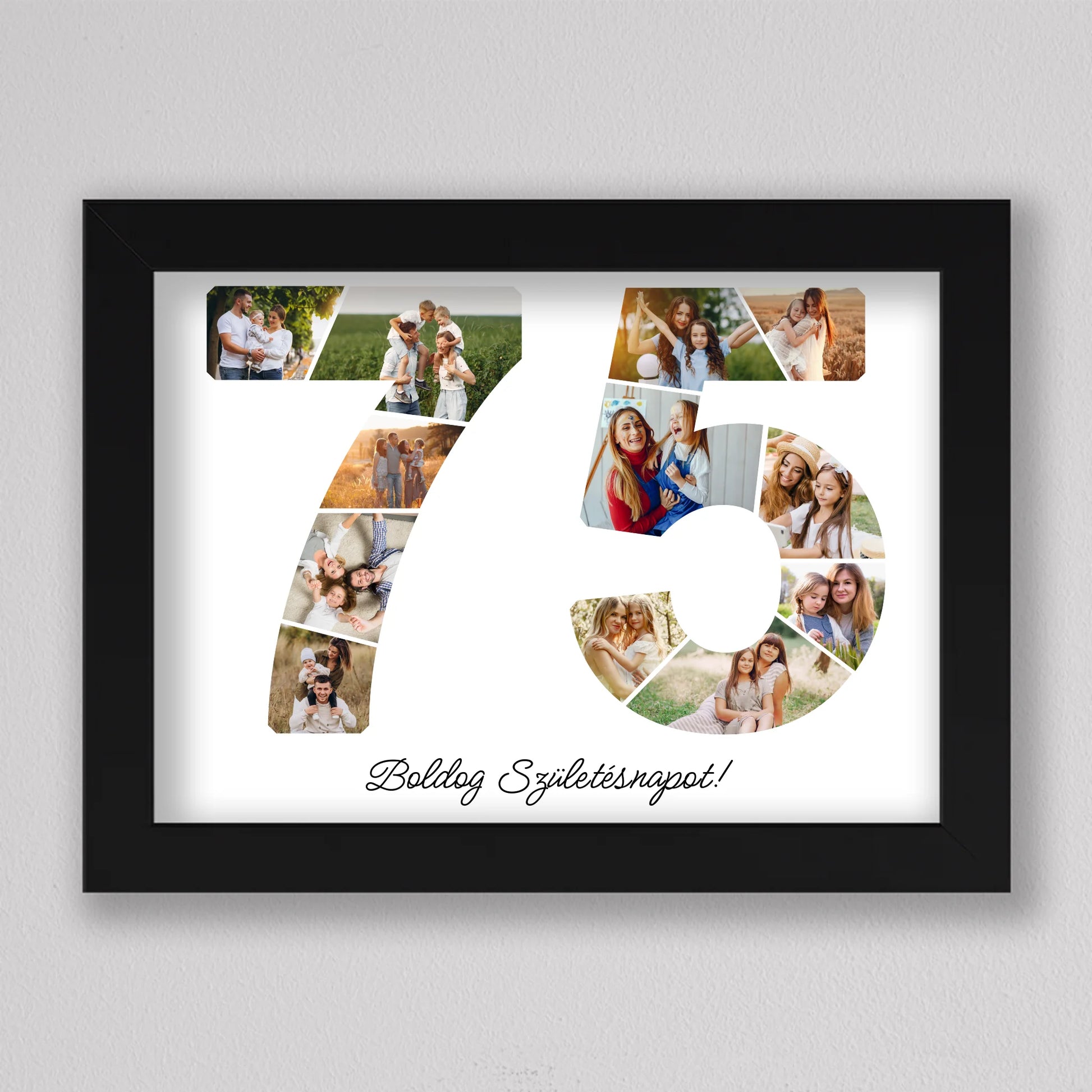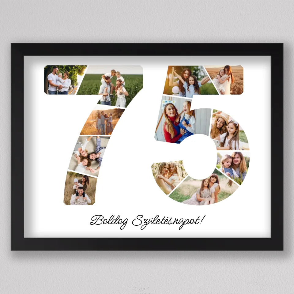 Egyedi számos fotó kollázs 75. születésnapra, évfordulóra