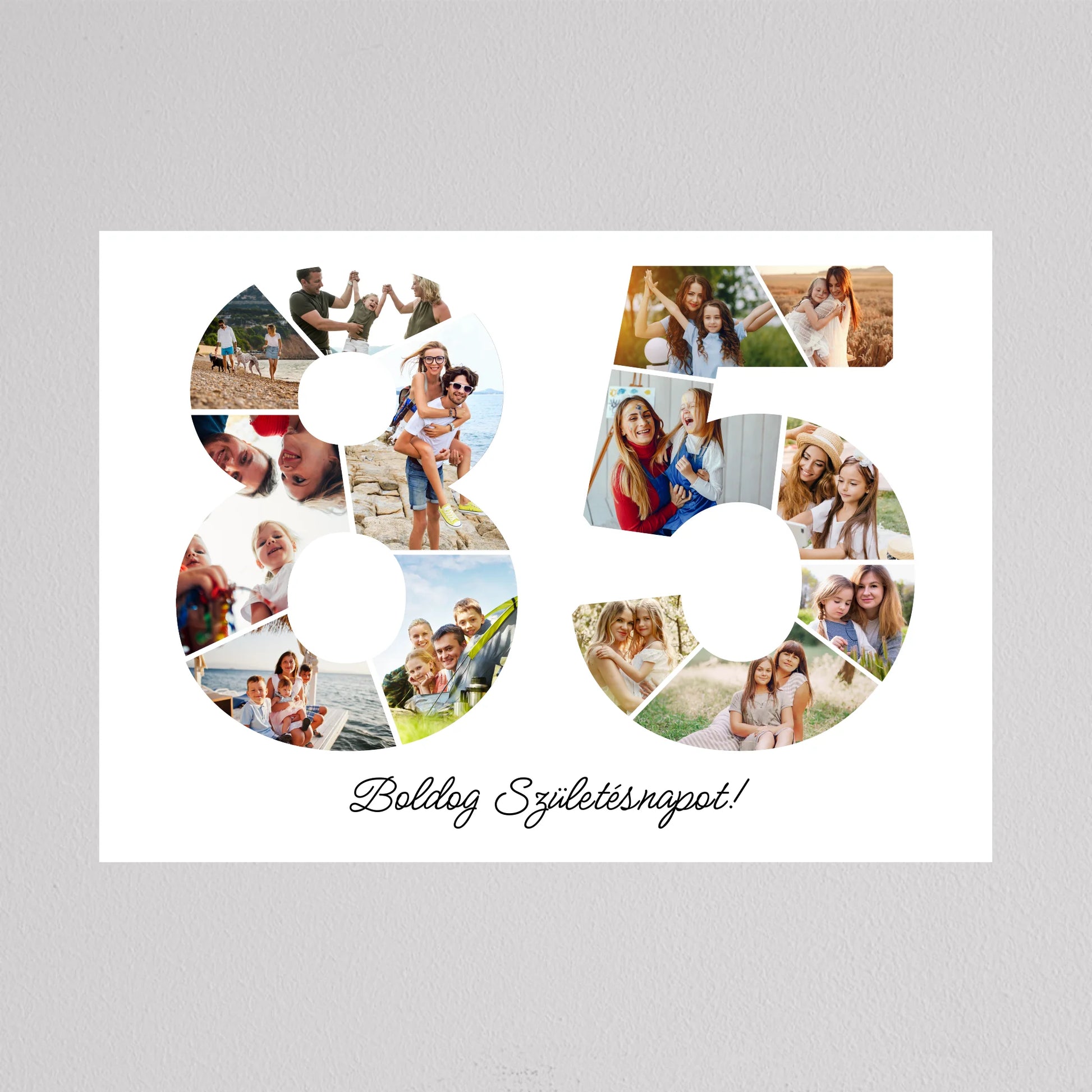 Egyedi számos fotó kollázs 85. születésnapra, évfordulóra