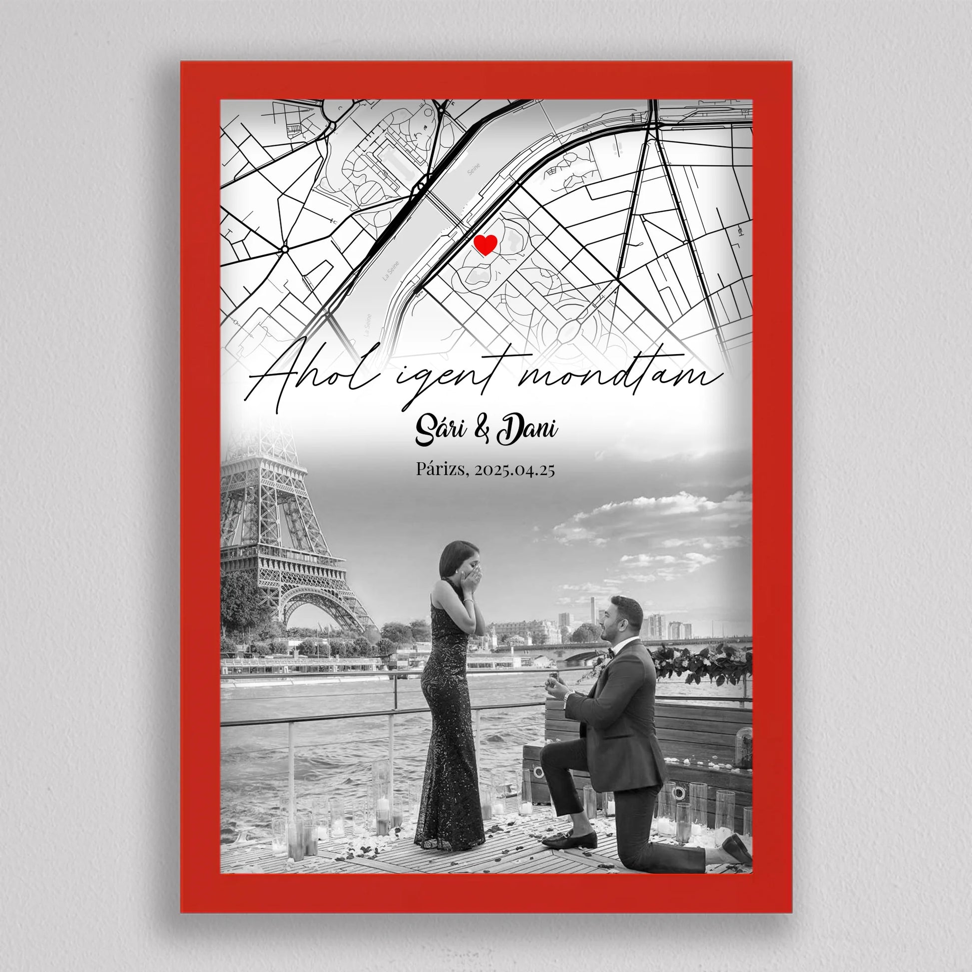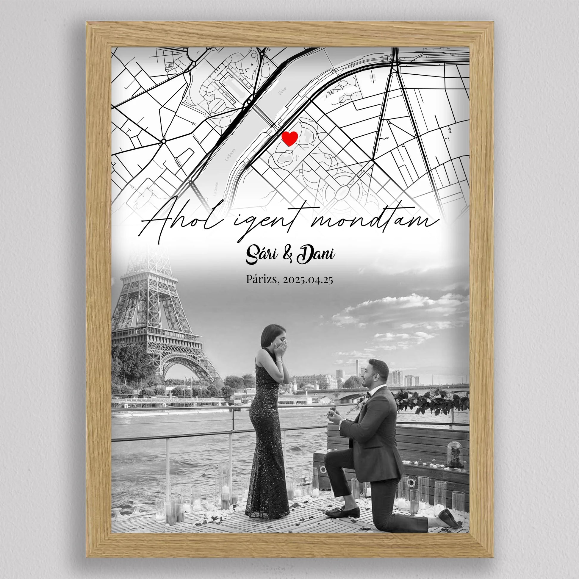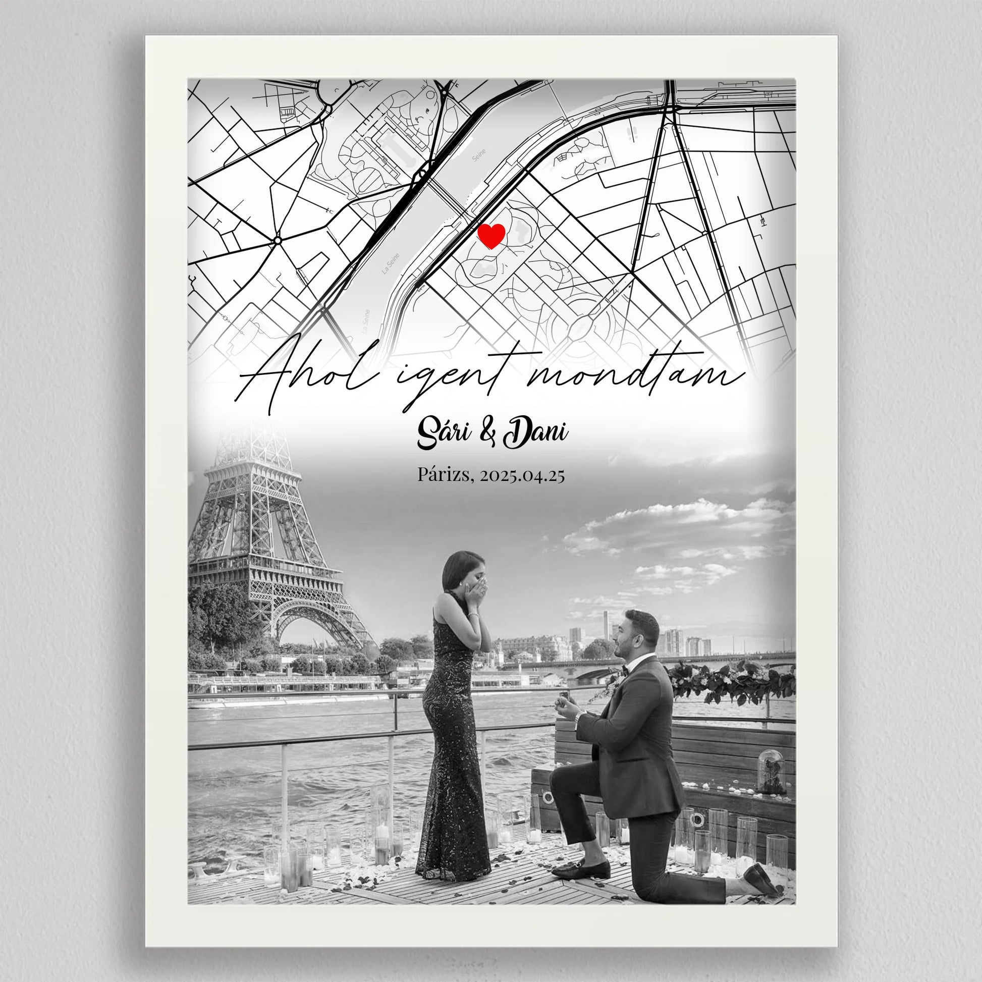 Eljegyzésünk története – Személyre Szabható Térképes Poszter