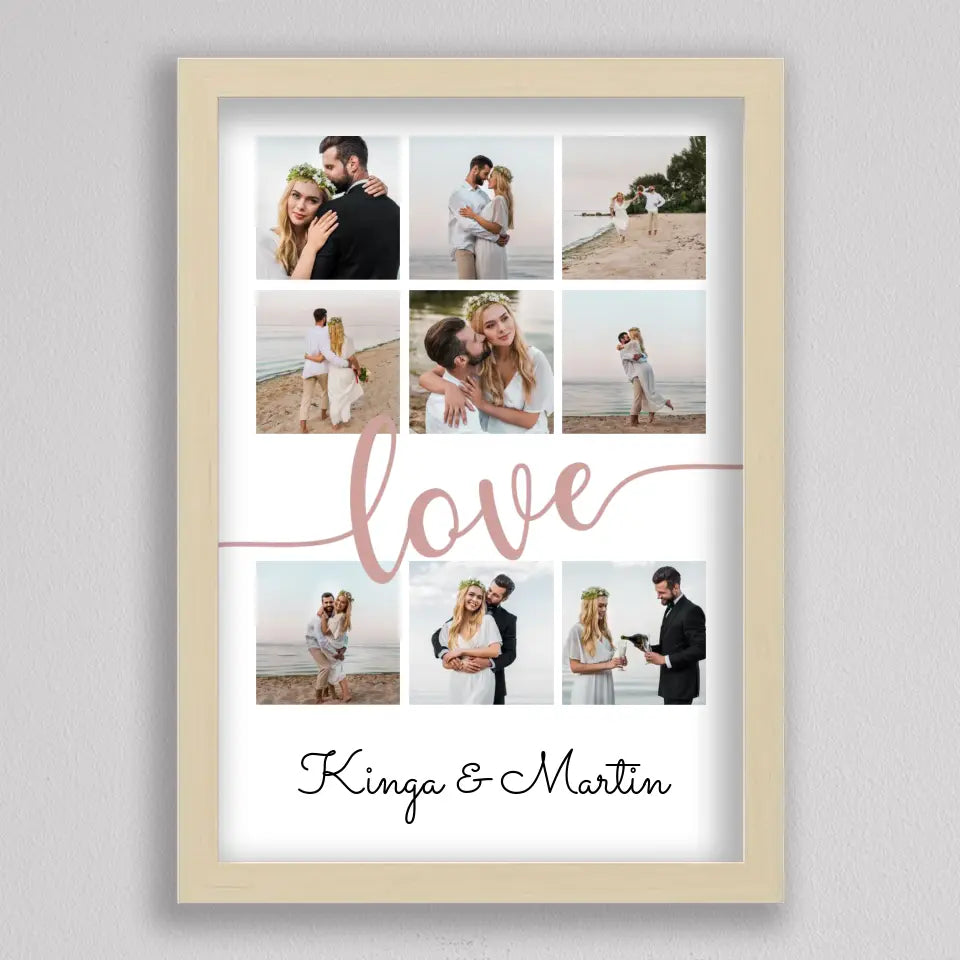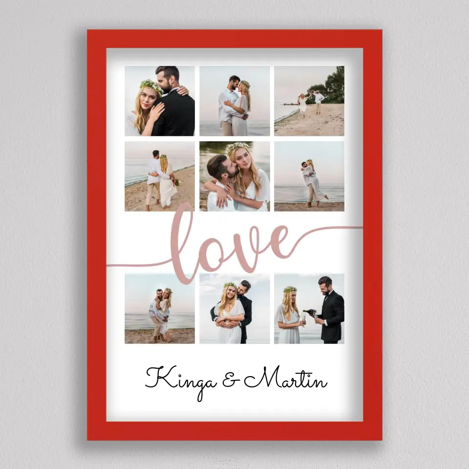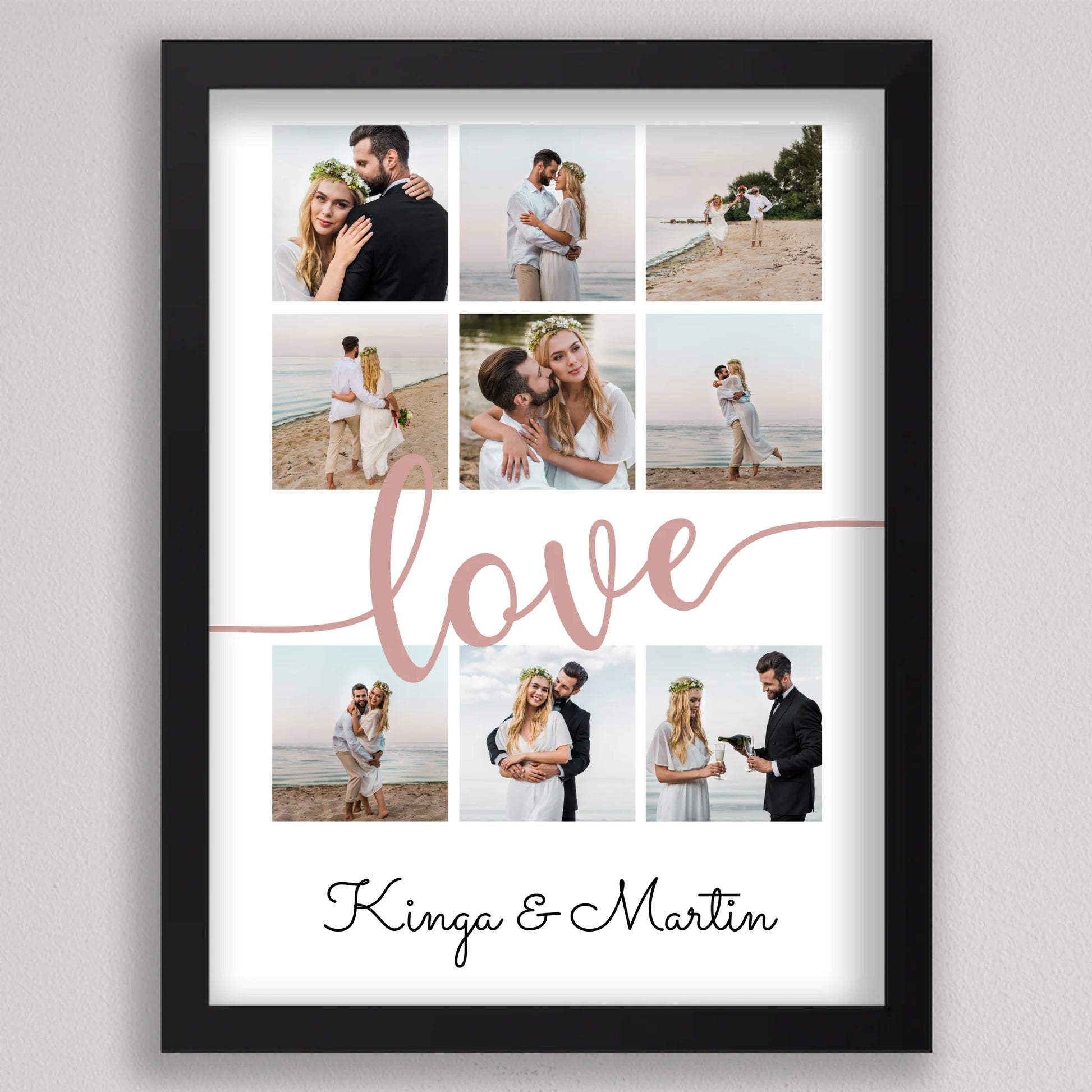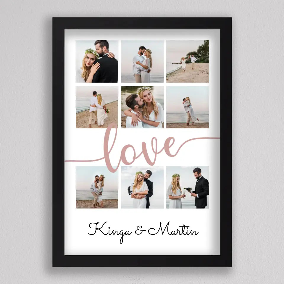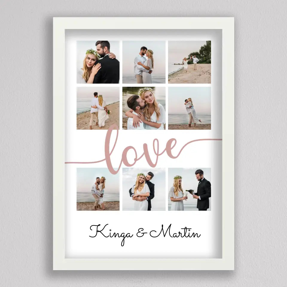 Szerelmünk pillanatai fotó kollázs love felirattal