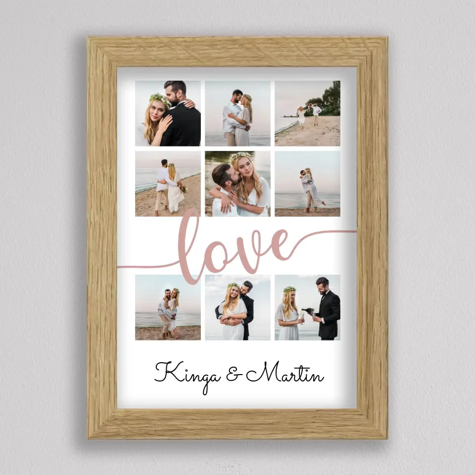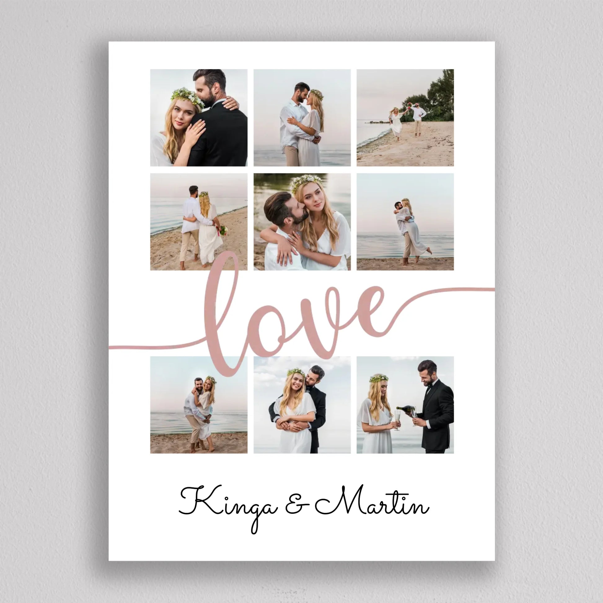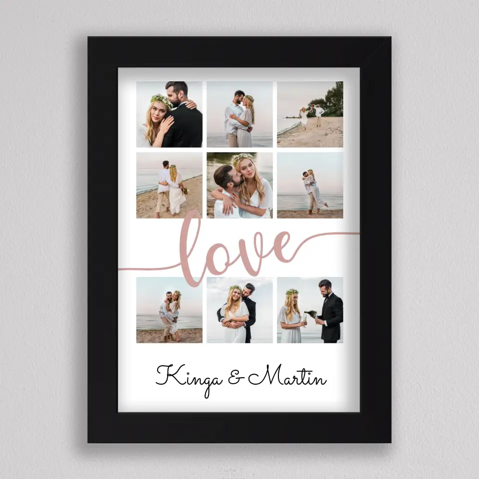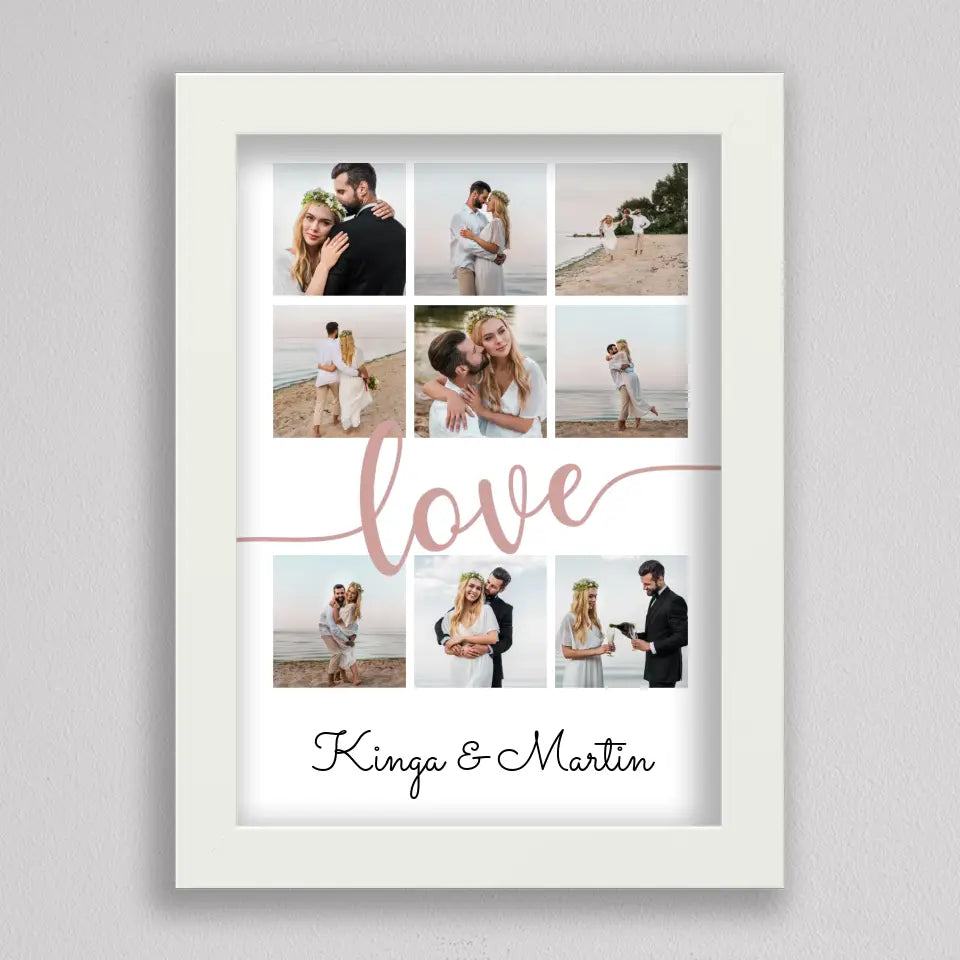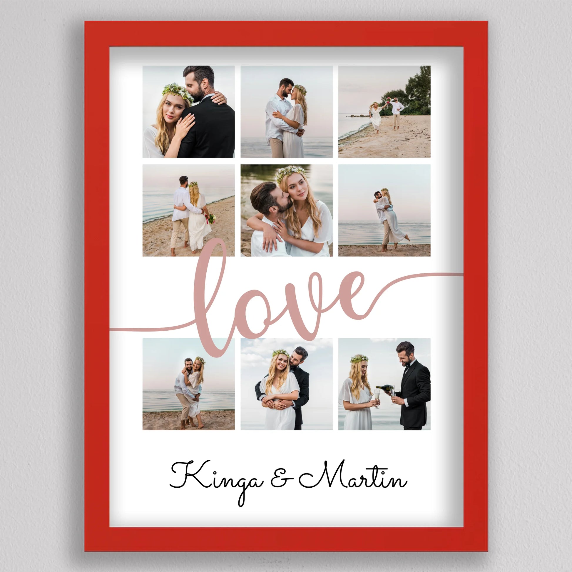 Szerelmünk pillanatai fotó kollázs love felirattal