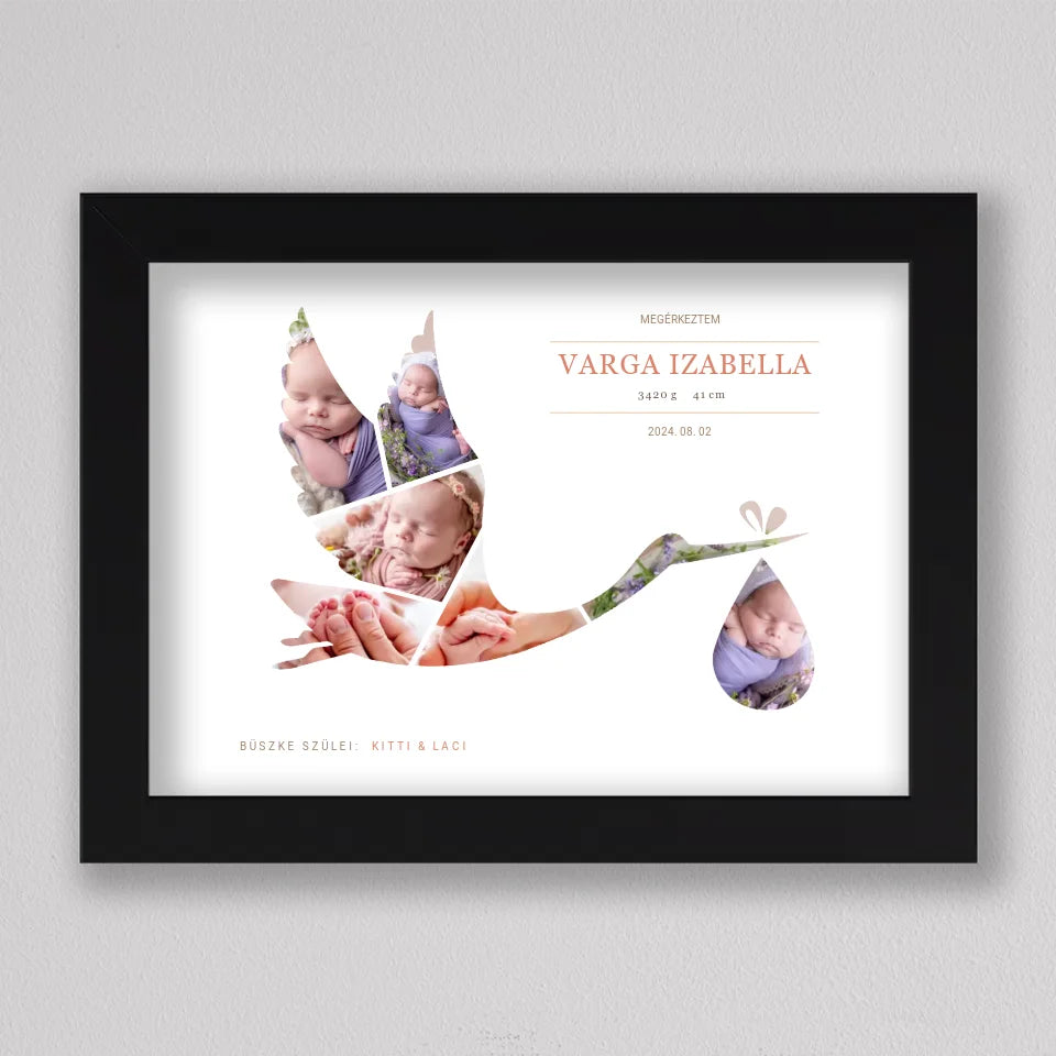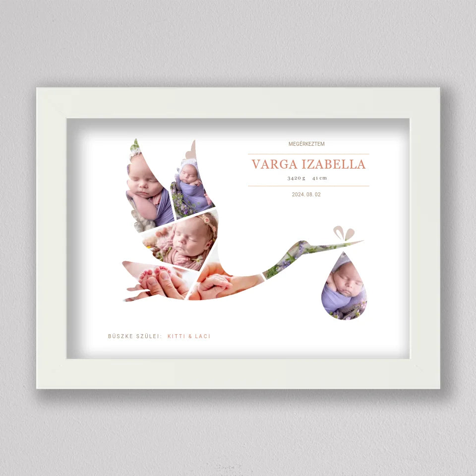 Gólya alakú babaköszöntő fotó kollázs