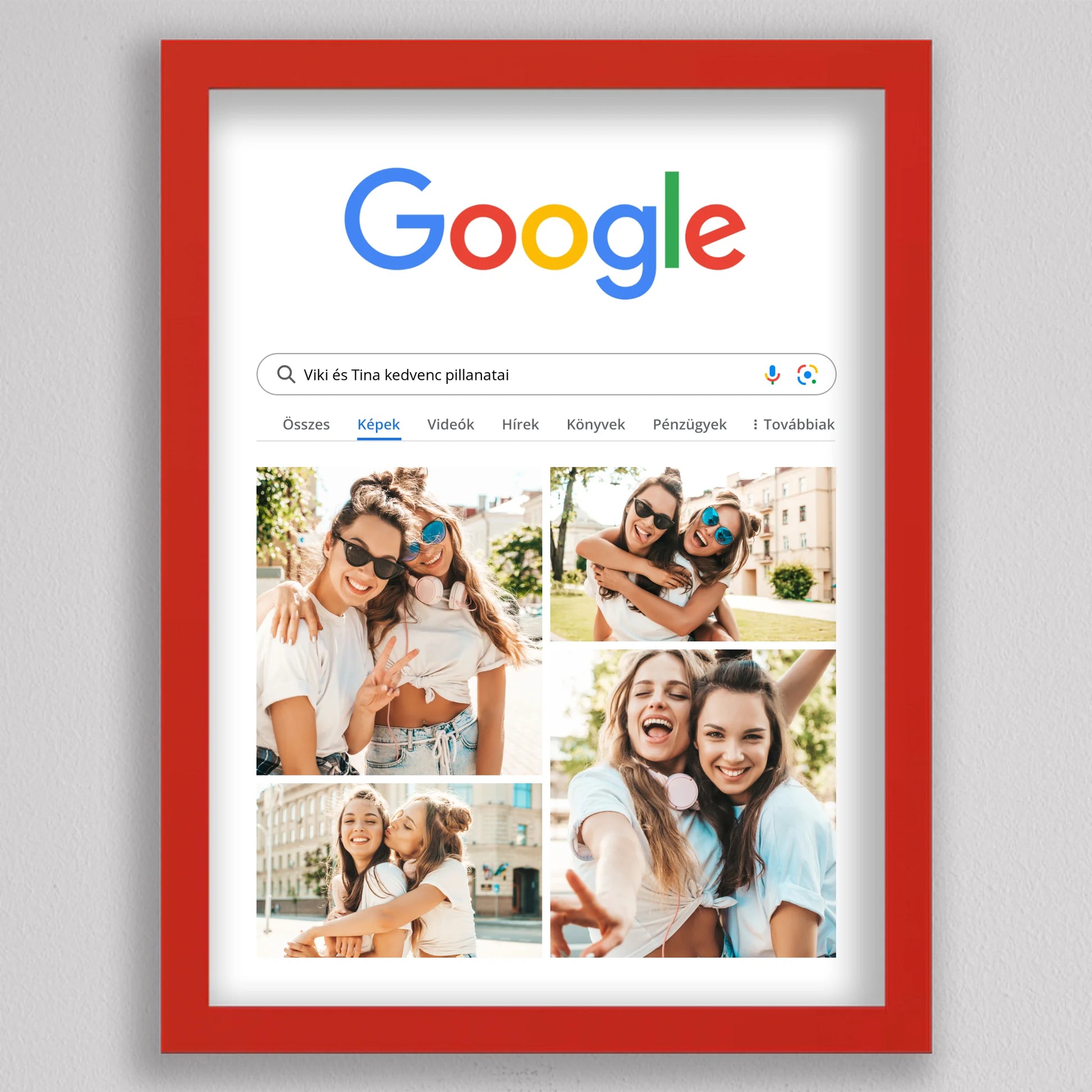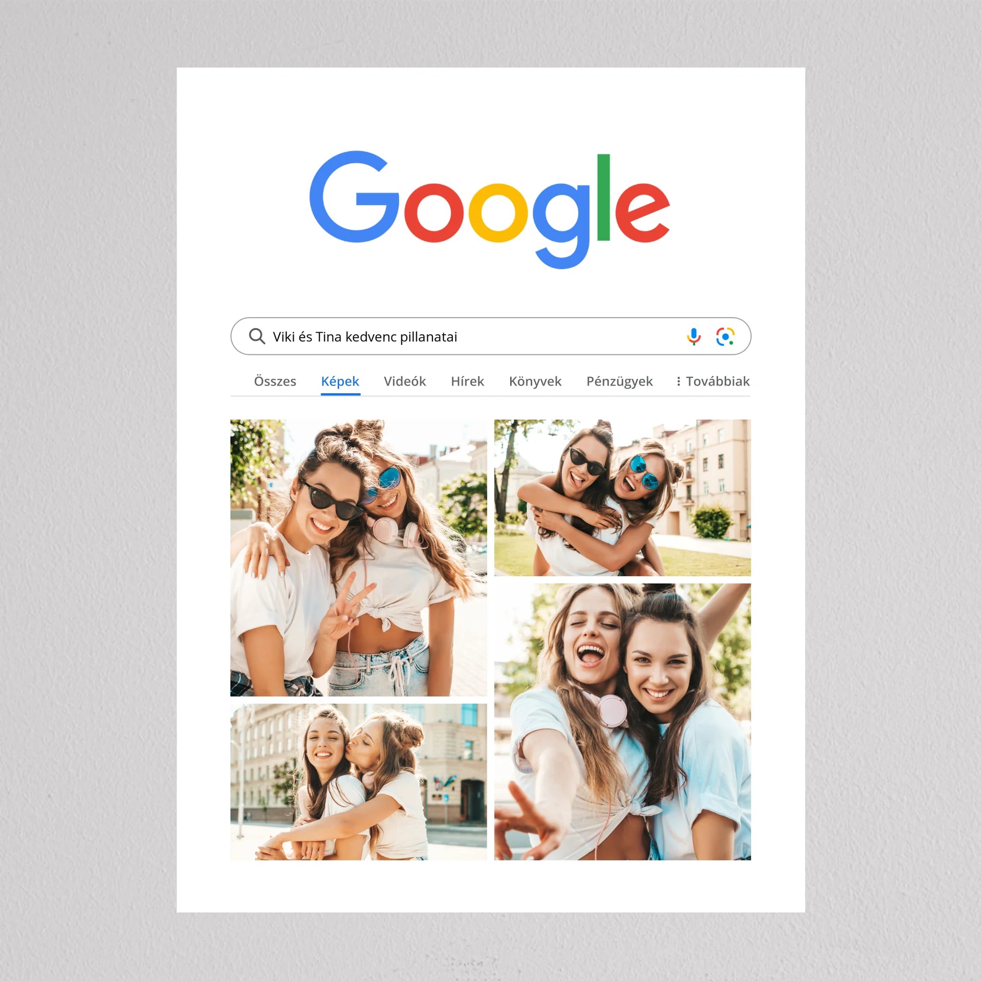 Tedd különlegessé a legszebb emlékeket ezzel az egyedi Google kereső stílusú fotó kollázzsal, amely tökéletesen visszaadja a kereső ikonikus megjelenését, de személyre szabható fotókkal és szöveggel. A modern, letisztult dizájn világos háttérrel minden enteriőrbe remekül illeszkedik, miközben személyes élményeidet kreatív formában örökíti meg. Különleges ajándék lehet barátoknak, családtagoknak vagy pároknak, akik szeretnék emlékezetessé tenni közös pillanataikat. Válassz hozzá személyre szabott keresési címet, és töltsd fel kedvenc fotóidat, hogy egy igazán egyedi, örökre szóló ajándékot adhass.
