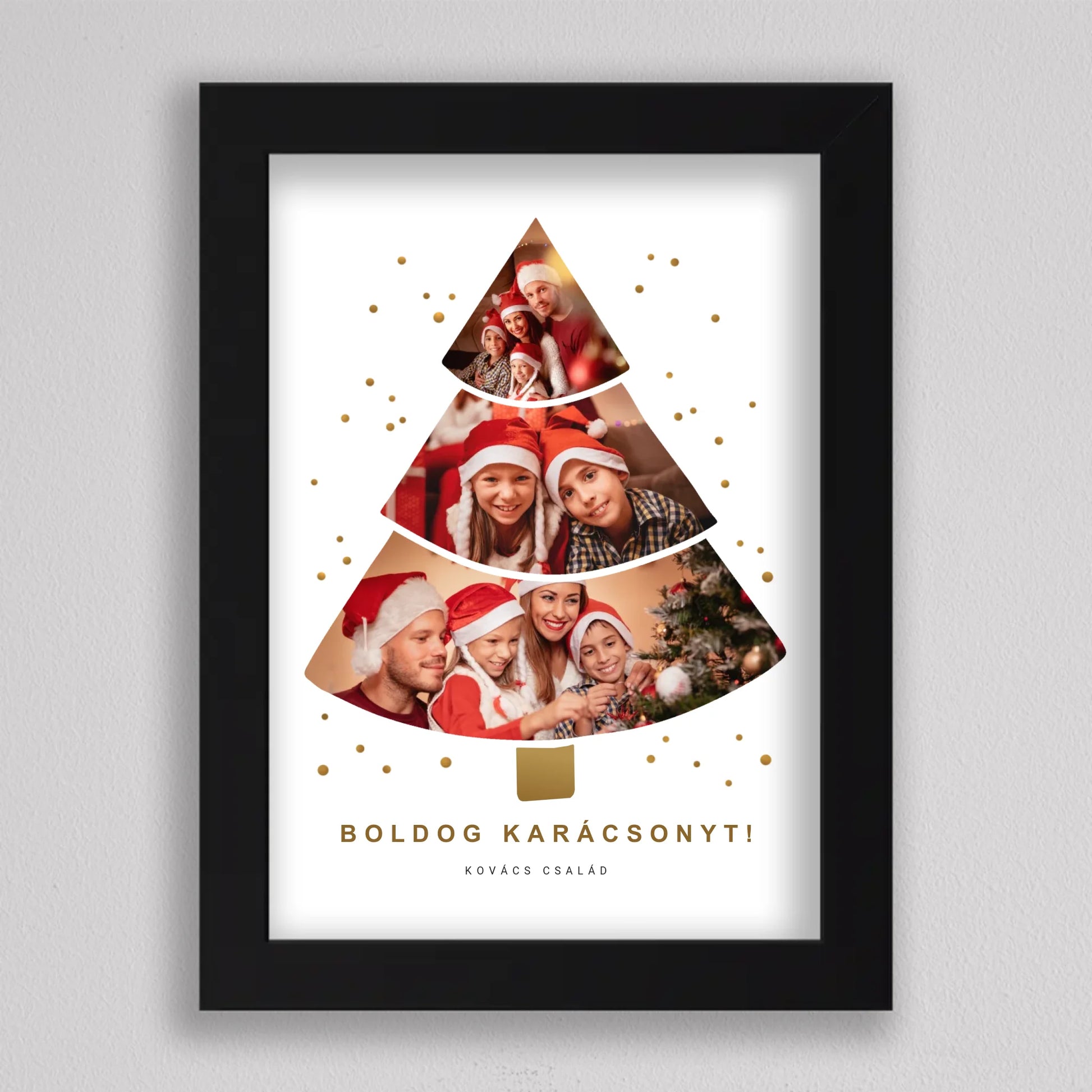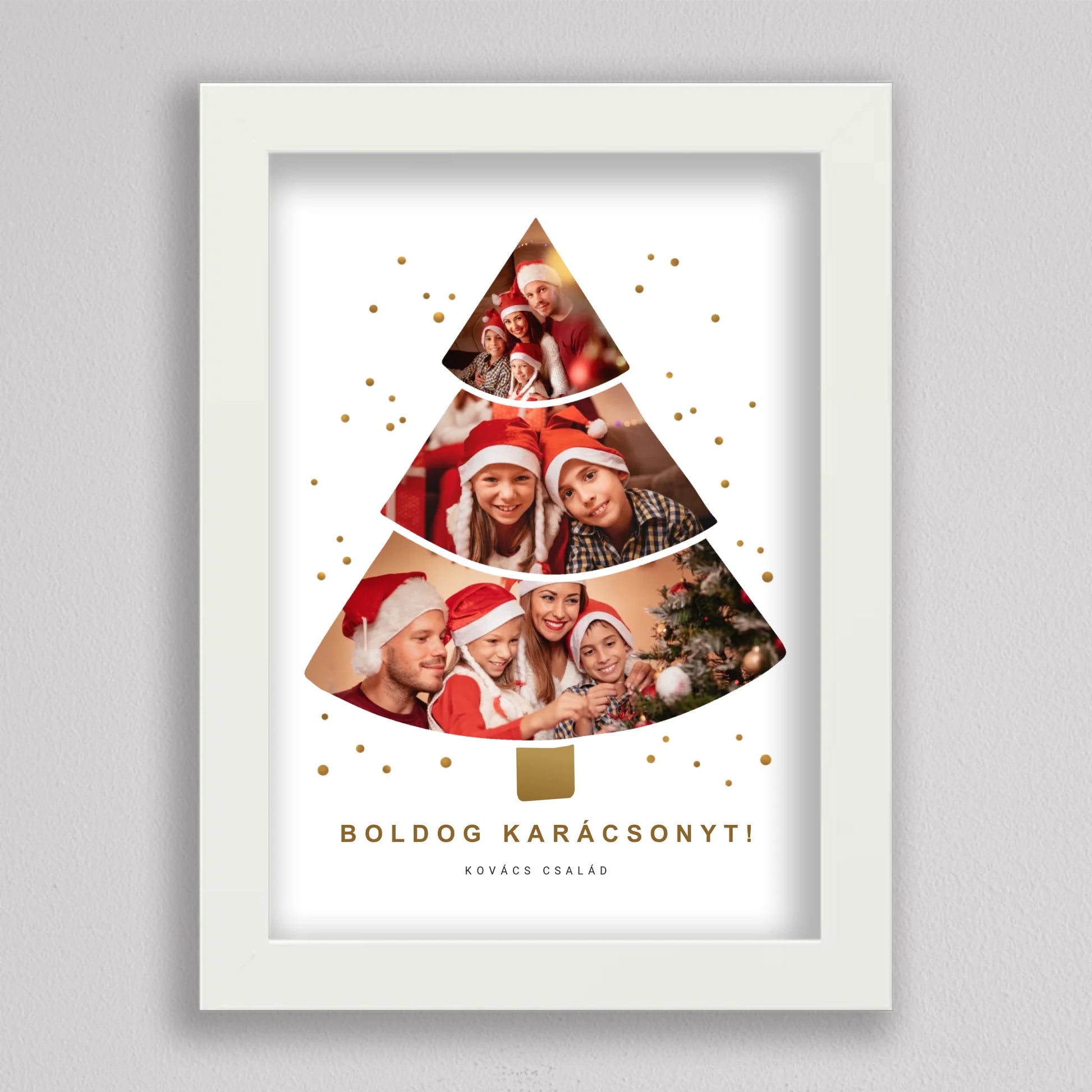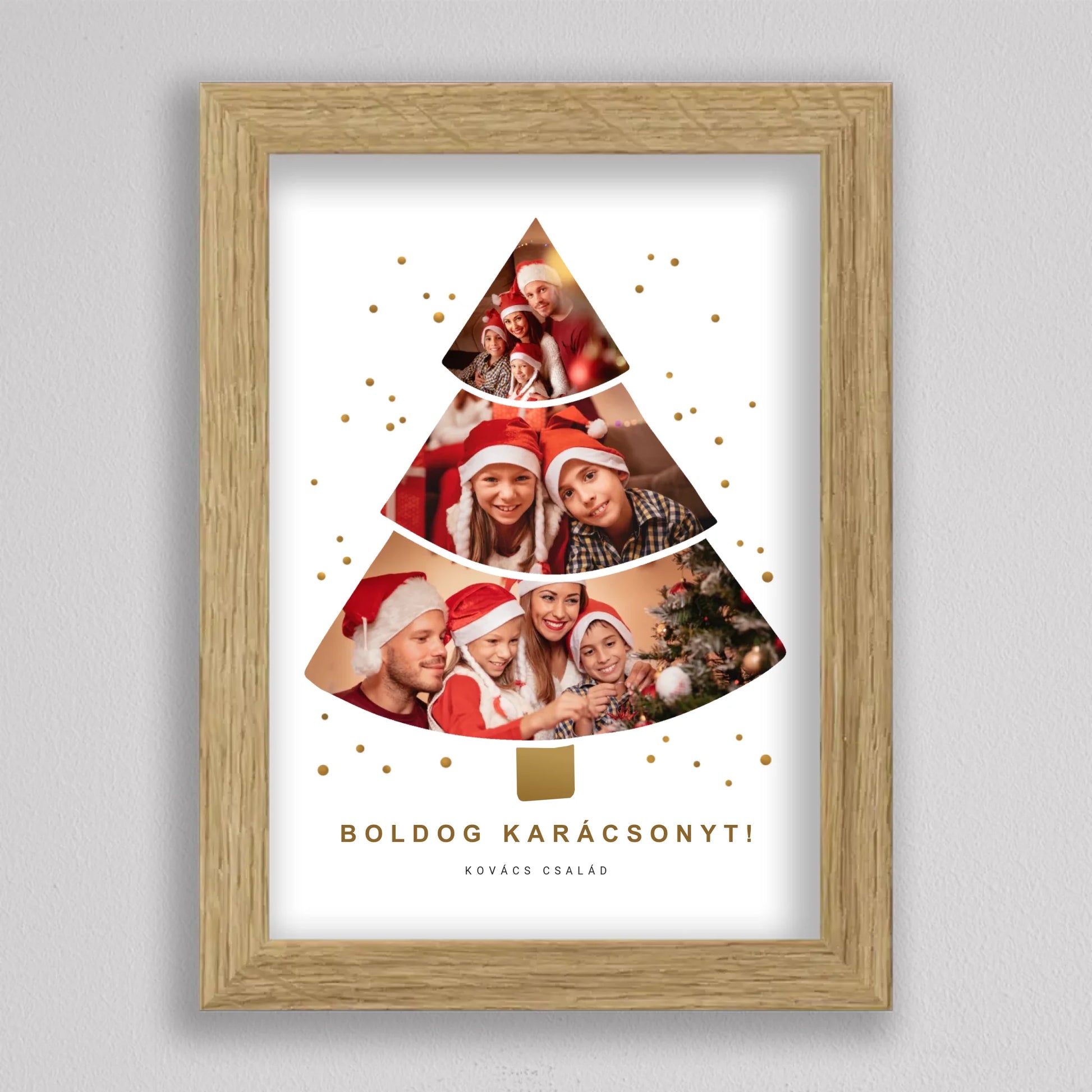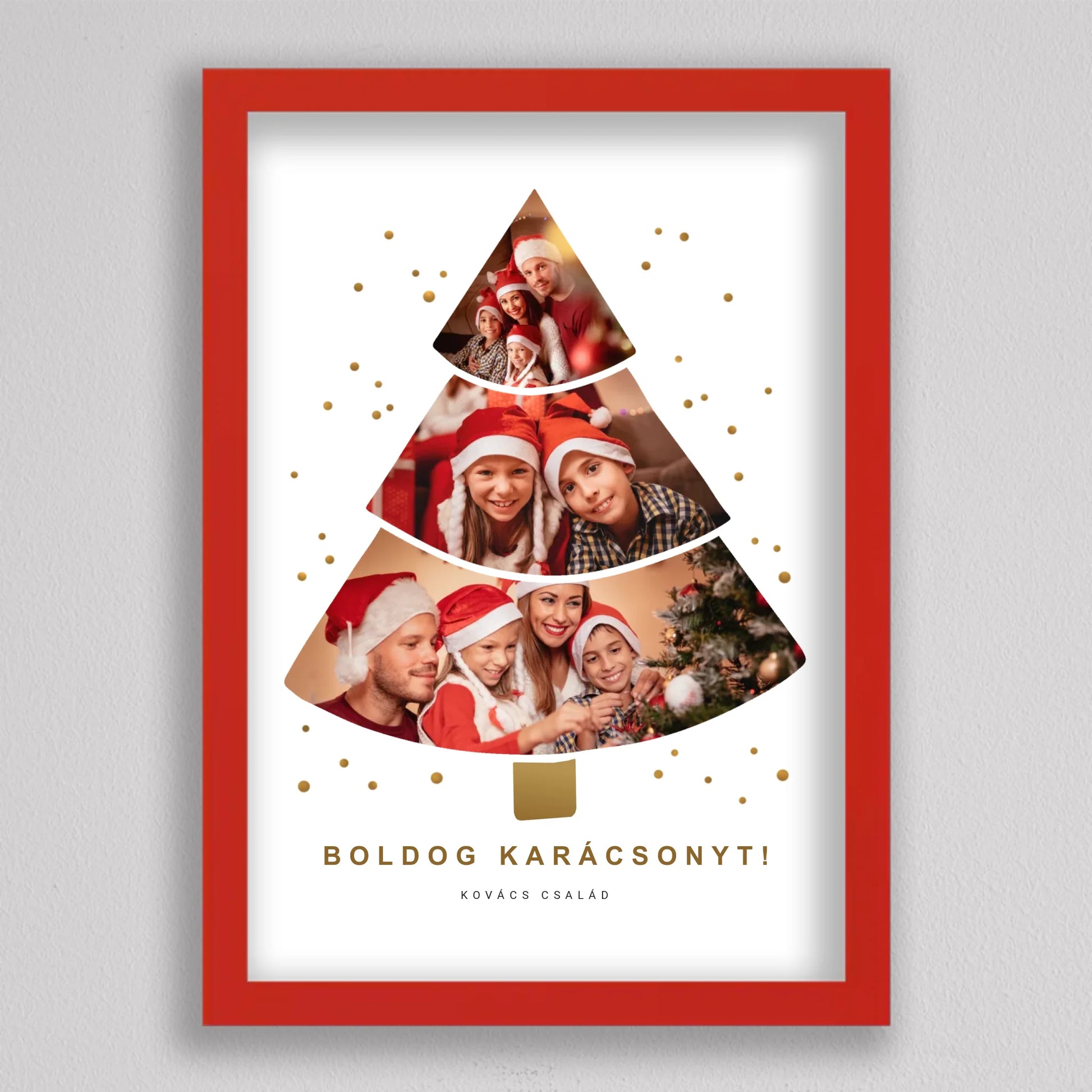 A Karácsonyfa alakú karácsonyi fotó kollázs #3 tökéletes választás, ha egyedi és személyre szabható ajándékot keresel a családod számára az ünnepi időszakra. A fotók karácsonyfa formába rendezve adják vissza a legszebb családi pillanatokat, így ideális választás karácsonyi dekorációnak vagy meghitt ajándéknak. A termék minőségi nyomtatással készül, modern dizájnnal és személyre szabható szöveggel, ami igazán különlegessé teszi az ünnepi ajándékozást. Ideális díszítés bármely otthonban, és örök emlék marad a család számára.