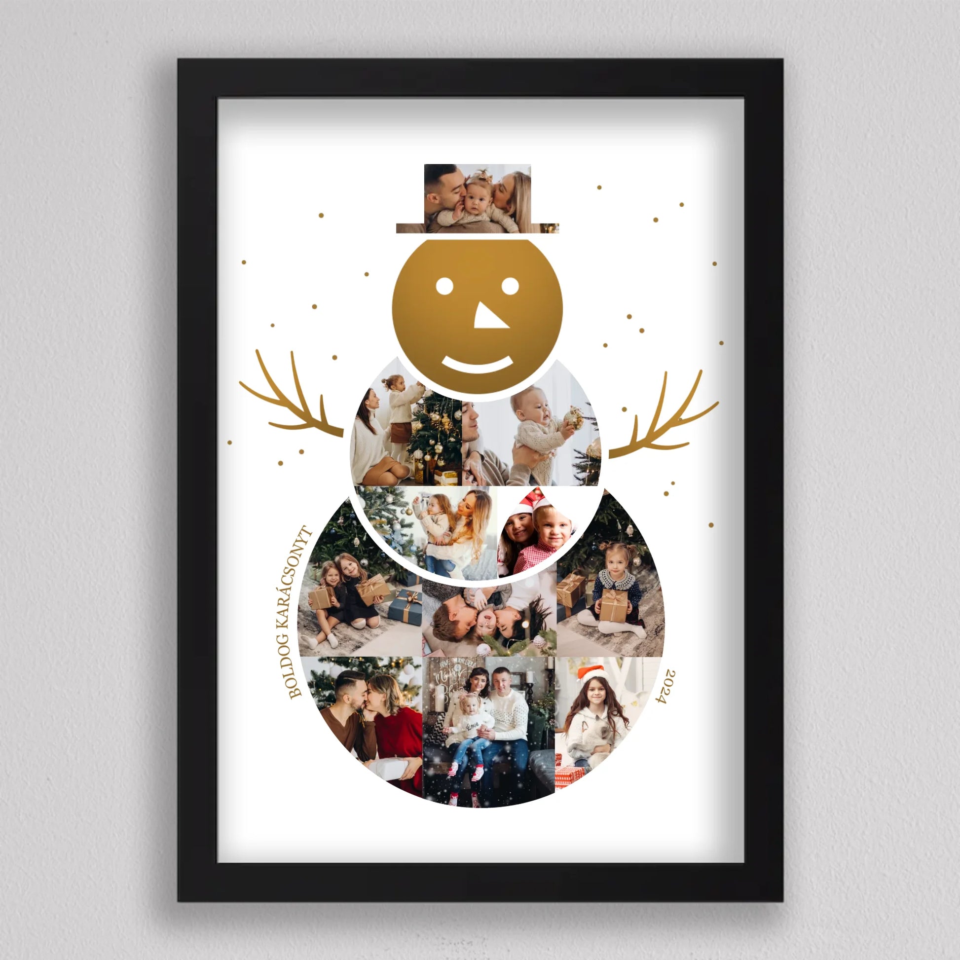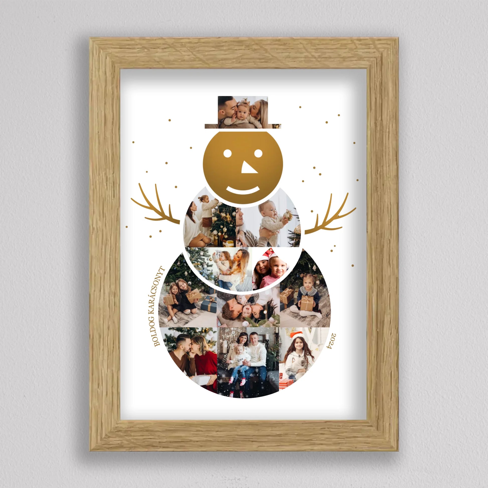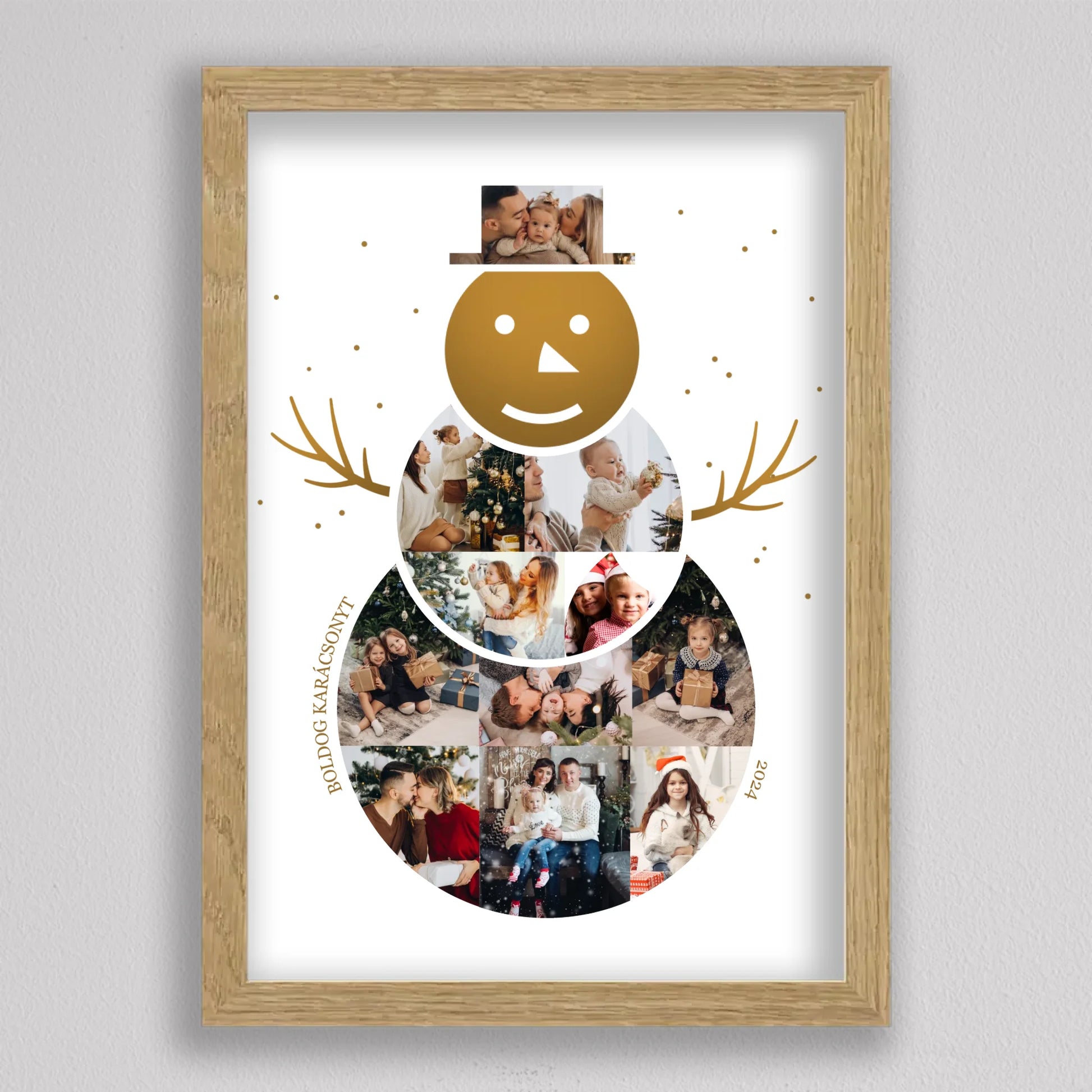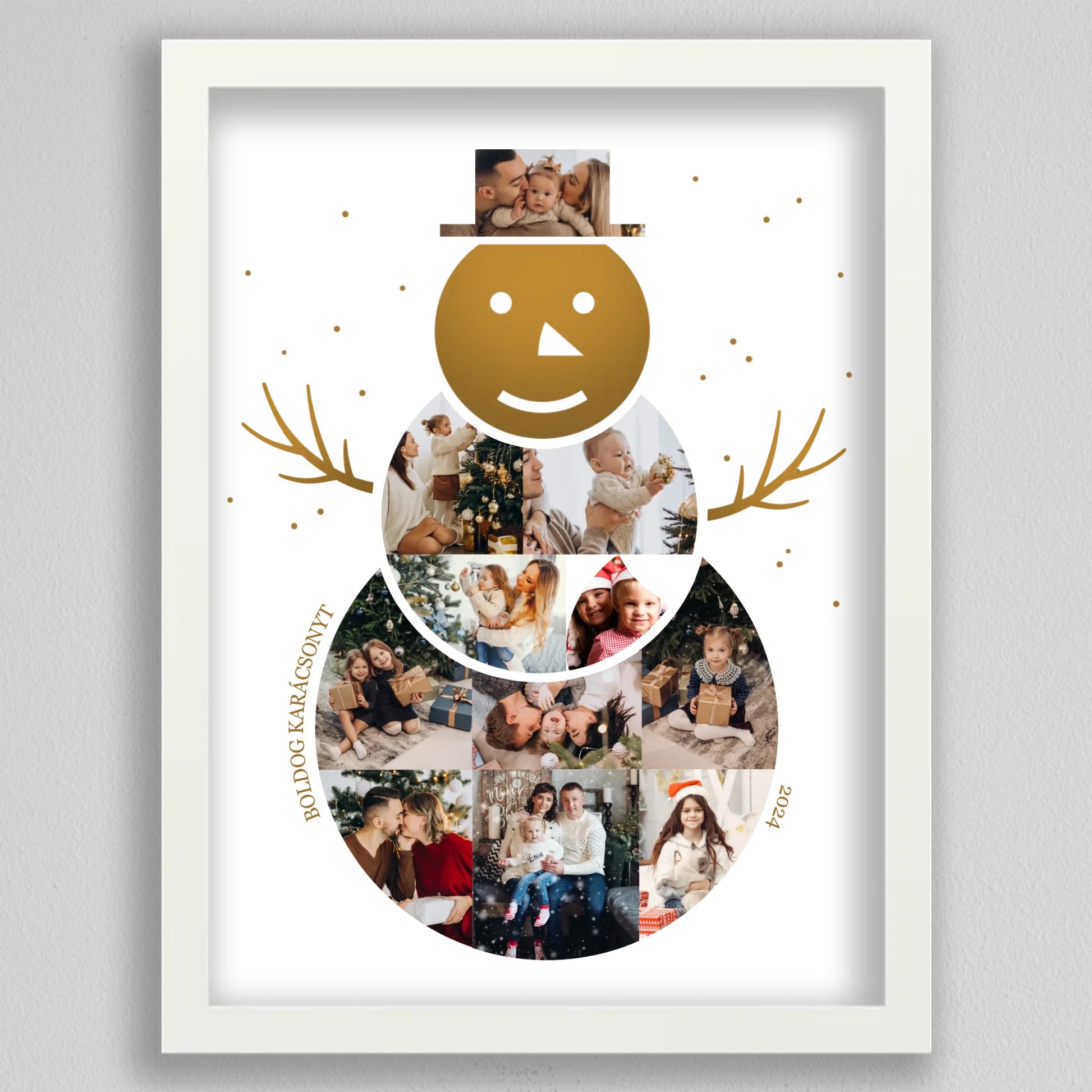 A Karácsonyi Hóember alakú fotó kollázs egy különleges dekoráció, amely tökéletesen megragadja a családi ünnepek hangulatát. A hóember formájú elrendezés vidámságot és ünnepi érzést sugároz, míg a fotók személyre szabhatók, így igazán egyedi ajándékká válik mindenki számára. A kollázsban több kedves családi pillanatot megőrizhet, így minden ránézéskor újraélheti a legszebb emlékeket. A minőségi nyomtatás és elegáns dizájn biztosítja, hogy ez a dekoráció minden karácsonyi enteriőr gyöngyszeme legyen. Egyedi, személyre szabott karácsonyi ajándék, amely mosolyt csal a szerettei arcára.