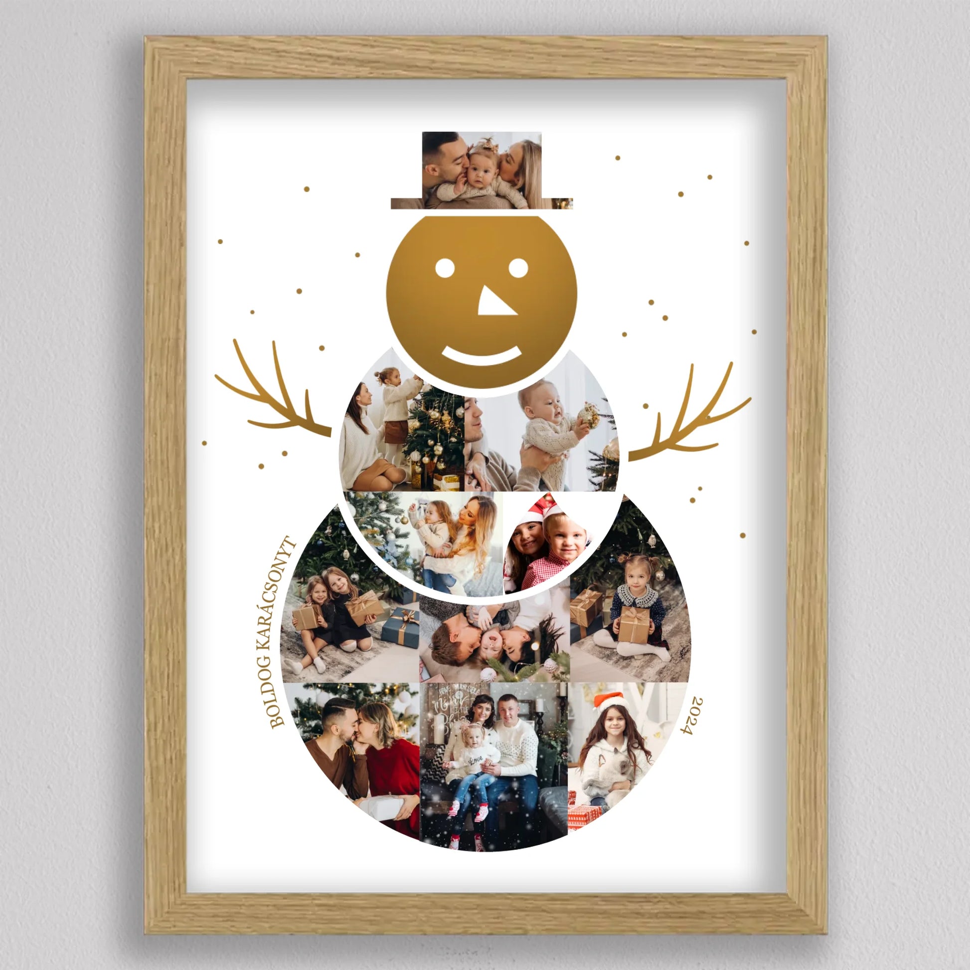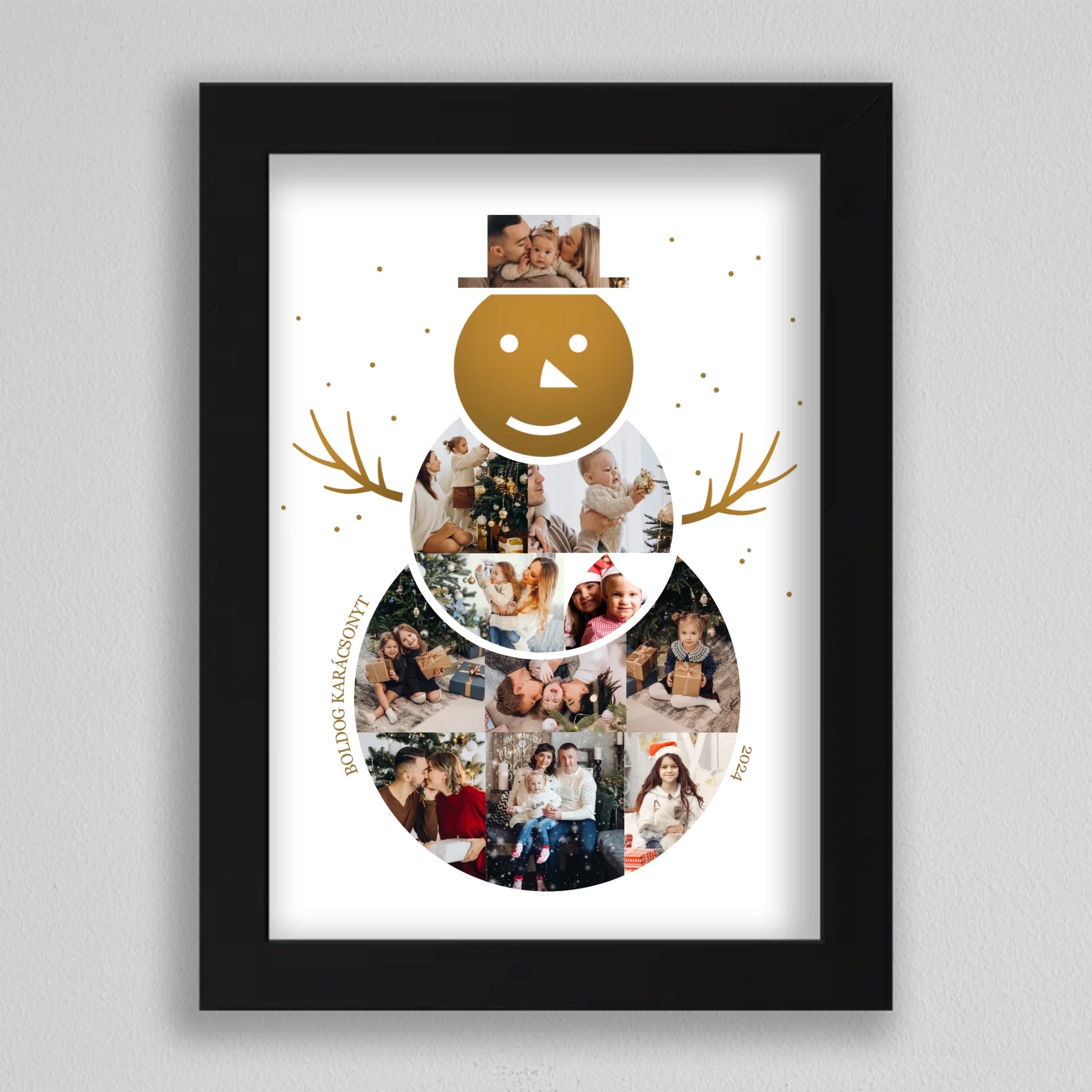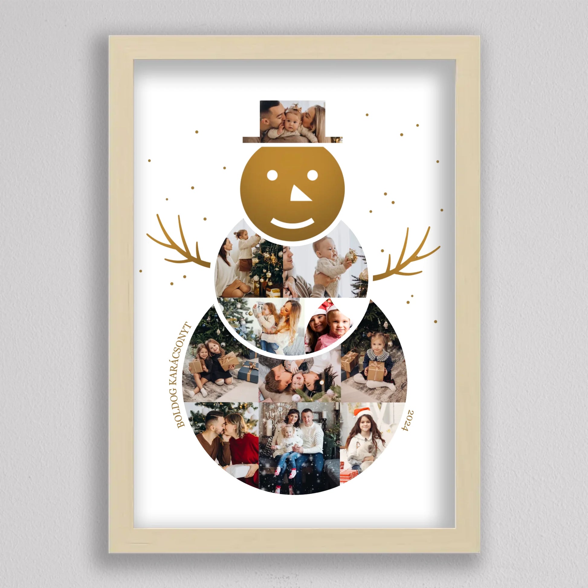 A Karácsonyi Hóember alakú fotó kollázs egy különleges dekoráció, amely tökéletesen megragadja a családi ünnepek hangulatát. A hóember formájú elrendezés vidámságot és ünnepi érzést sugároz, míg a fotók személyre szabhatók, így igazán egyedi ajándékká válik mindenki számára. A kollázsban több kedves családi pillanatot megőrizhet, így minden ránézéskor újraélheti a legszebb emlékeket. A minőségi nyomtatás és elegáns dizájn biztosítja, hogy ez a dekoráció minden karácsonyi enteriőr gyöngyszeme legyen. Egyedi, személyre szabott karácsonyi ajándék, amely mosolyt csal a szerettei arcára.