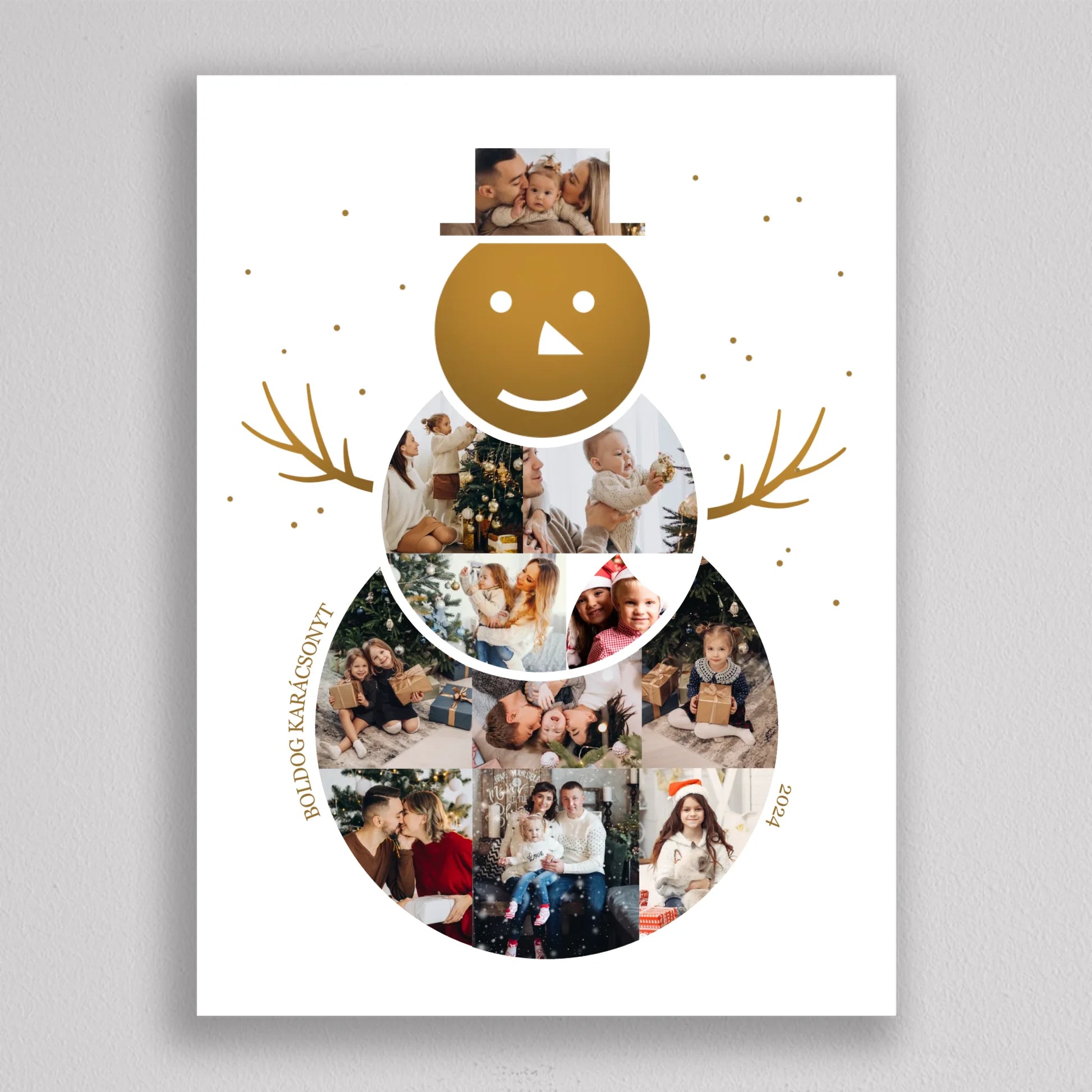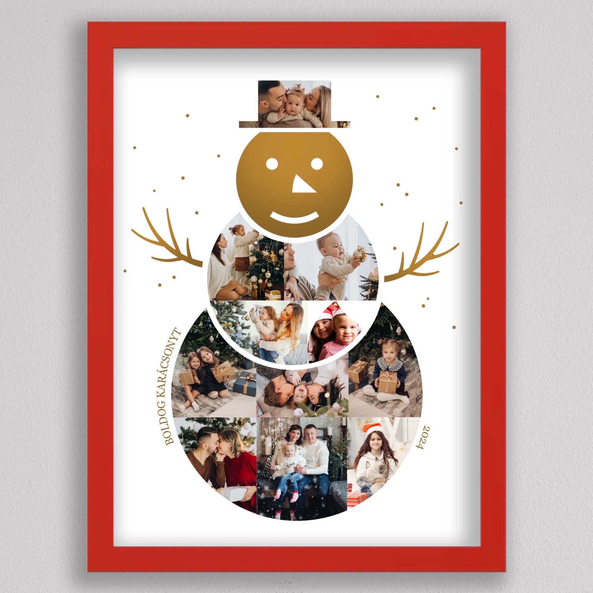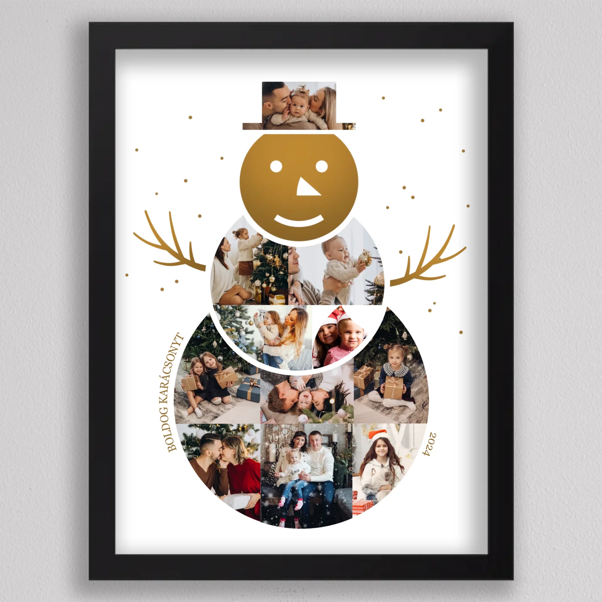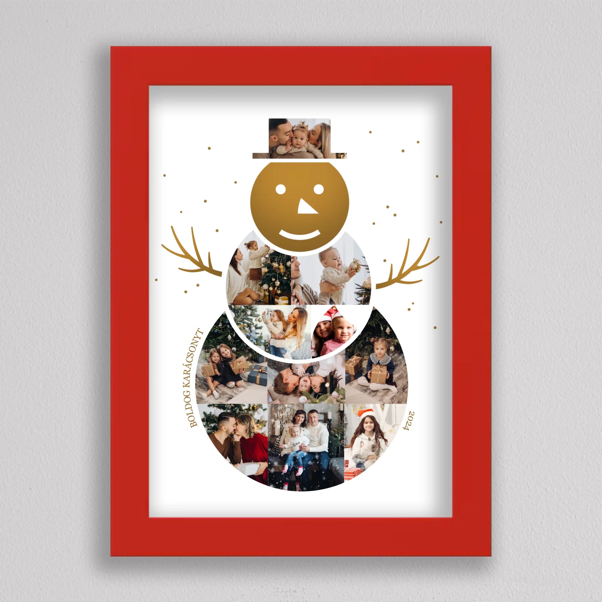 A Karácsonyi Hóember alakú fotó kollázs egy különleges dekoráció, amely tökéletesen megragadja a családi ünnepek hangulatát. A hóember formájú elrendezés vidámságot és ünnepi érzést sugároz, míg a fotók személyre szabhatók, így igazán egyedi ajándékká válik mindenki számára. A kollázsban több kedves családi pillanatot megőrizhet, így minden ránézéskor újraélheti a legszebb emlékeket. A minőségi nyomtatás és elegáns dizájn biztosítja, hogy ez a dekoráció minden karácsonyi enteriőr gyöngyszeme legyen. Egyedi, személyre szabott karácsonyi ajándék, amely mosolyt csal a szerettei arcára.