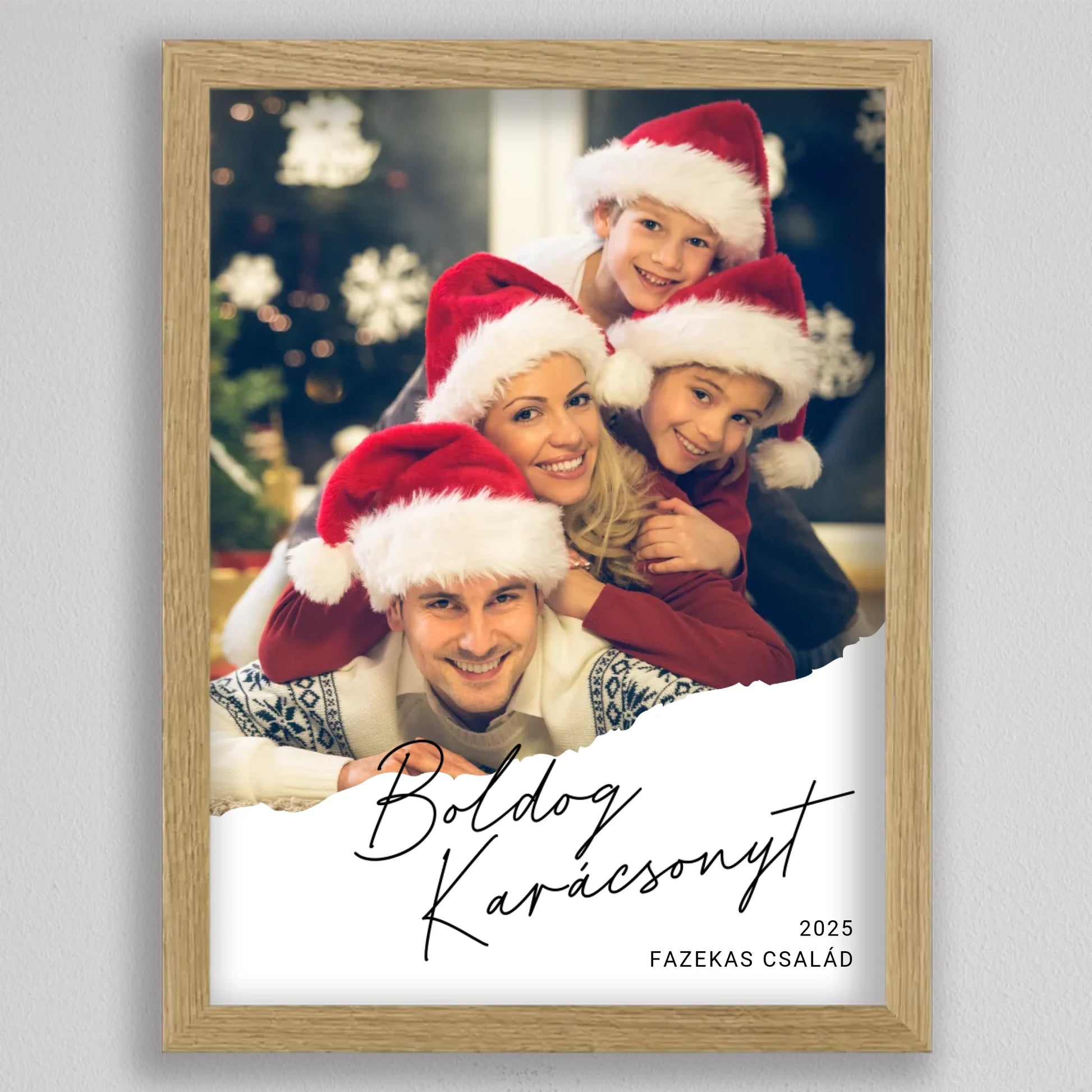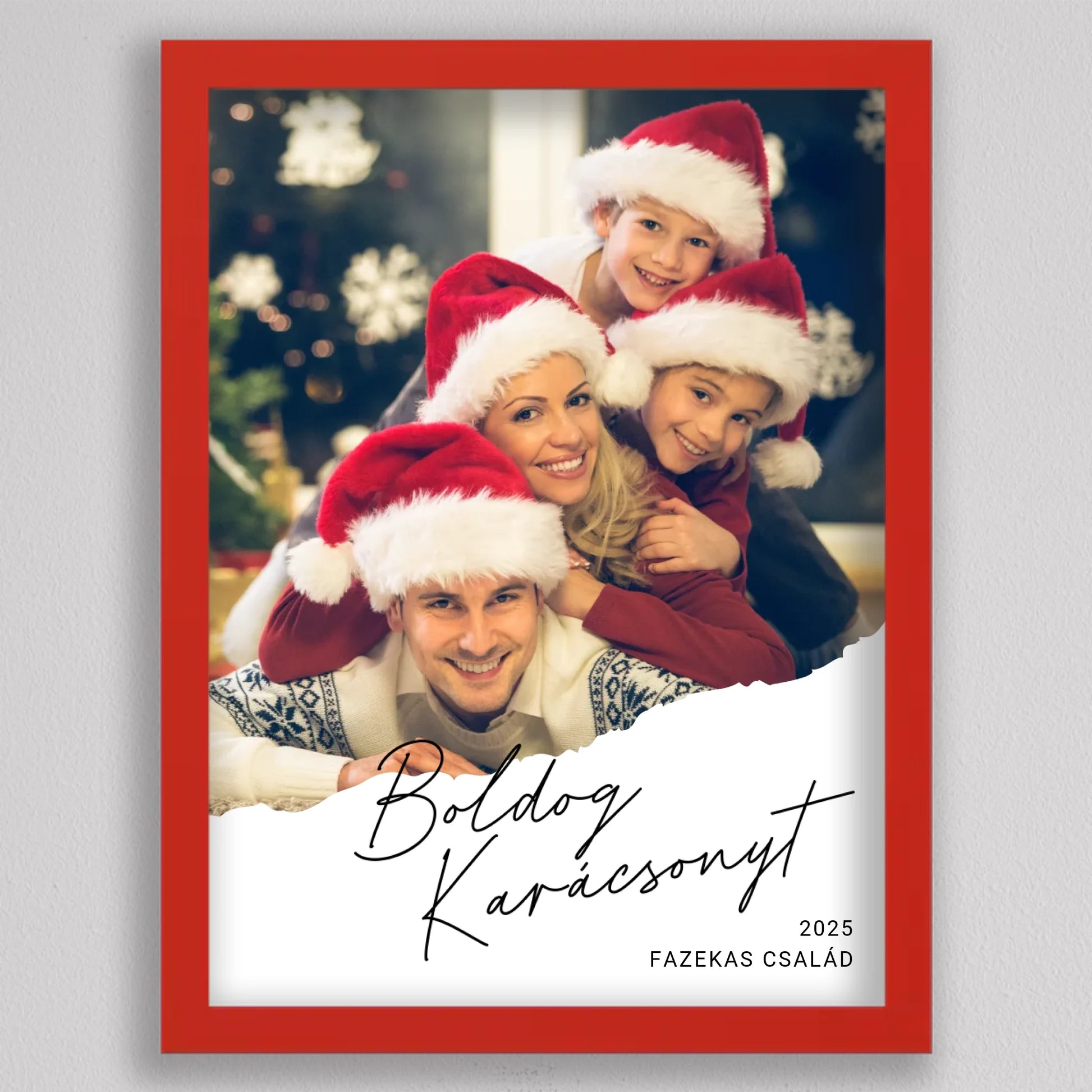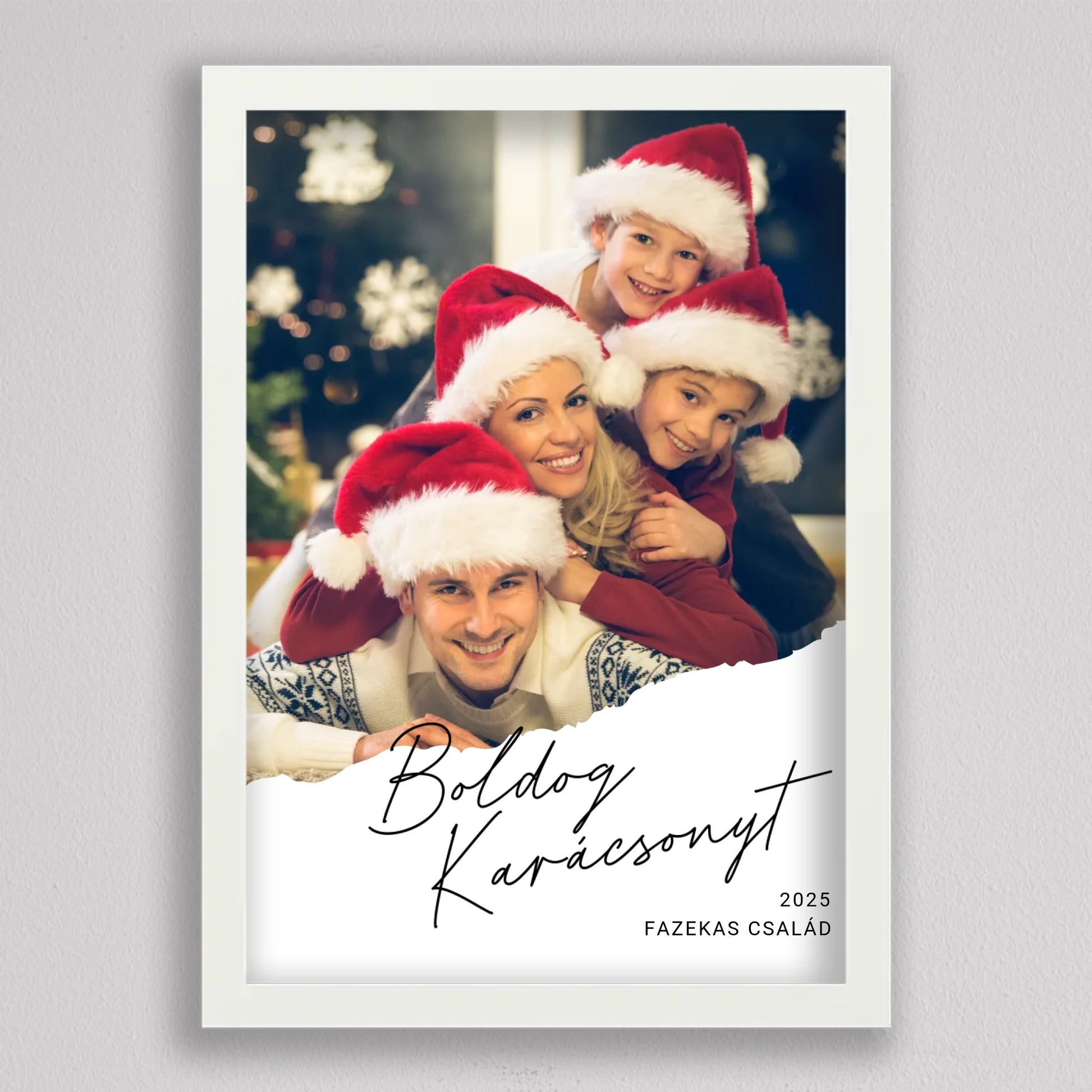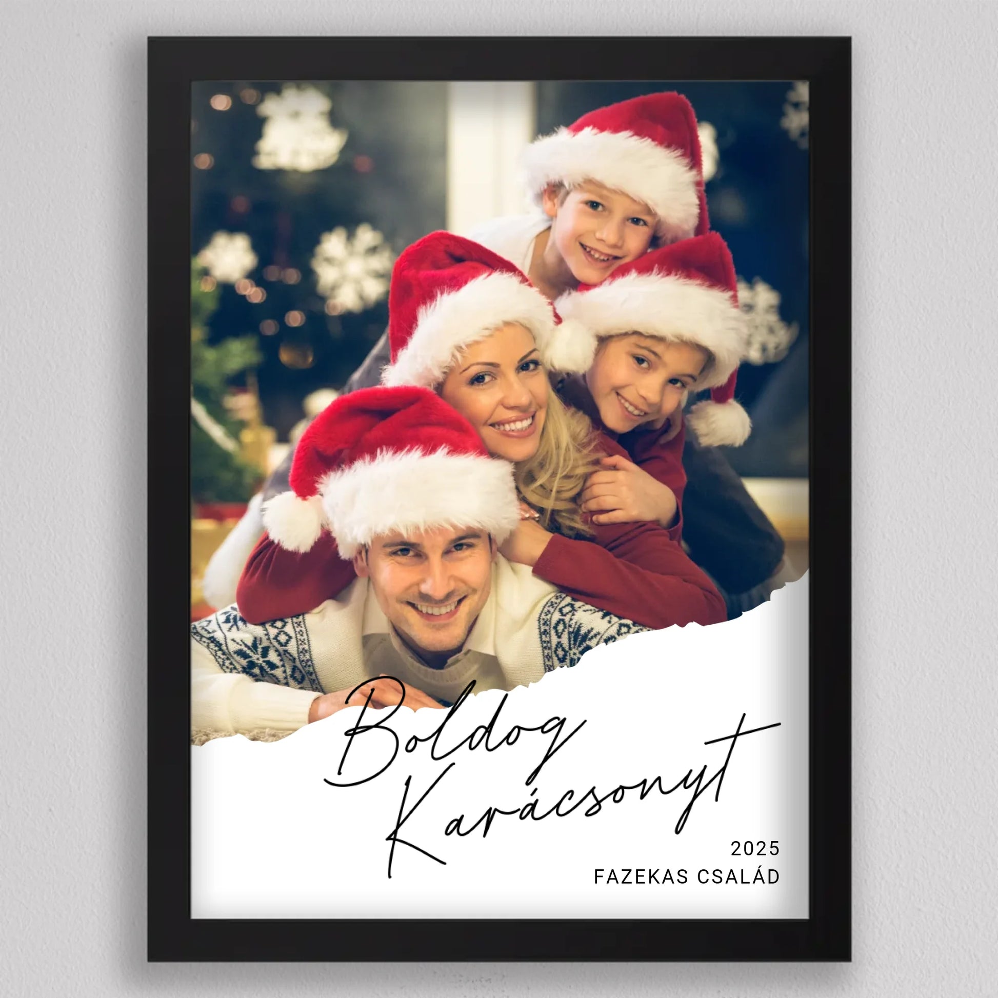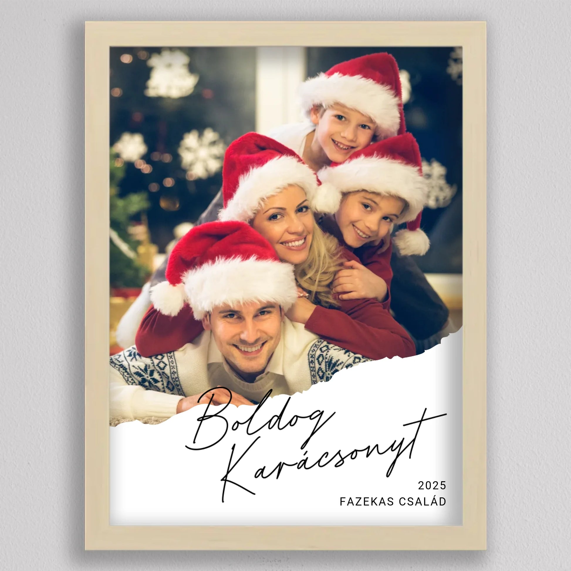 Tedd felejthetetlenné az ünnepi szezont ezzel az egyedi, személyre szabható karácsonyi faliképpel, amely a család legmeghittebb pillanatait örökíti meg elegáns formában. A modern, üdvözlőlap stílusú dizájn és a letisztult tipográfia tökéletes harmóniát alkot, így bármely otthon karácsonyi dísze lehet. Kiváló választás ajándékként is – legyen szó szülőkről, nagyszülőkről vagy a párodról, ez a kép garantáltan meghatja őket. Az „Ünnepi Pillanatok” falikép nem csupán dekoráció, hanem egy különleges emlék, amely minden évben újra előhívja a szeretet és összetartozás érzését.