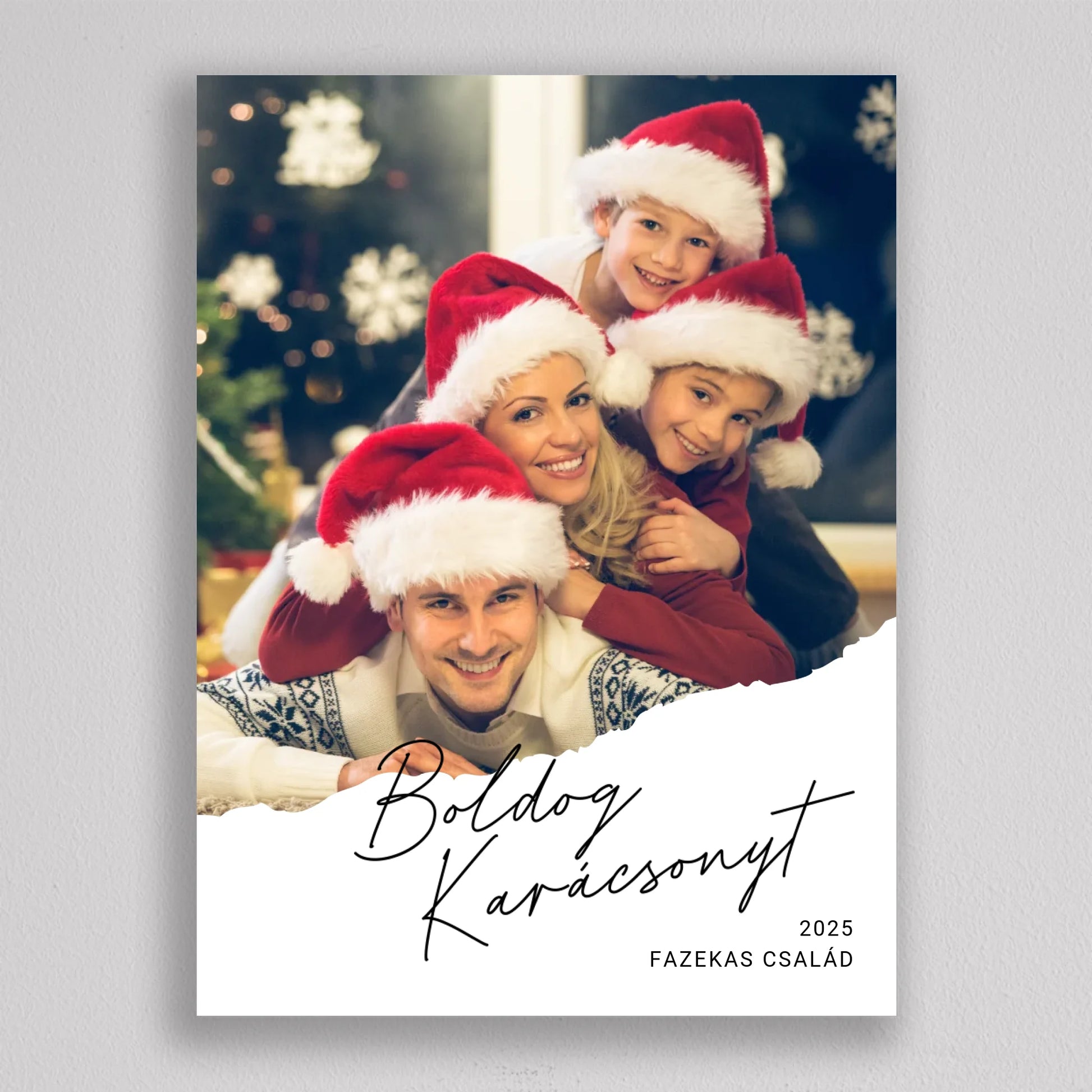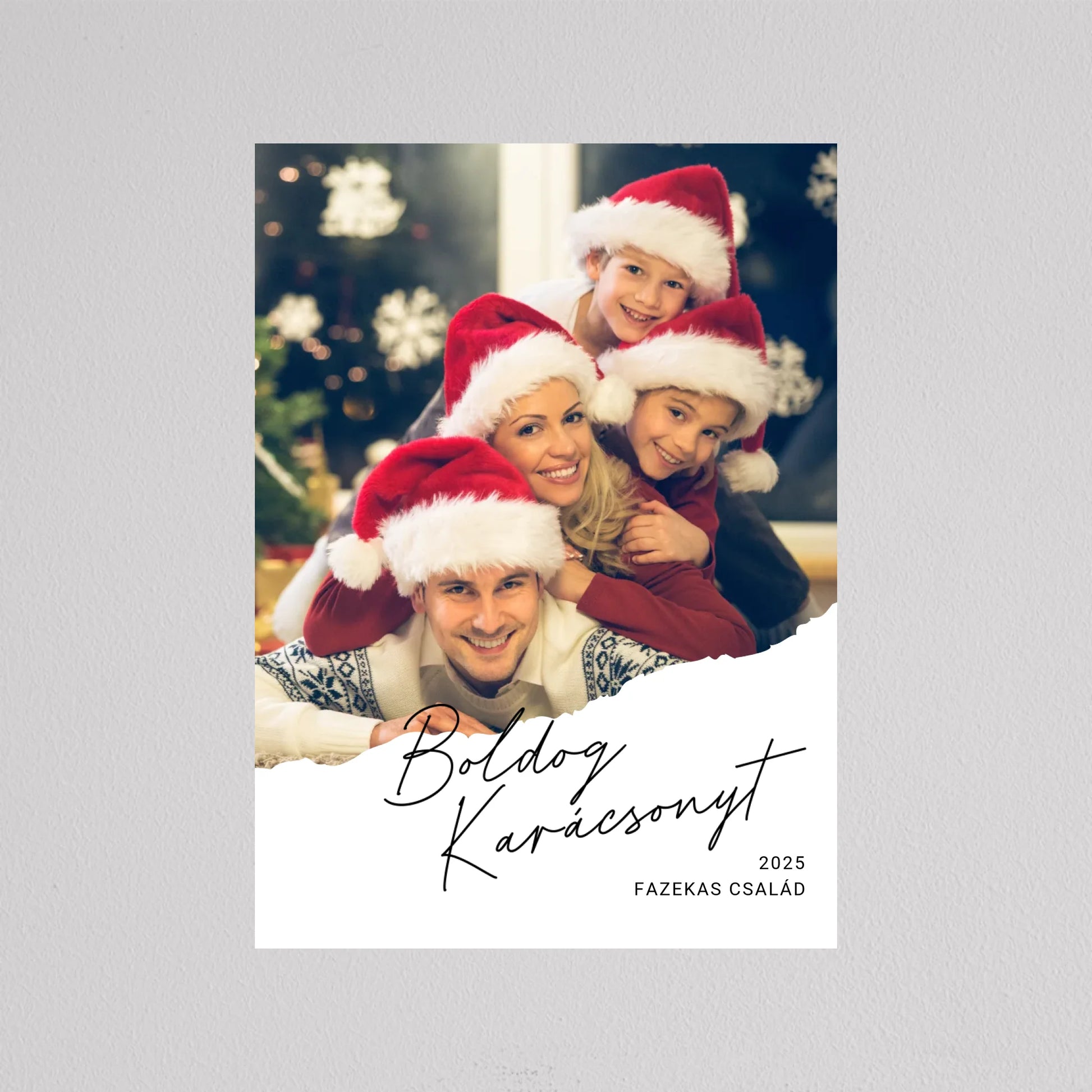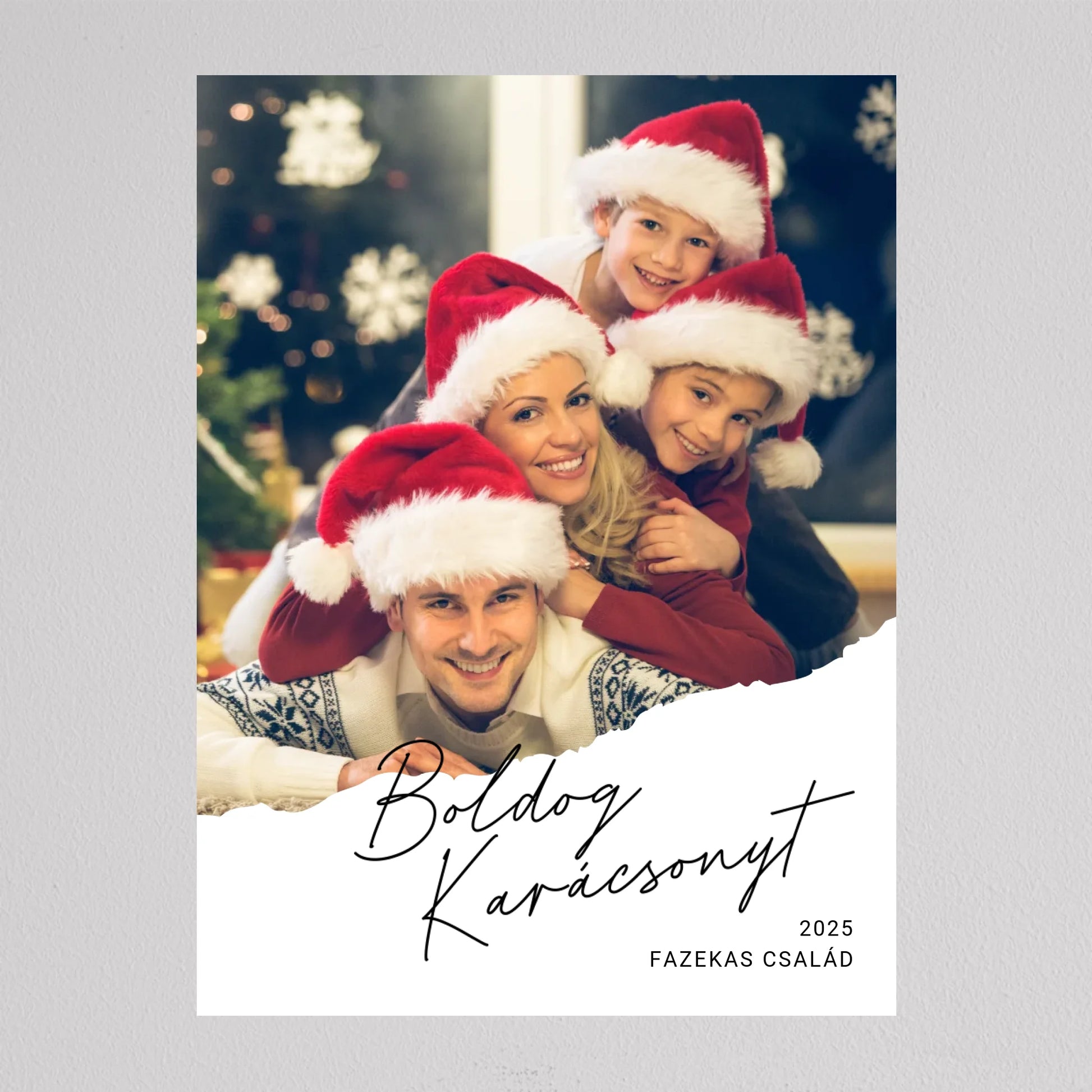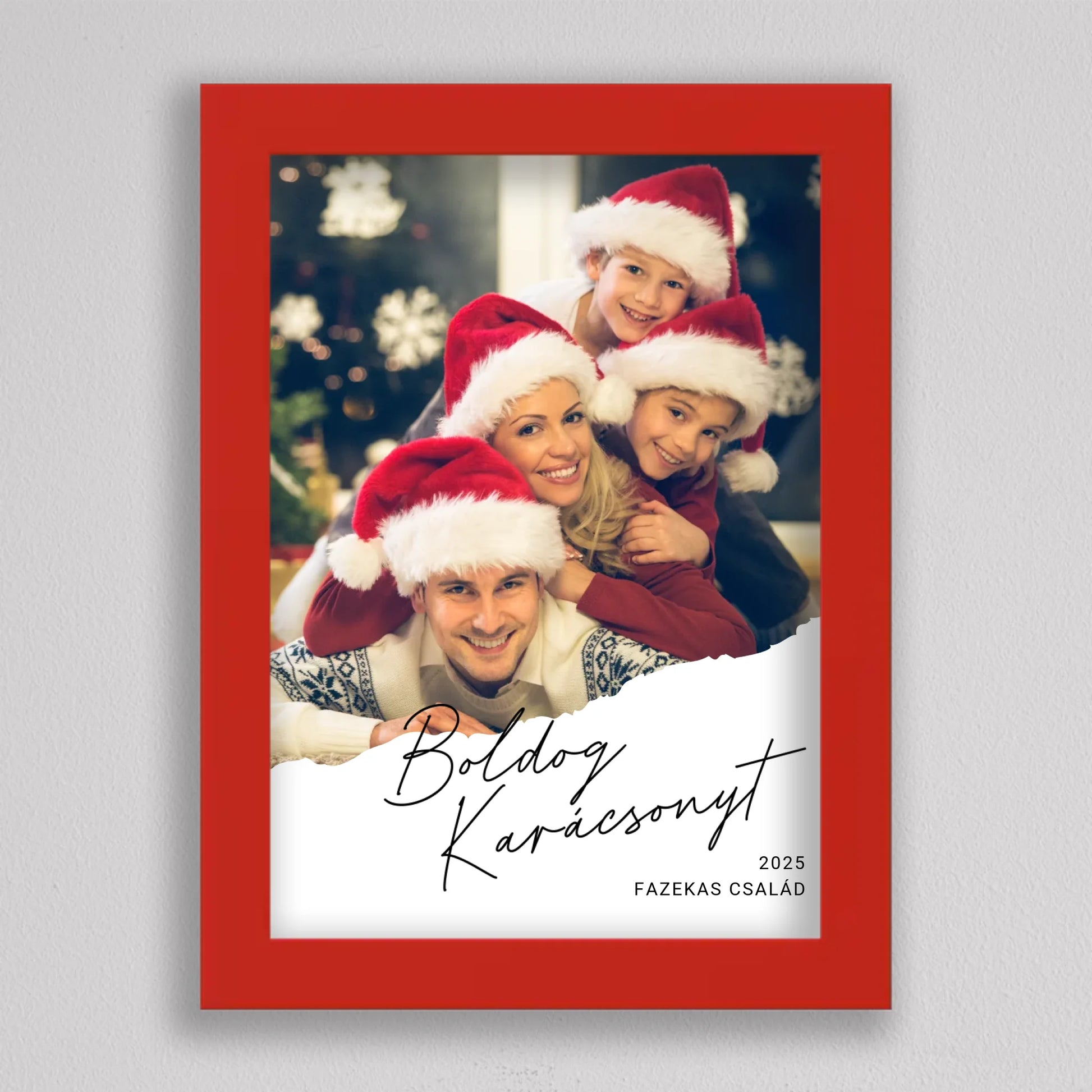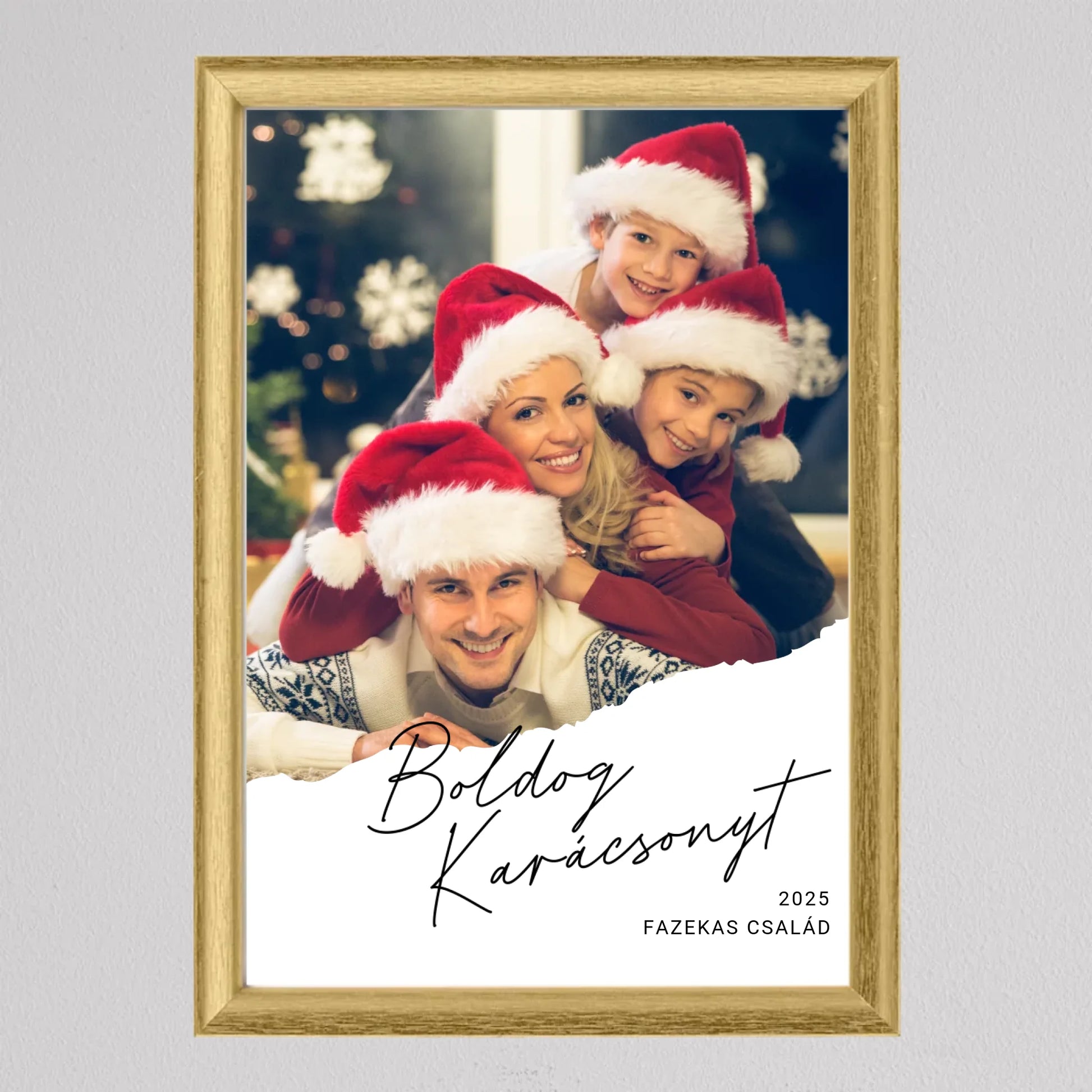 Tedd felejthetetlenné az ünnepi szezont ezzel az egyedi, személyre szabható karácsonyi faliképpel, amely a család legmeghittebb pillanatait örökíti meg elegáns formában. A modern, üdvözlőlap stílusú dizájn és a letisztult tipográfia tökéletes harmóniát alkot, így bármely otthon karácsonyi dísze lehet. Kiváló választás ajándékként is – legyen szó szülőkről, nagyszülőkről vagy a párodról, ez a kép garantáltan meghatja őket. Az „Ünnepi Pillanatok” falikép nem csupán dekoráció, hanem egy különleges emlék, amely minden évben újra előhívja a szeretet és összetartozás érzését.