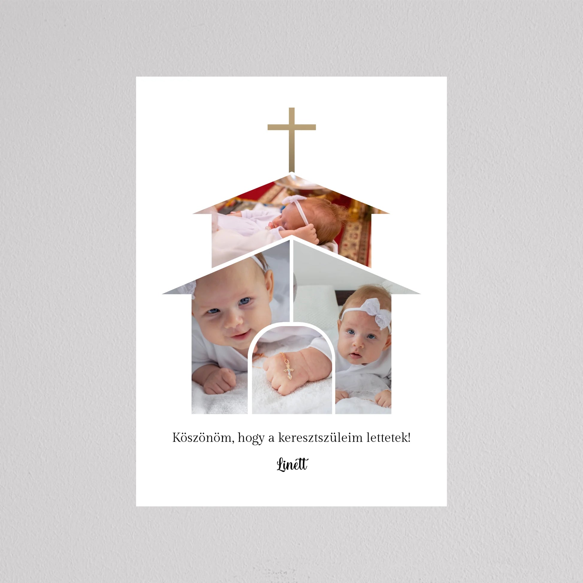 Keresztszülő köszönő templom alakú fotó kollázs keresztelőre