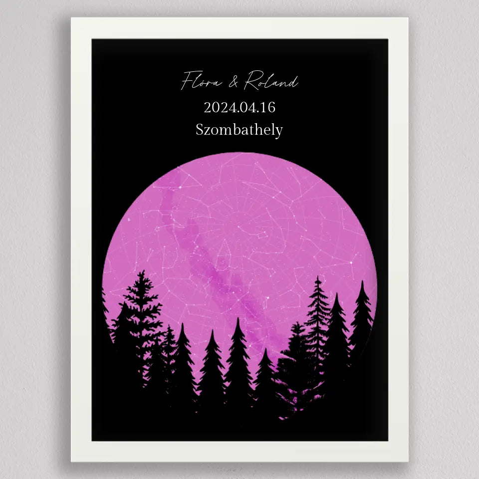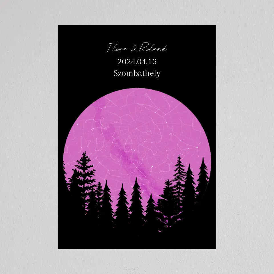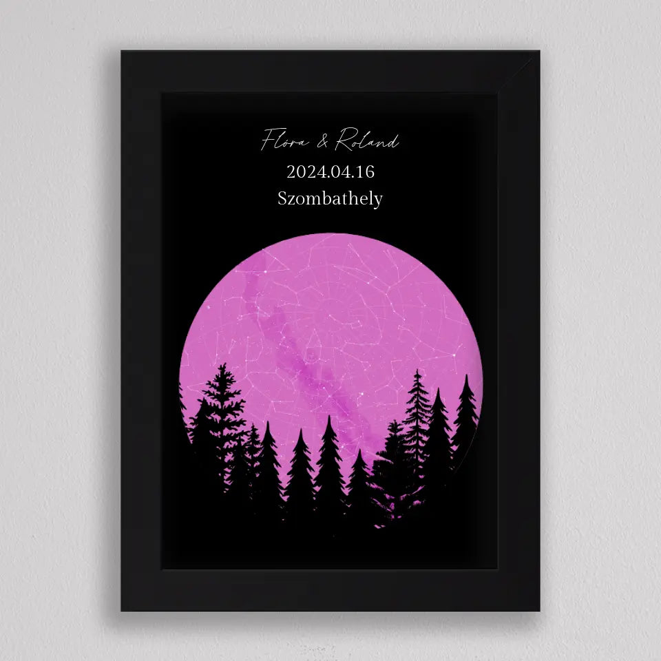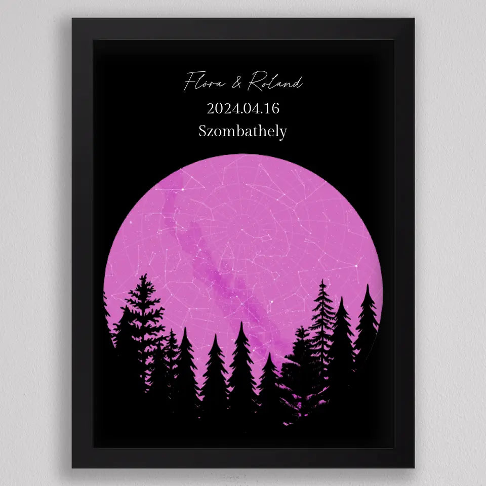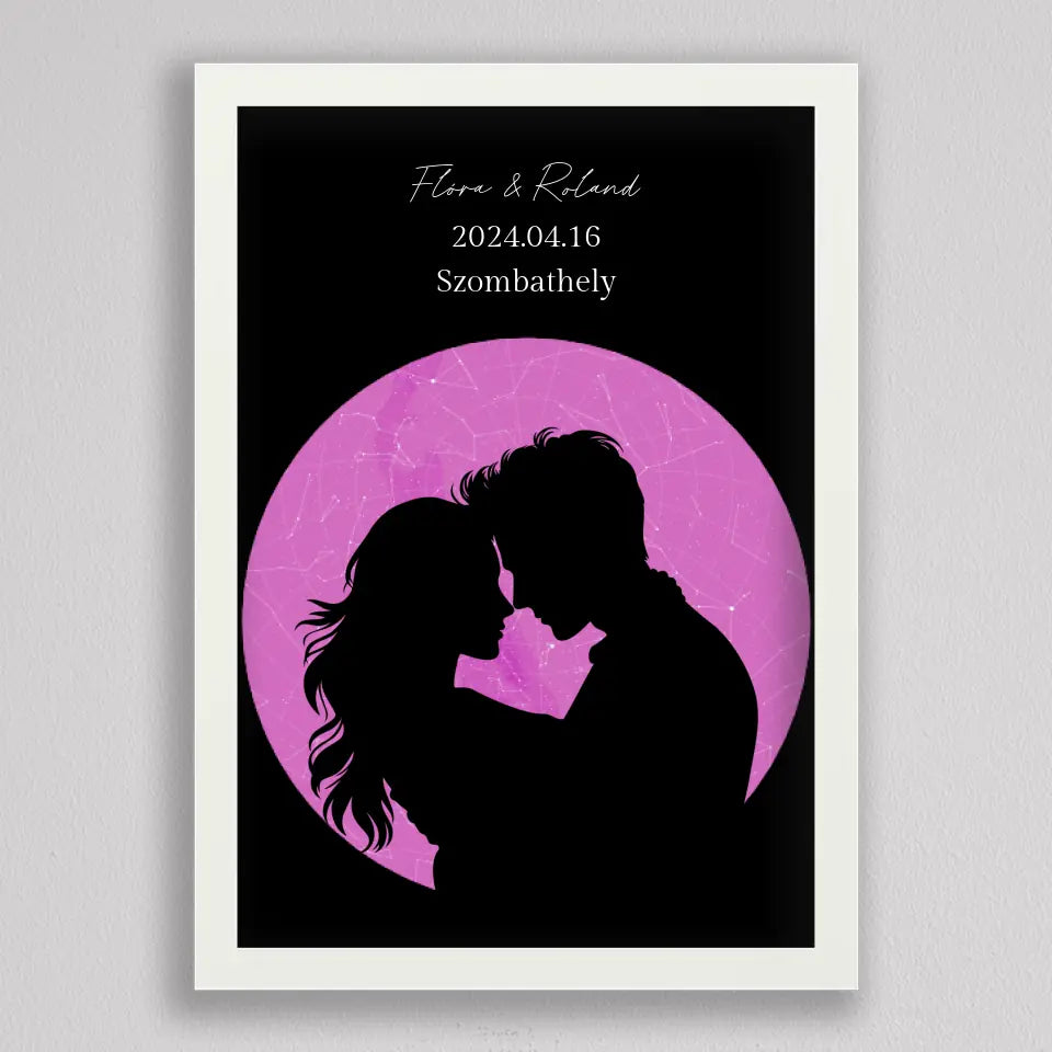 A Romantikus Csillagtérkép Fotó Kollázs - Emlékezetes Pillanataink egy gyönyörű és személyre szabható ajándék, amely tökéletes választás azoknak a pároknak, akik szeretnék megörökíteni a különleges közös pillanataikat. Ez az egyedi csillagtérkép a szerelmesek kedvenc dátumát és helyszínét ábrázolja, miközben a csillagok állását is megjeleníti az adott éjszakán. A többszínű háttér és a romantikus sziluett tökéletes harmóniában áll egymással, ezáltal igazán egyedi és esztétikus ajándékot hoz létre. Ideális választás évfordulóra, Valentin-napra, vagy bármilyen más különleges alkalomra, amikor szeretnéd kifejezni szerelmedet és örök emlékként megőrizni a közös élményeket.