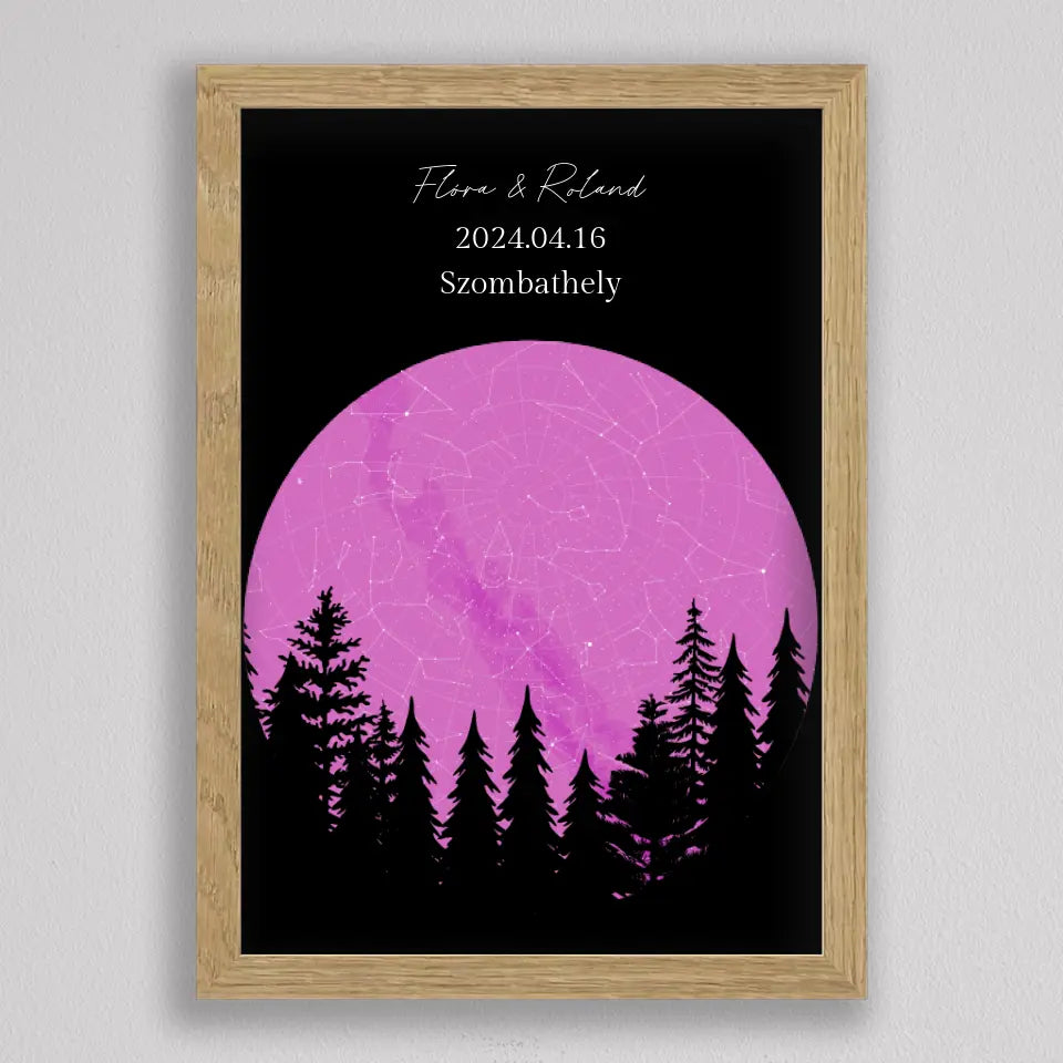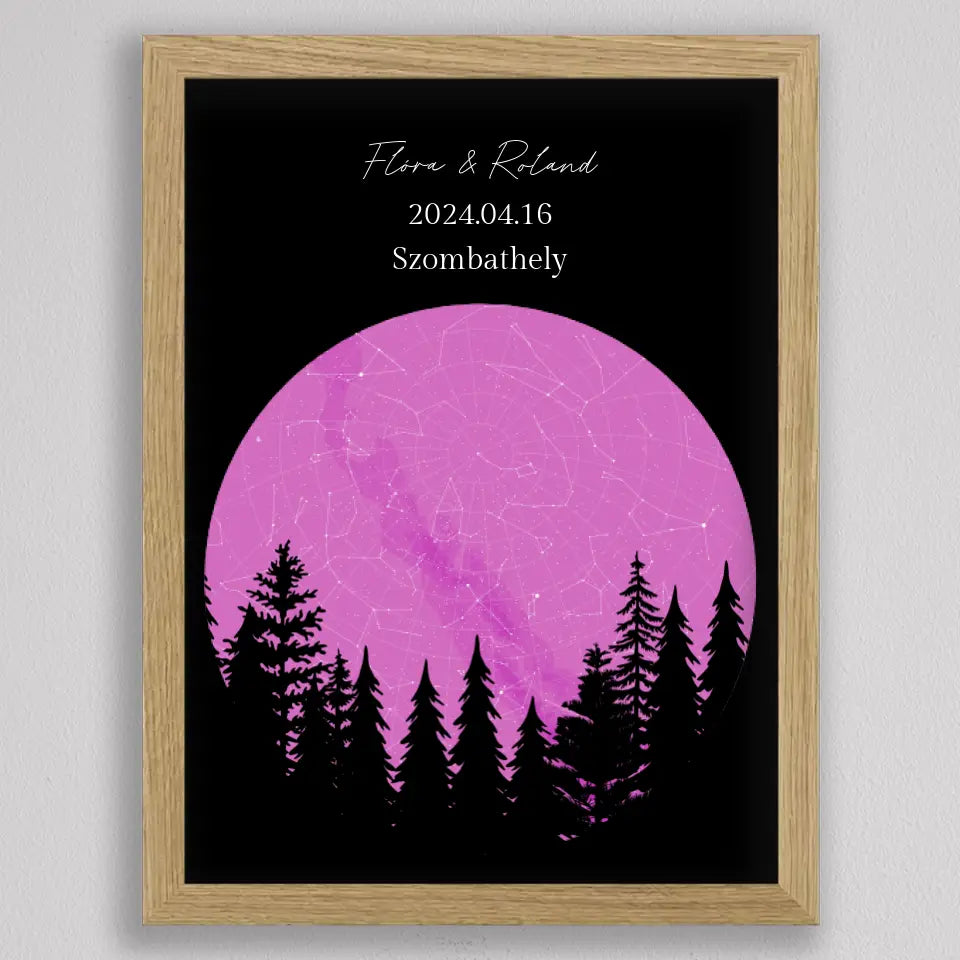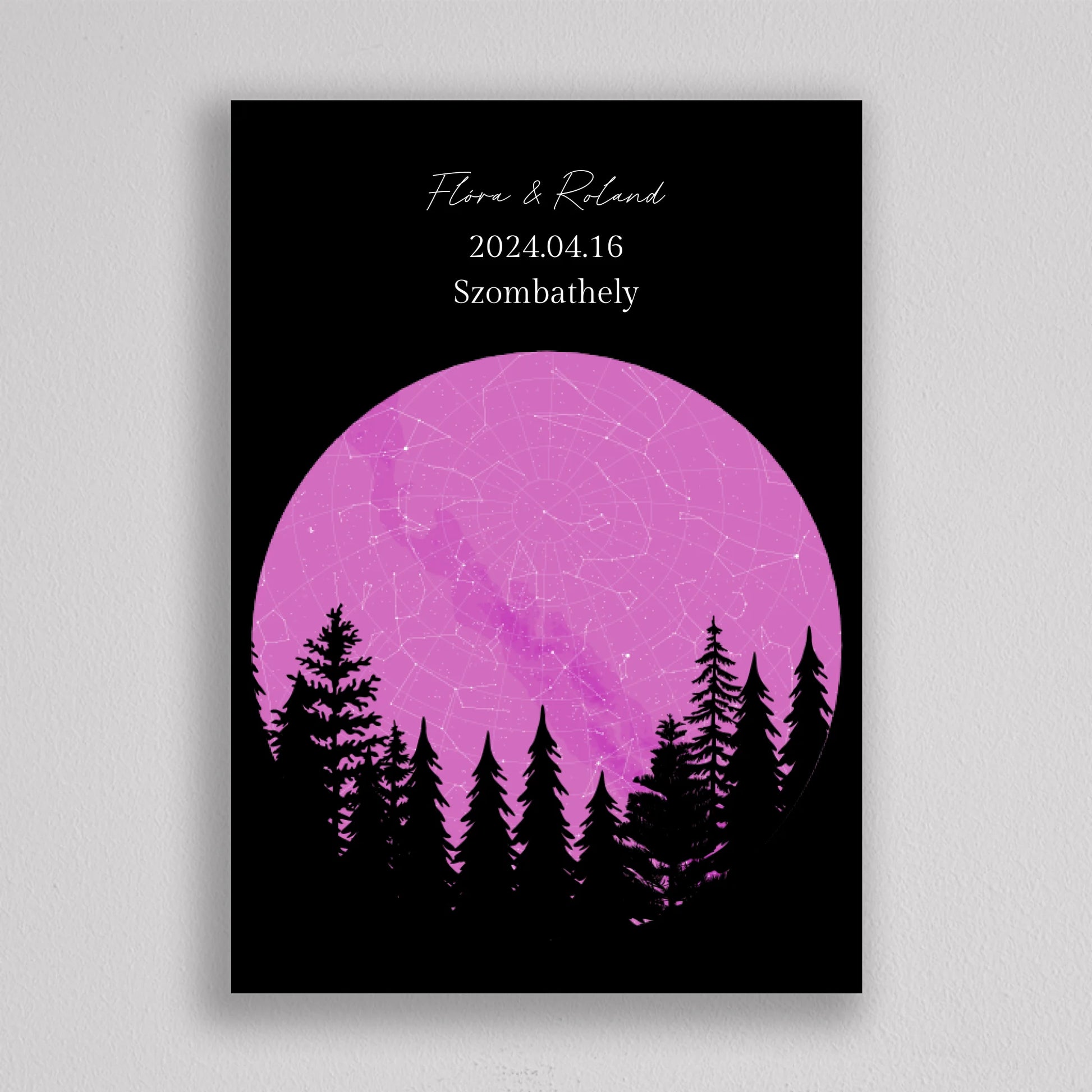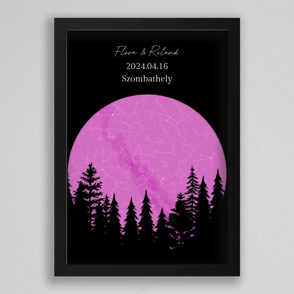 A Romantikus Csillagtérkép Fotó Kollázs - Emlékezetes Pillanataink egy gyönyörű és személyre szabható ajándék, amely tökéletes választás azoknak a pároknak, akik szeretnék megörökíteni a különleges közös pillanataikat. Ez az egyedi csillagtérkép a szerelmesek kedvenc dátumát és helyszínét ábrázolja, miközben a csillagok állását is megjeleníti az adott éjszakán. A többszínű háttér és a romantikus sziluett tökéletes harmóniában áll egymással, ezáltal igazán egyedi és esztétikus ajándékot hoz létre. Ideális választás évfordulóra, Valentin-napra, vagy bármilyen más különleges alkalomra, amikor szeretnéd kifejezni szerelmedet és örök emlékként megőrizni a közös élményeket.