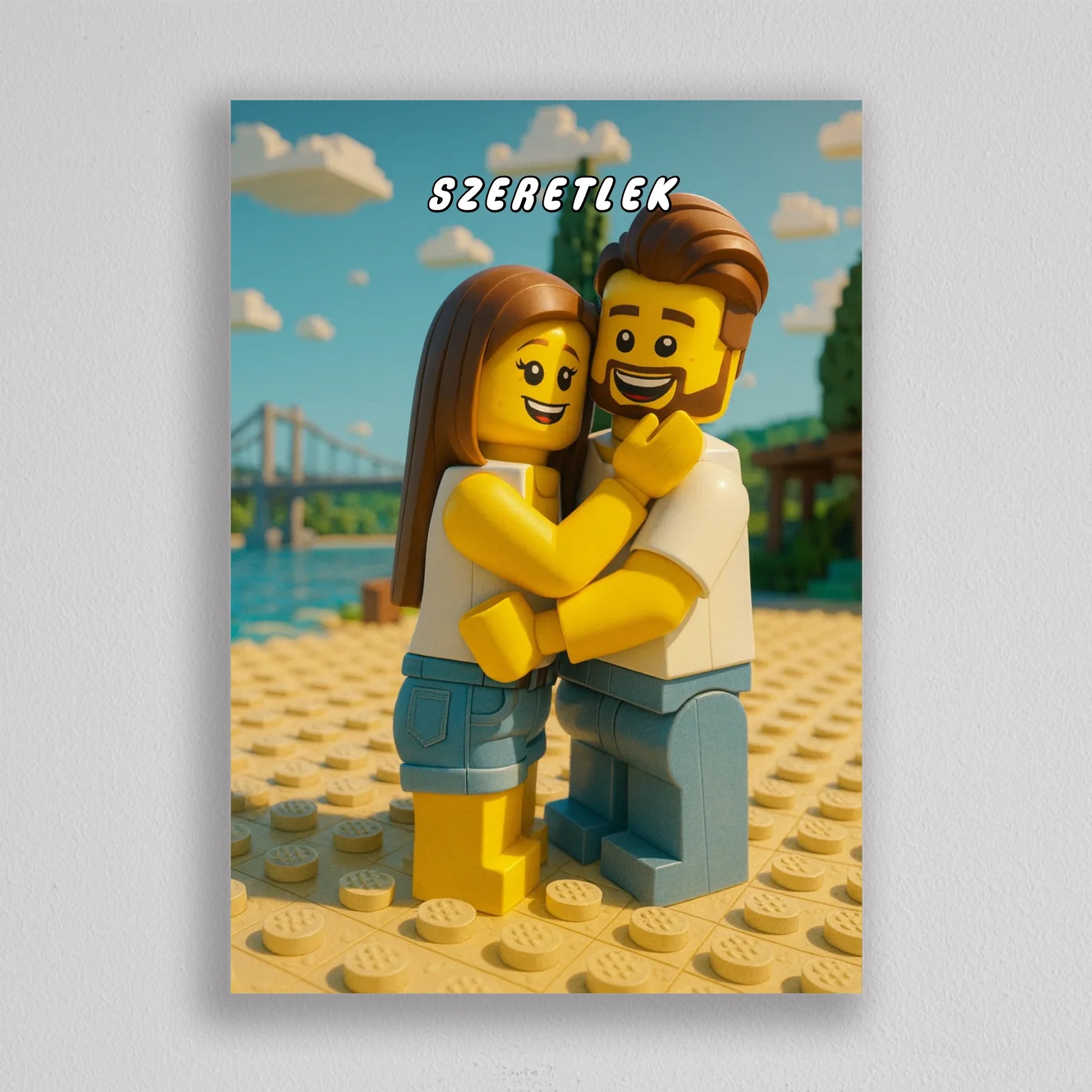 Lepd meg szeretteidet egy igazán különleges és vidám ajándékkal: alakítsd át családi vagy páros fotótokat LEGO stílusú illusztrációvá! Ez a személyre szabható falikép mesterséges intelligencia segítségével készül, így a fotóból egyedi, játékos és mégis minőségi grafika születik. Tökéletes ajándék születésnapra, évfordulóra, karácsonyra vagy akár esküvőre, hiszen egyszerre humoros és érzelmekkel teli emlék. A kép háttere és a felirat is személyre szabható, így garantáltan illeszkedik bármelyik otthon stílusához. Ez a különleges poszter nemcsak dekoráció, hanem örök emlék, amely mindig mosolyt csal az arcokra.