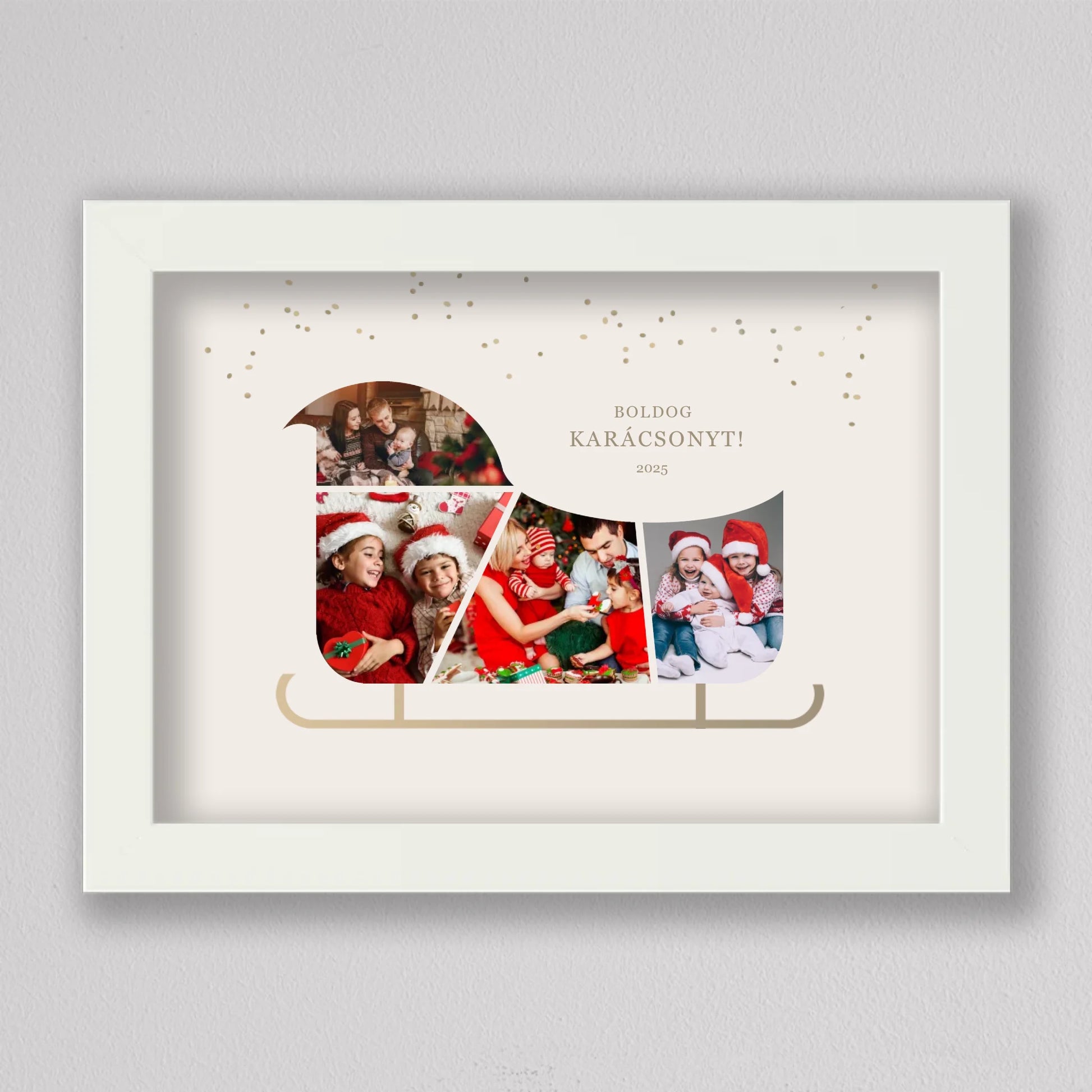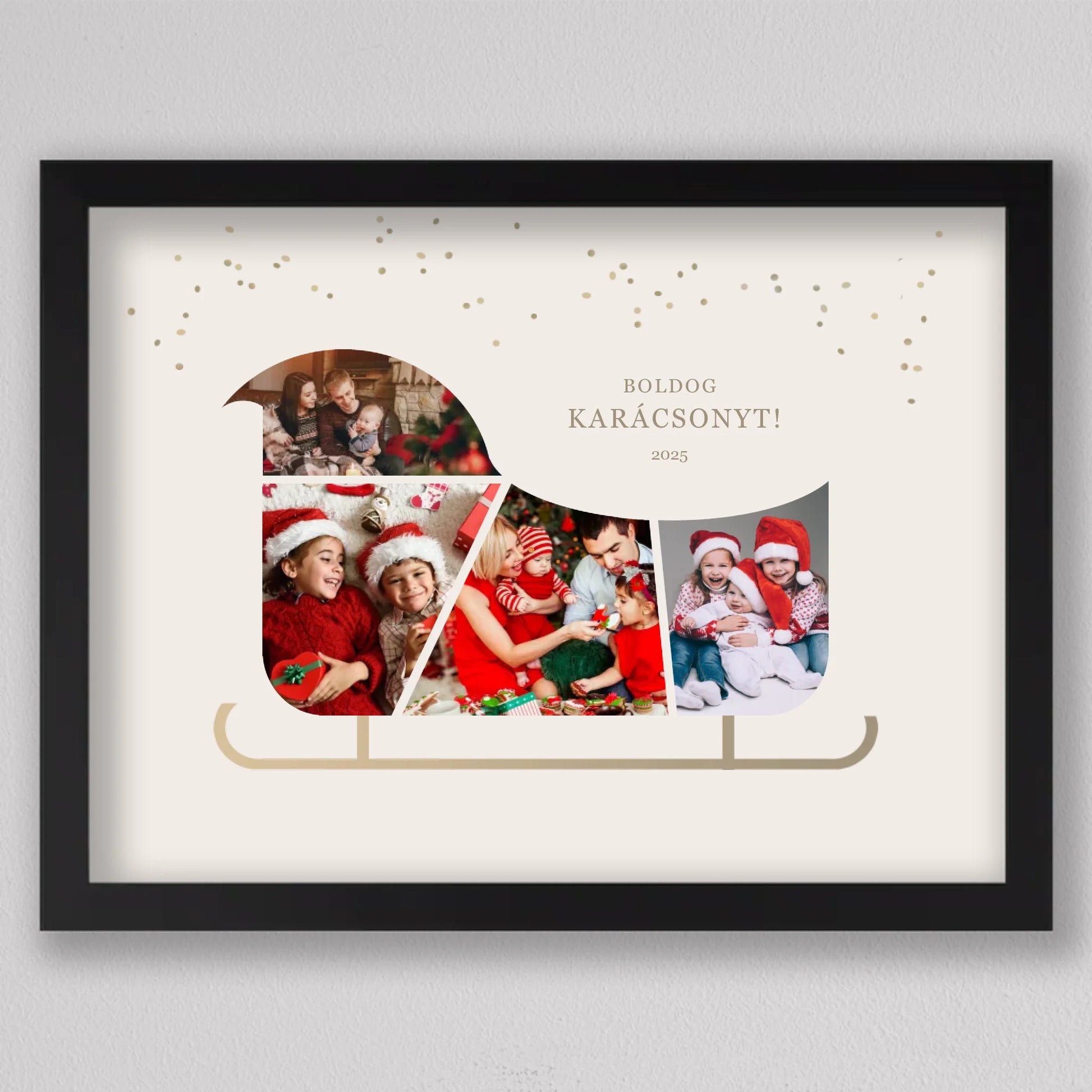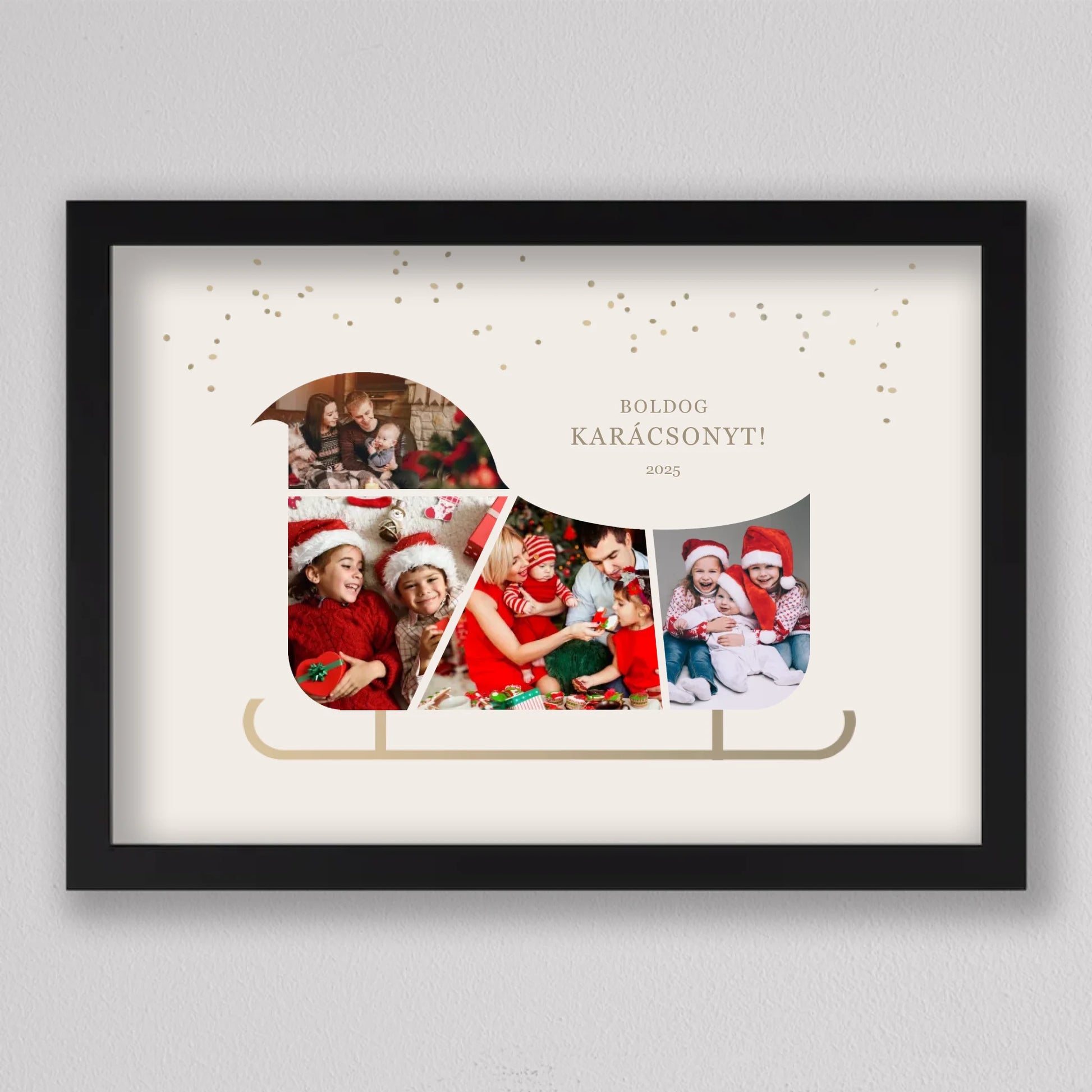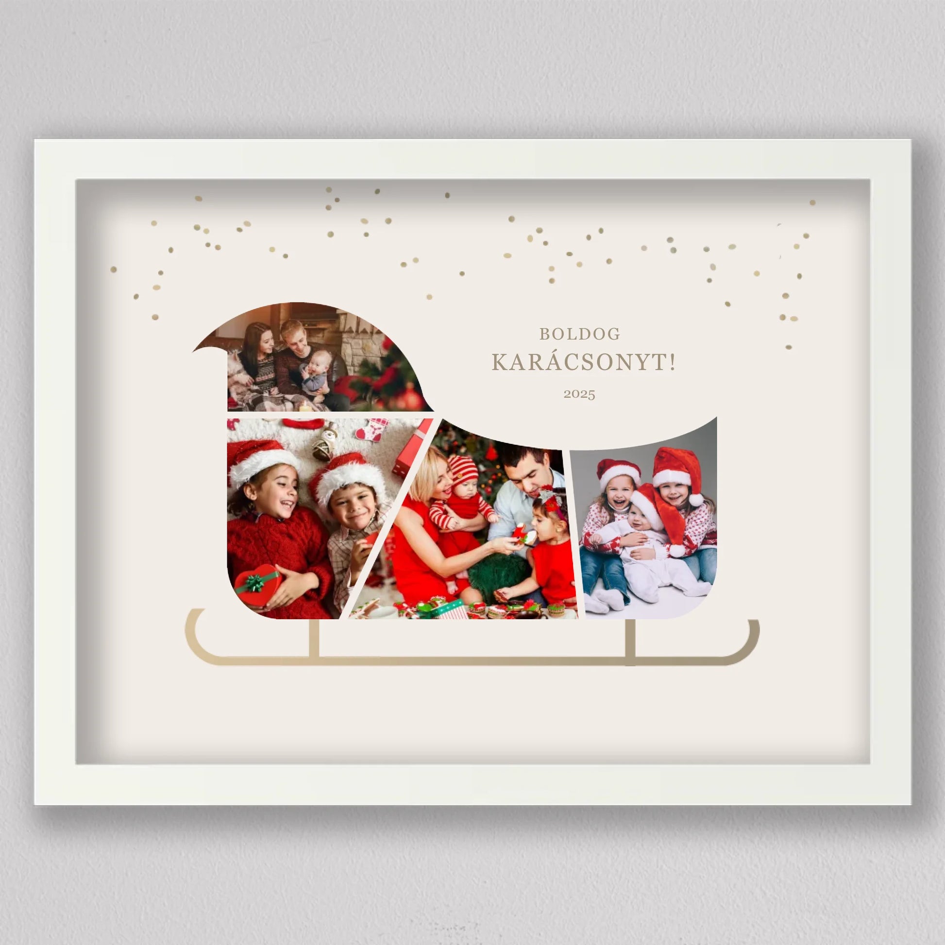 A Mikulásszán alakú karácsonyi fotó kollázs tökéletes módja annak, hogy szeretteid számára személyre szabott és emlékezetes karácsonyi ajándékot készíts. A szán formájában elhelyezett képek ünnepi hangulatot varázsolnak az otthonodba, miközben a legkedvesebb pillanataidat örökítik meg. Ideális ajándék családoknak és barátoknak, akik különleges, személyes ajándékot keresnek. A termék kiváló minőségű, prémium nyomtatásban kapható, amely gyönyörűen mutat majd a karácsonyi dekoráció részeként. A termék teljesen egyedi és személyre szabható, így garantáltan egyedivé teszi az ünnepi meglepetést.