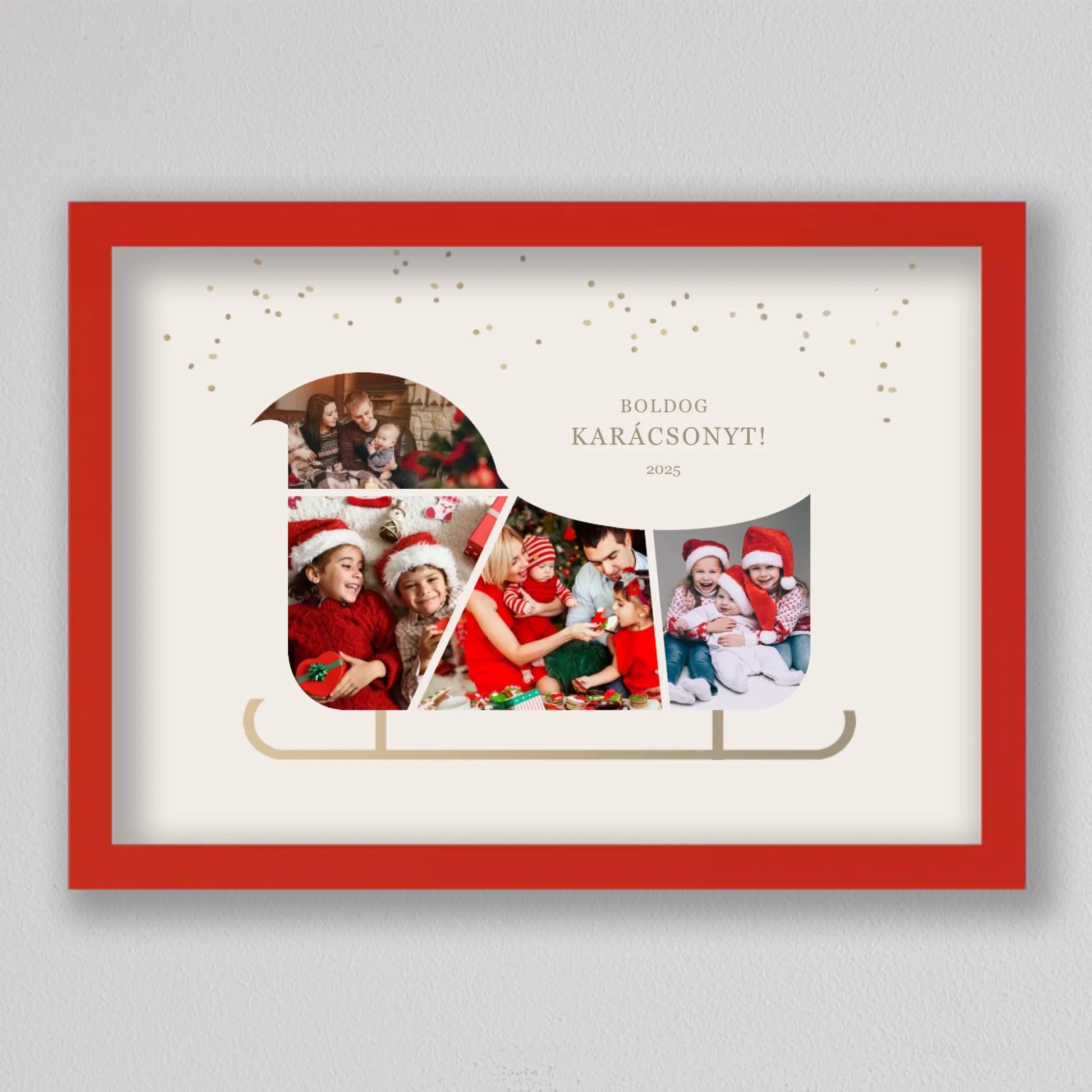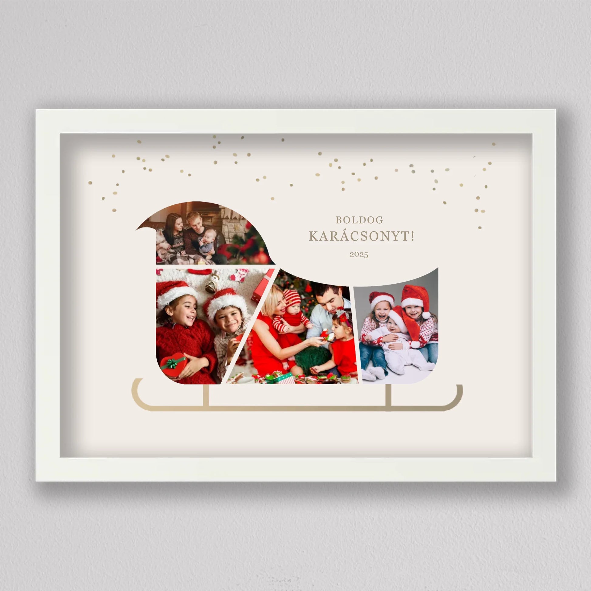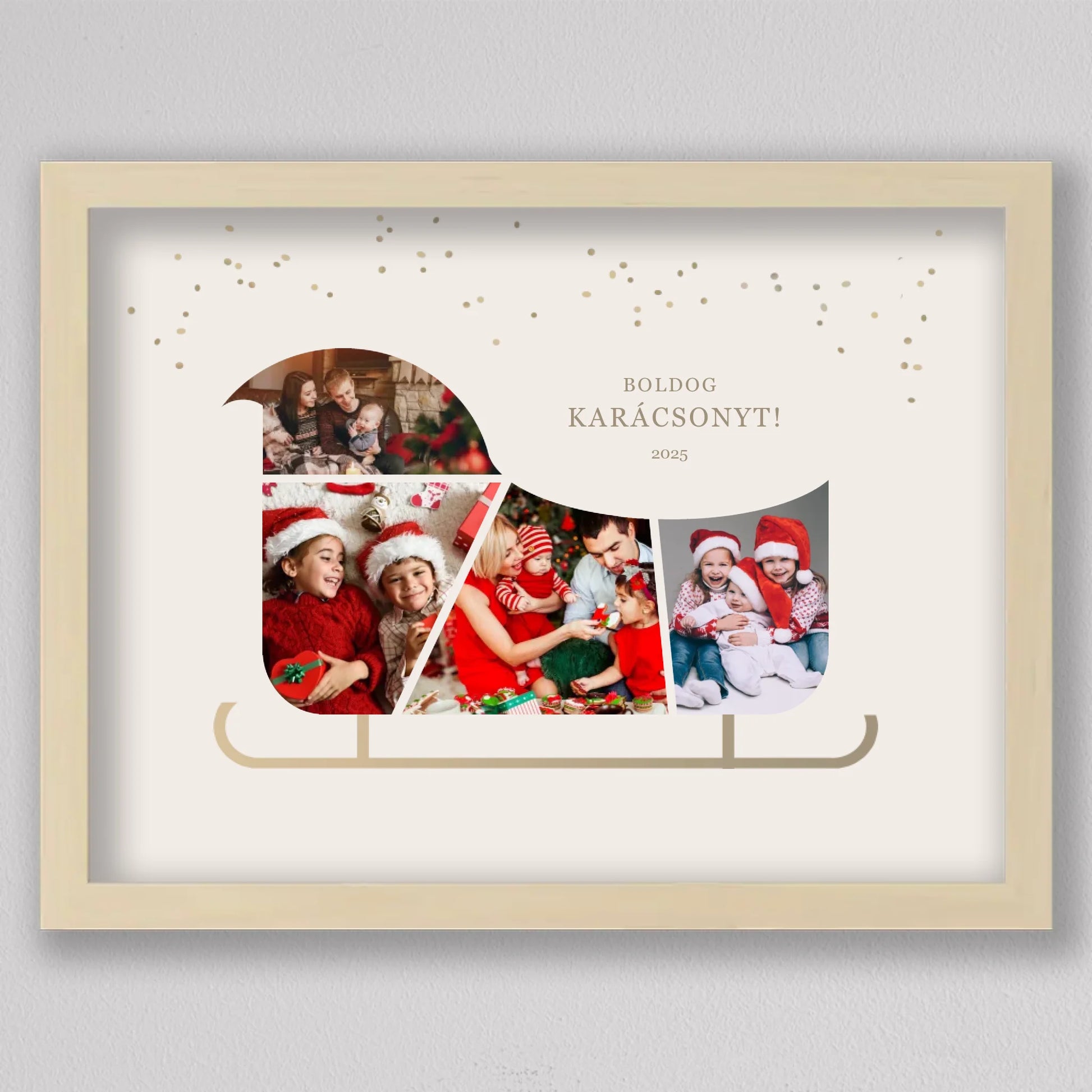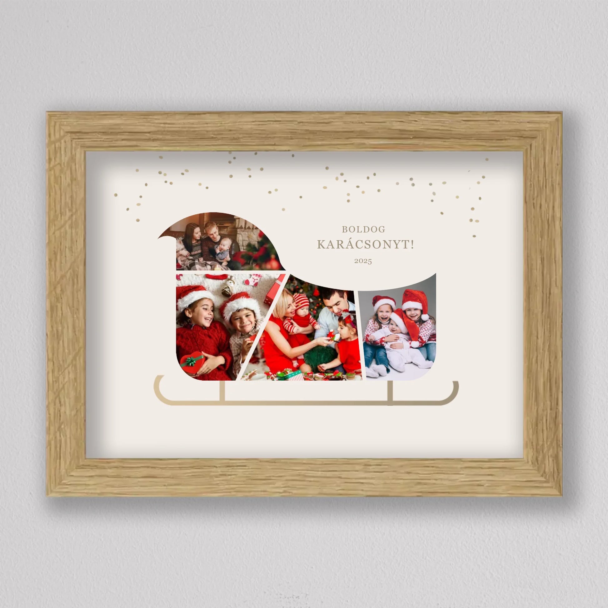 A Mikulásszán alakú karácsonyi fotó kollázs tökéletes módja annak, hogy szeretteid számára személyre szabott és emlékezetes karácsonyi ajándékot készíts. A szán formájában elhelyezett képek ünnepi hangulatot varázsolnak az otthonodba, miközben a legkedvesebb pillanataidat örökítik meg. Ideális ajándék családoknak és barátoknak, akik különleges, személyes ajándékot keresnek. A termék kiváló minőségű, prémium nyomtatásban kapható, amely gyönyörűen mutat majd a karácsonyi dekoráció részeként. A termék teljesen egyedi és személyre szabható, így garantáltan egyedivé teszi az ünnepi meglepetést.