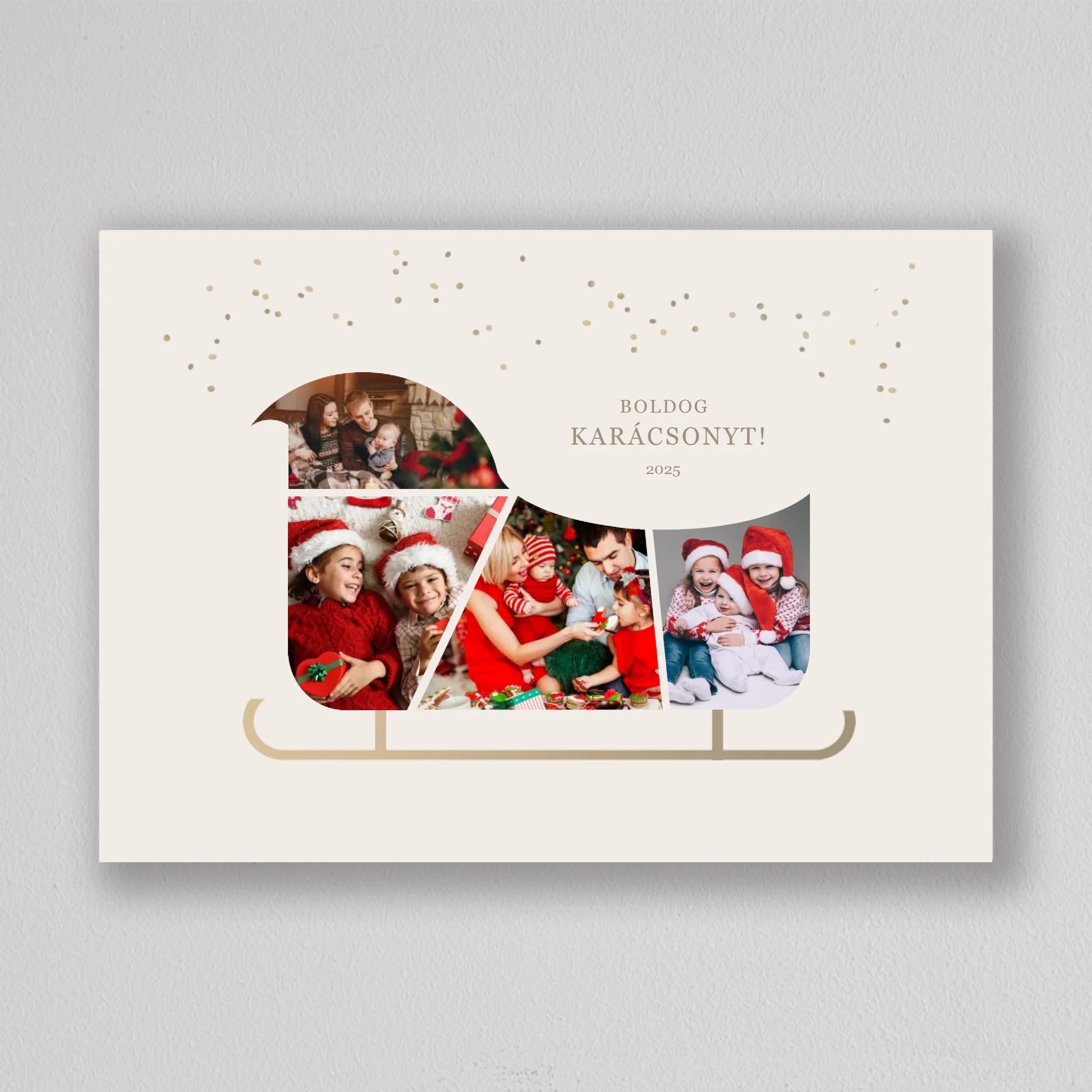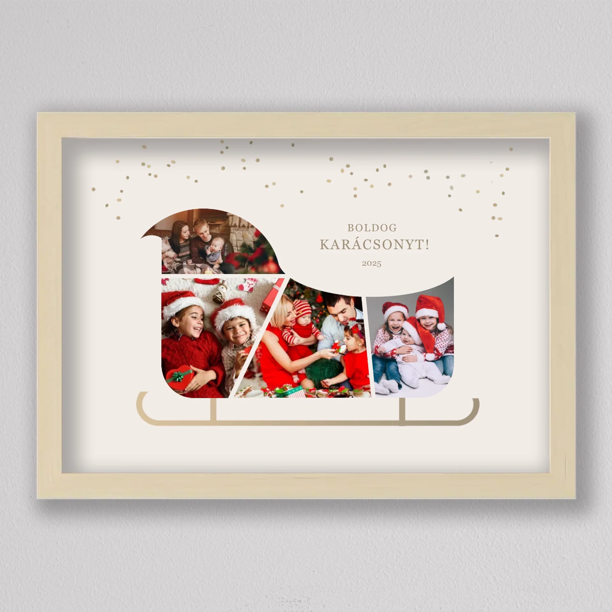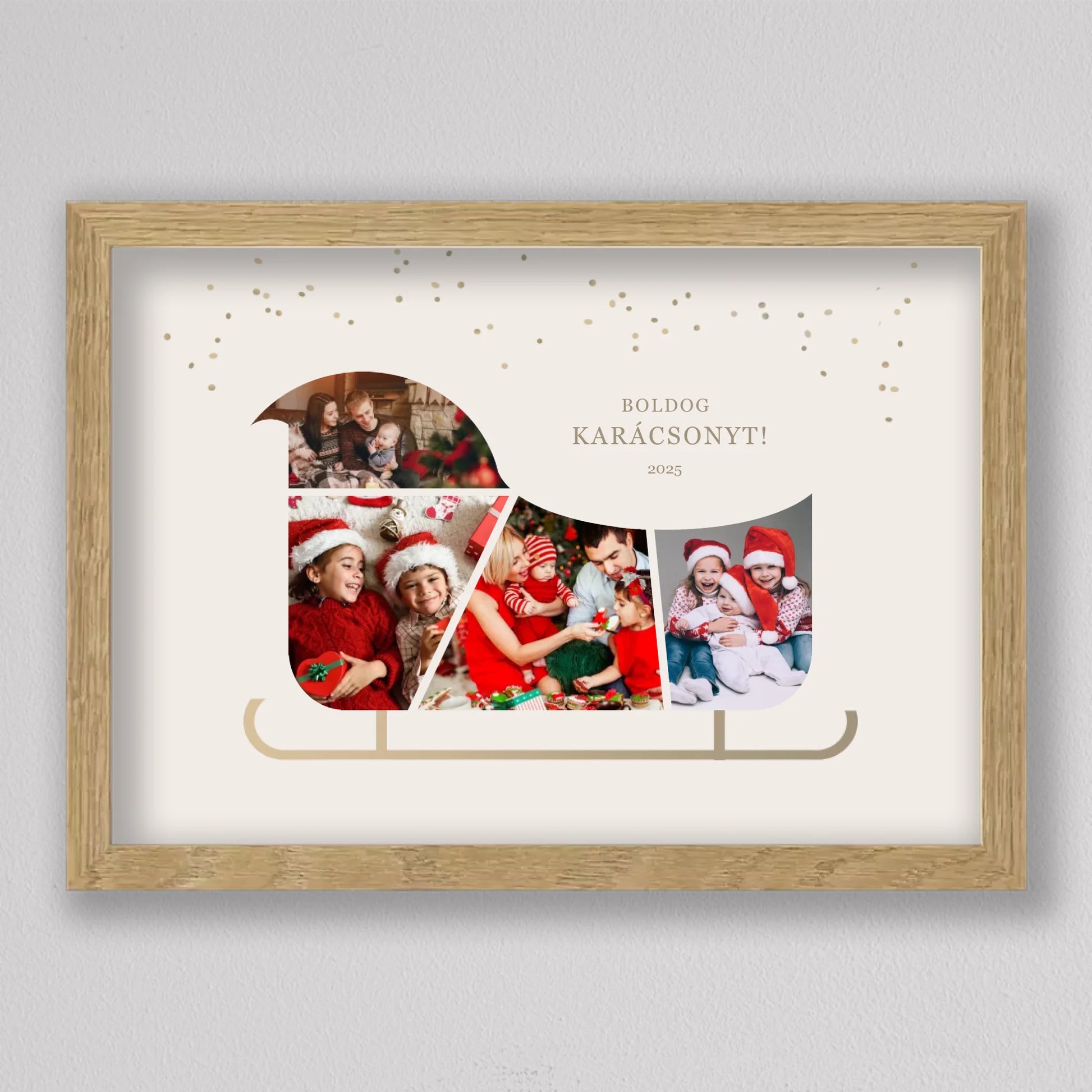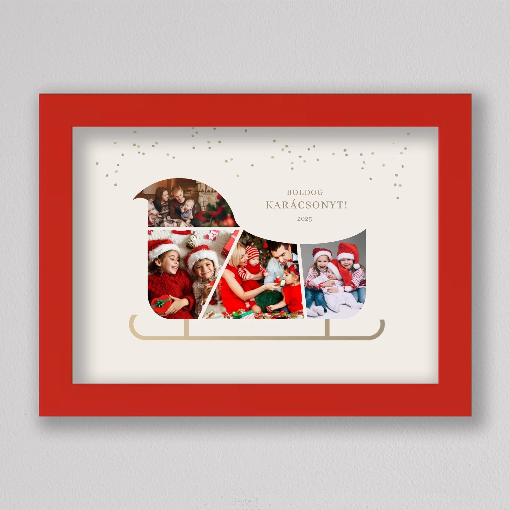 A Mikulásszán alakú karácsonyi fotó kollázs tökéletes módja annak, hogy szeretteid számára személyre szabott és emlékezetes karácsonyi ajándékot készíts. A szán formájában elhelyezett képek ünnepi hangulatot varázsolnak az otthonodba, miközben a legkedvesebb pillanataidat örökítik meg. Ideális ajándék családoknak és barátoknak, akik különleges, személyes ajándékot keresnek. A termék kiváló minőségű, prémium nyomtatásban kapható, amely gyönyörűen mutat majd a karácsonyi dekoráció részeként. A termék teljesen egyedi és személyre szabható, így garantáltan egyedivé teszi az ünnepi meglepetést.