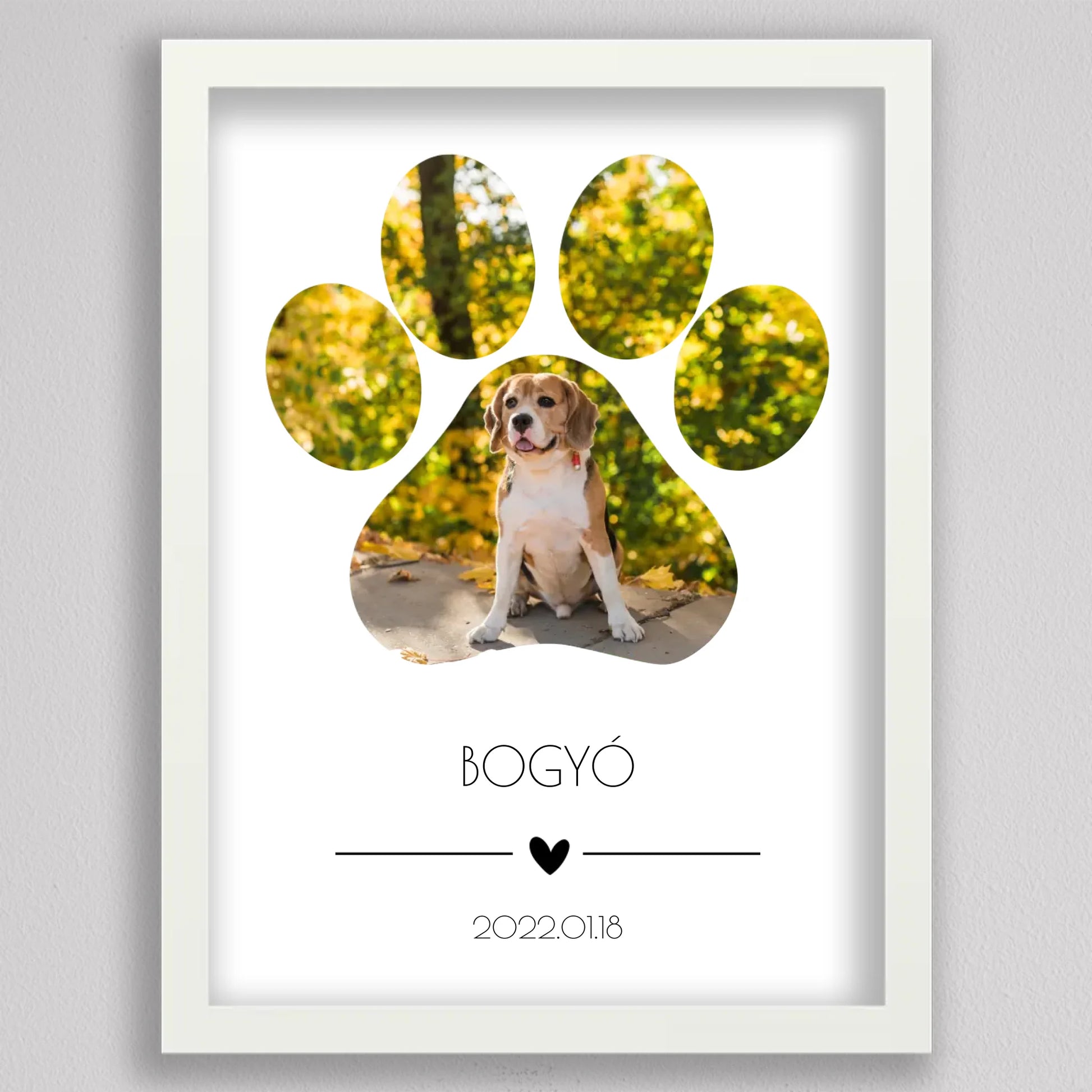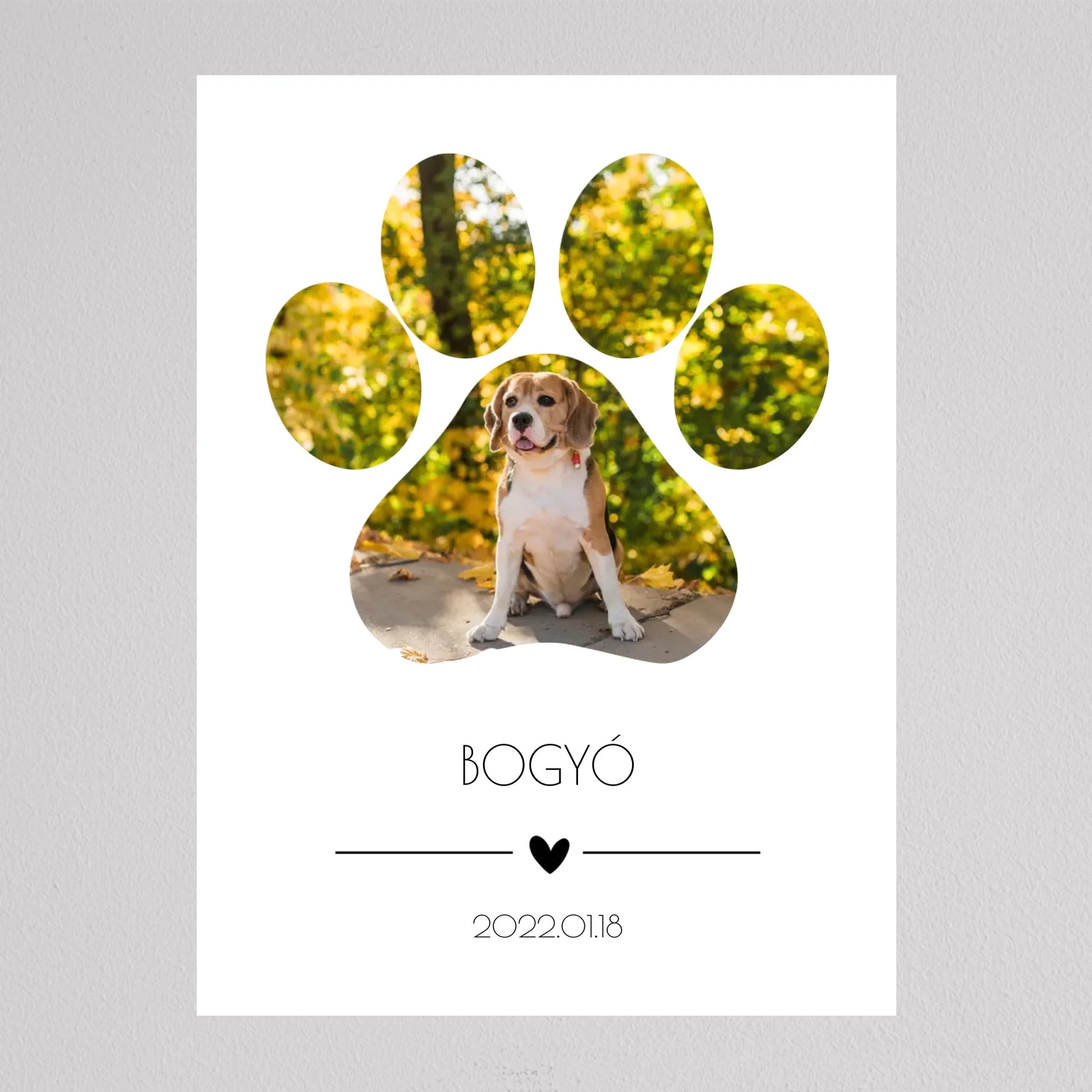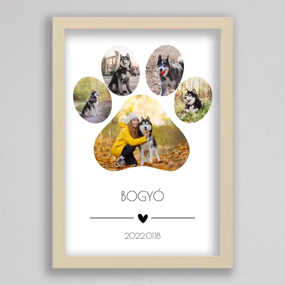 A Kutya mancs alakú fotó kollázs egy egyedi és különleges módja annak, hogy megörökítsd kedvenced legkedvesebb pillanatait. A mancs formájú kollázsban öt kisebb vagy egy nagyobb kép kap helyet, így egyszerre több kedvenc fotót is elhelyezhetsz benne, amelyeket különösen szeretsz. Tökéletes ajándék bármely kutyatulajdonos számára, aki szeretné emlékezetessé tenni négylábú barátja különleges pillanatait. A fotókollázs személyre szabható, így a képek mellett akár nevet és dátumot is elhelyezhetsz rajta, még egyedibbé téve ezzel az ajándékot. Tedd otthonod vagy irodád falát igazán személyessé és emlékezetessé ezzel a csodás dekorációval!