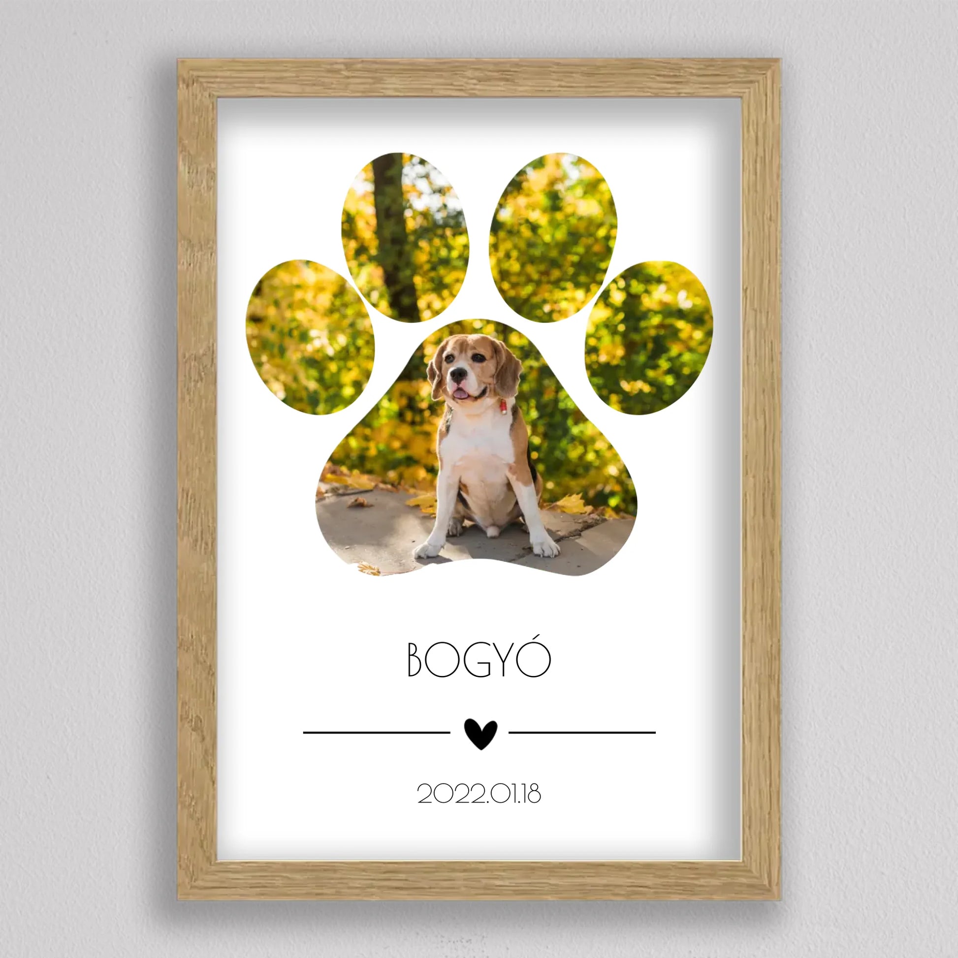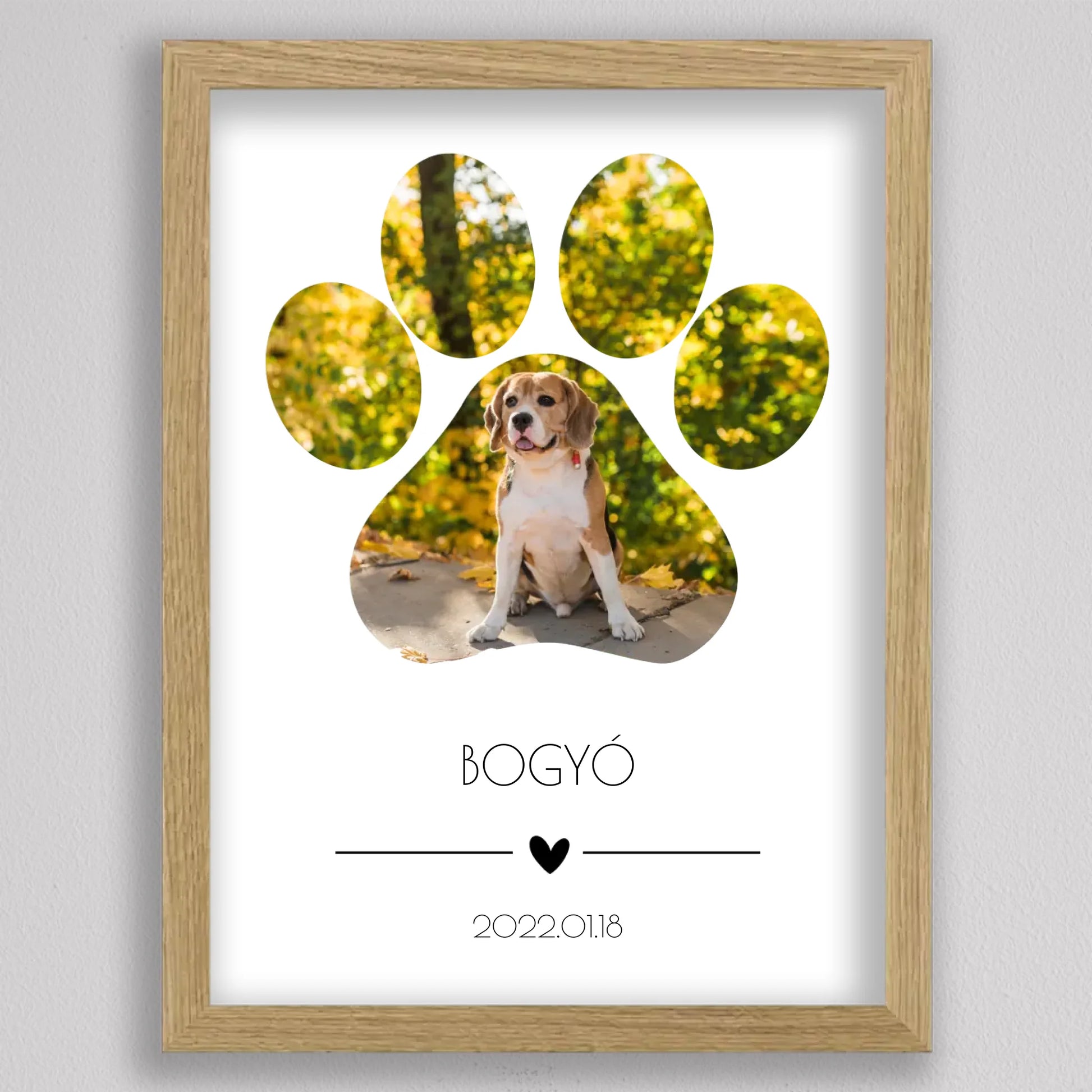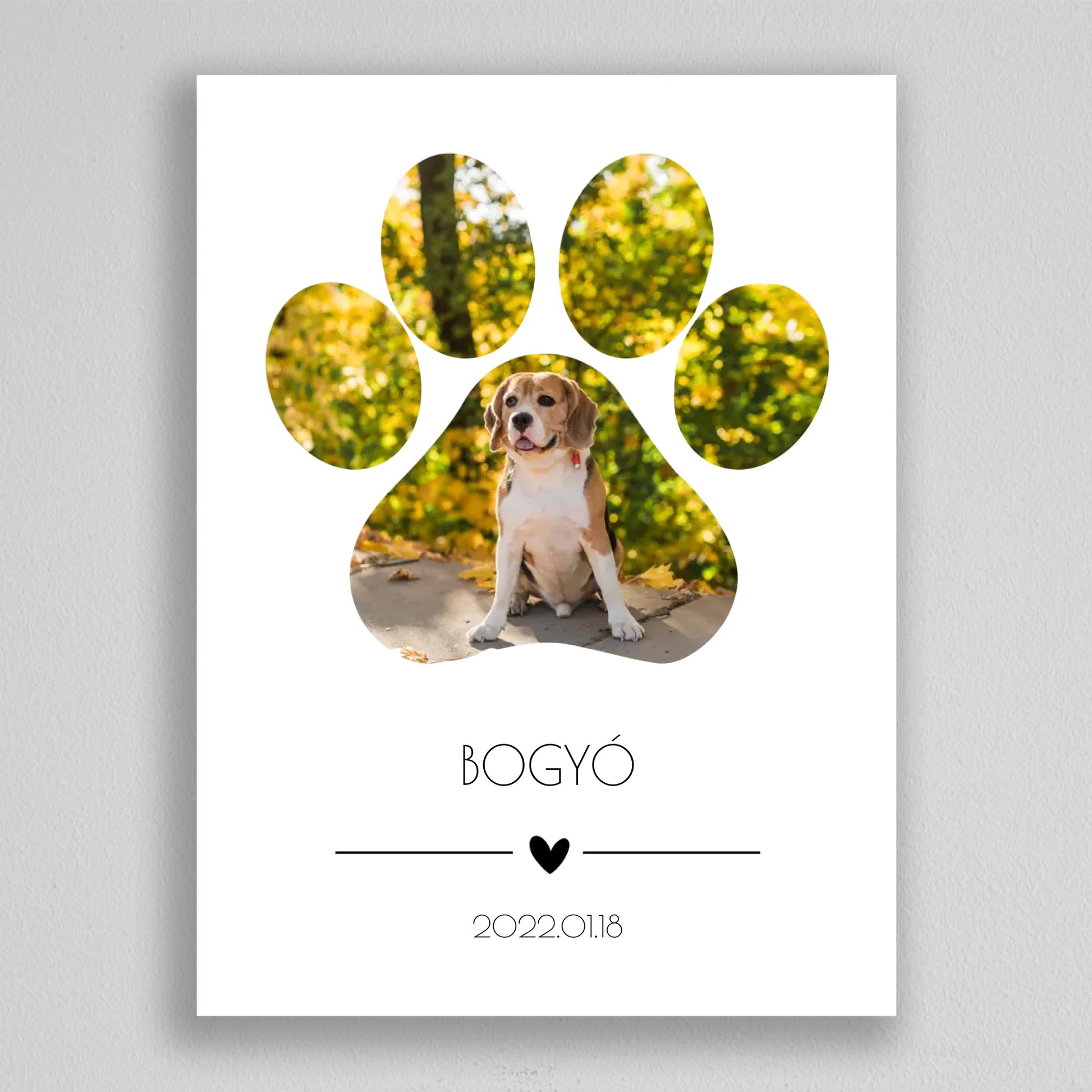 A Kutya mancs alakú fotó kollázs egy egyedi és különleges módja annak, hogy megörökítsd kedvenced legkedvesebb pillanatait. A mancs formájú kollázsban öt kisebb vagy egy nagyobb kép kap helyet, így egyszerre több kedvenc fotót is elhelyezhetsz benne, amelyeket különösen szeretsz. Tökéletes ajándék bármely kutyatulajdonos számára, aki szeretné emlékezetessé tenni négylábú barátja különleges pillanatait. A fotókollázs személyre szabható, így a képek mellett akár nevet és dátumot is elhelyezhetsz rajta, még egyedibbé téve ezzel az ajándékot. Tedd otthonod vagy irodád falát igazán személyessé és emlékezetessé ezzel a csodás dekorációval!