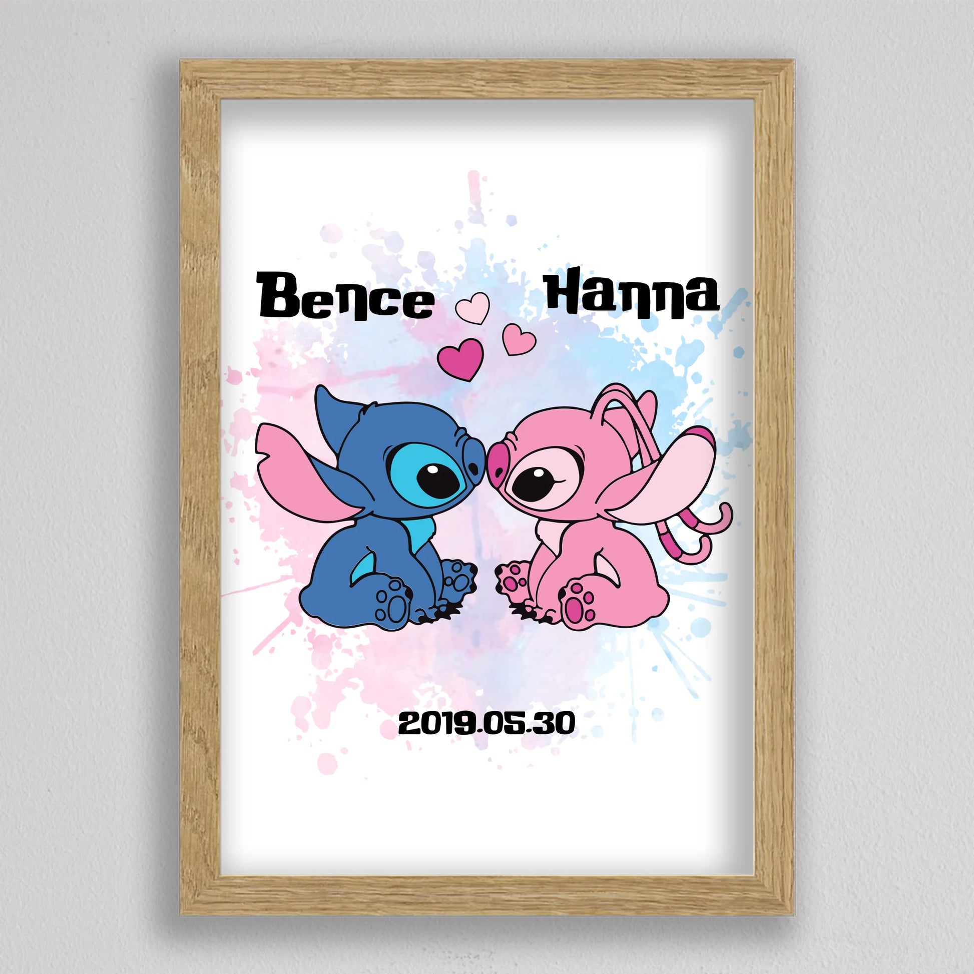 💖 Szerelmes Stitch és Angel – Személyre Szabható Páros Poszter