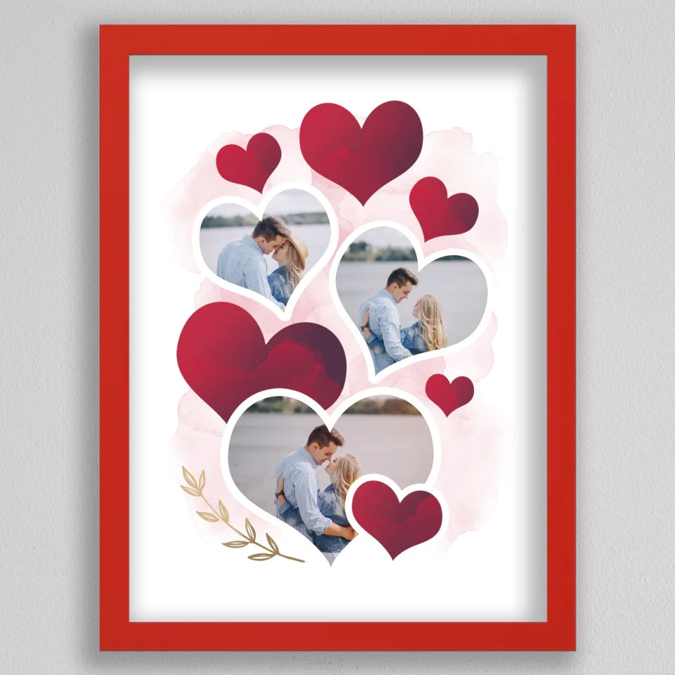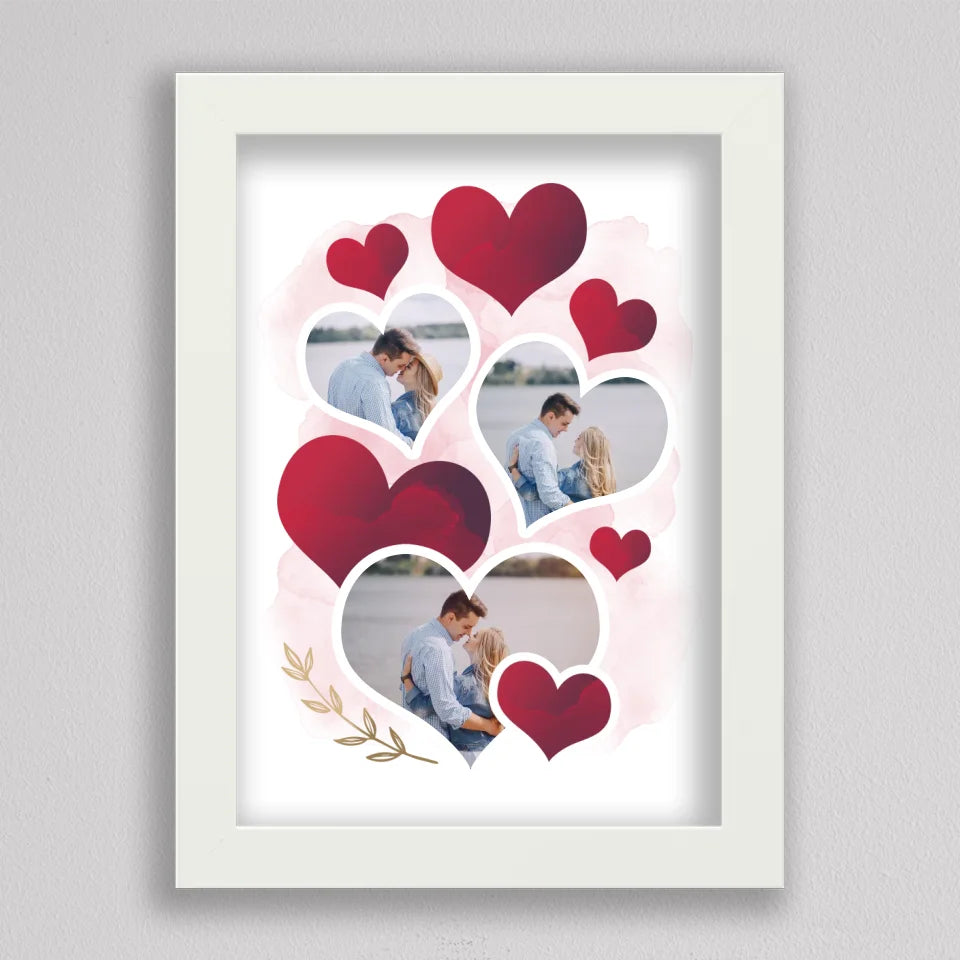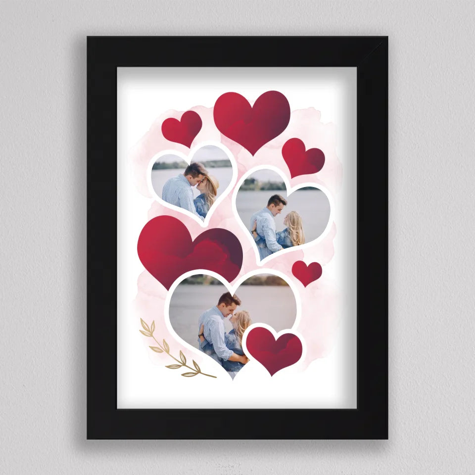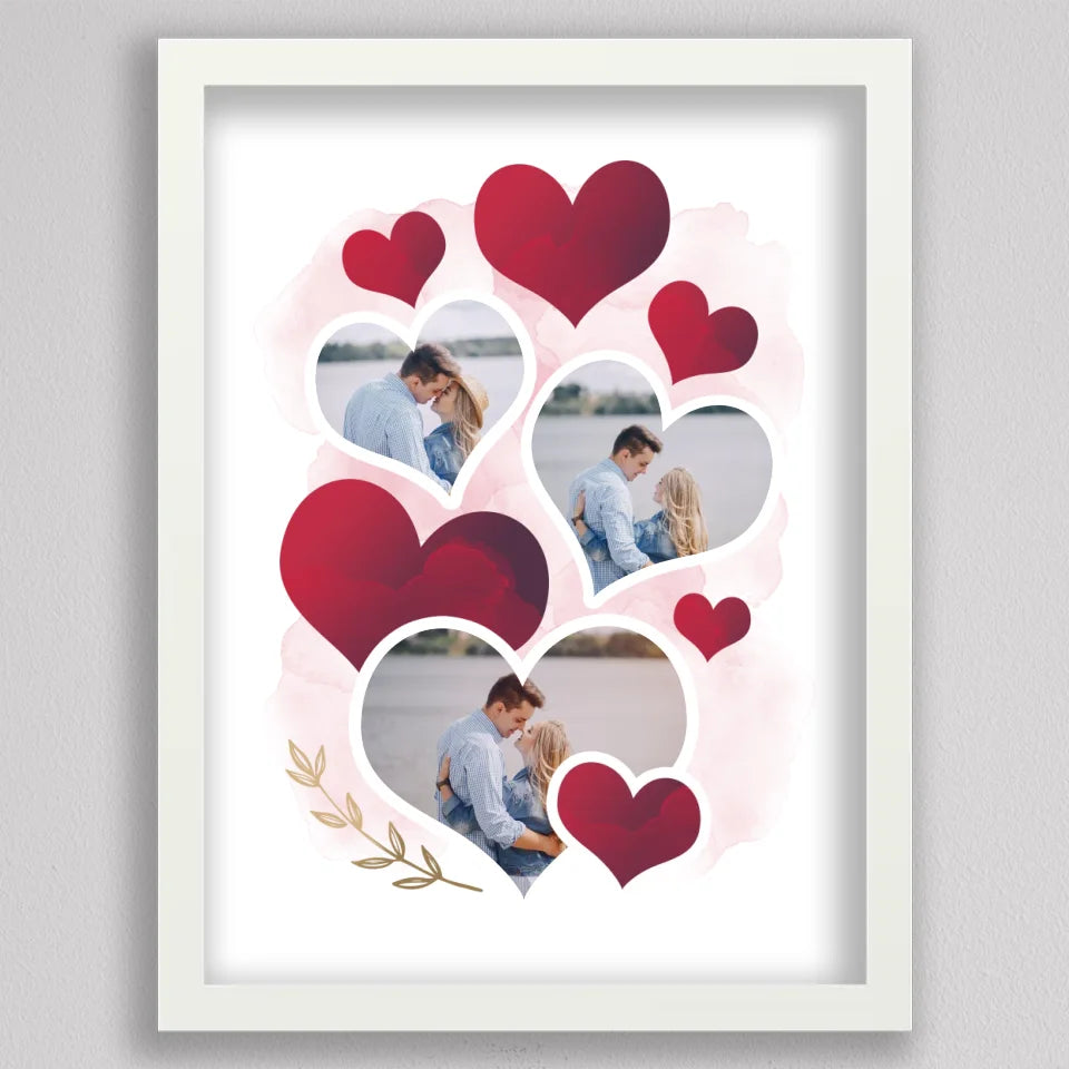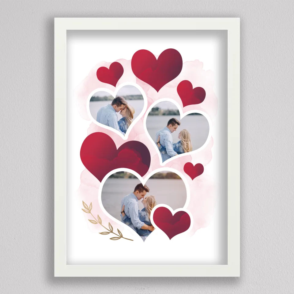 A Szerelmes szívek fotó kollázs tökéletes ajándék pároknak, akik szeretnék megőrizni a legszebb közös pillanataikat egy elegáns és szív alakú formában. Ez az egyedi, személyre szabható kollázs lehetőséget ad arra, hogy a kapcsolat legfontosabb fotói stílusosan jelenjenek meg, szív alakú keretben, romantikus háttérrel. Tökéletes választás évfordulókra, Valentin-napra vagy akár esküvői ajándéknak. A termék teljes mértékben testreszabható, hogy minden pár számára különleges, személyes emléket nyújtson.